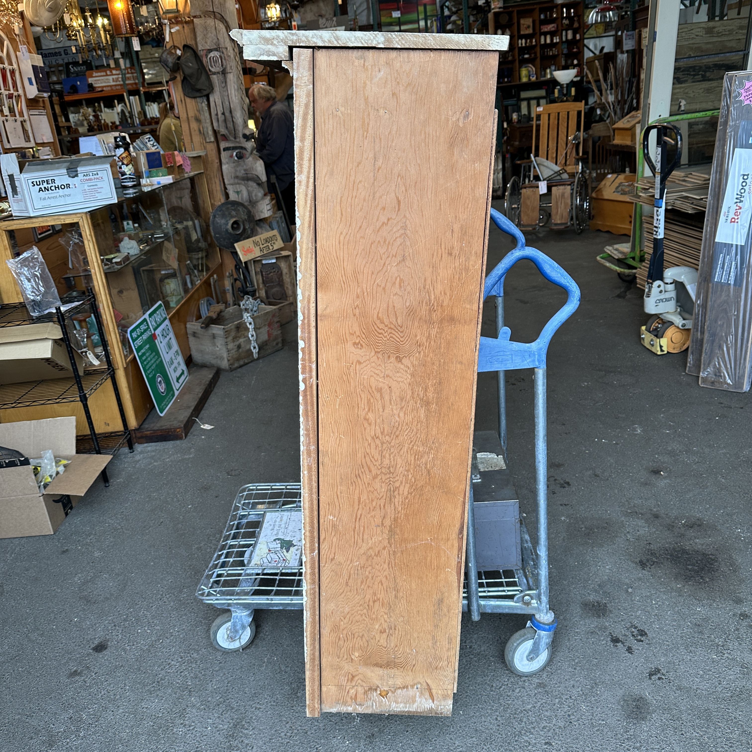 The middle door has a few cracks (no missing pieces though!) on six of the panes and the top has some water damage from plants. The top left has a cut-out where it fit against the wall.