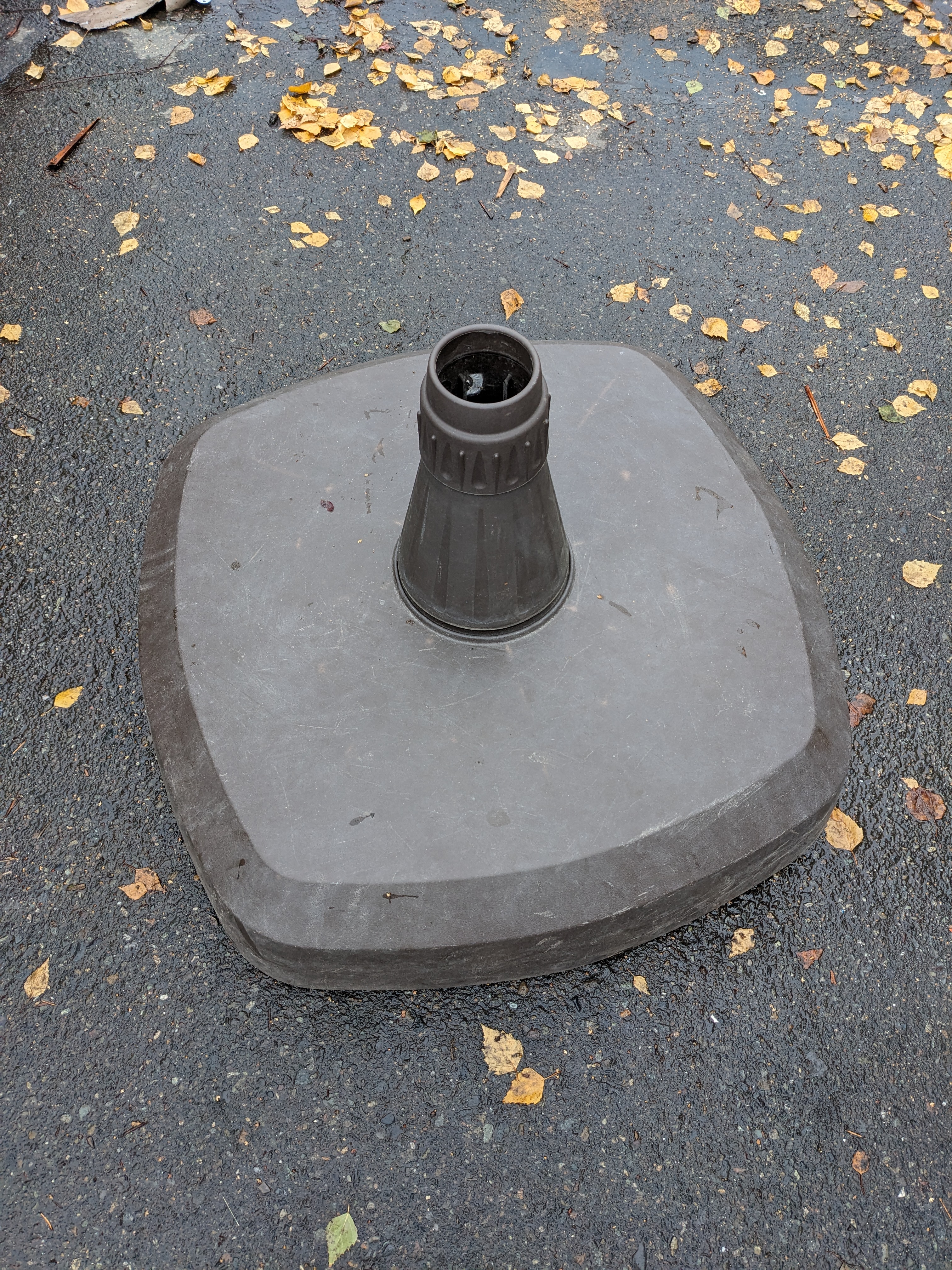 Fill it with water or sand and keep your giant umbrella where it belongs!