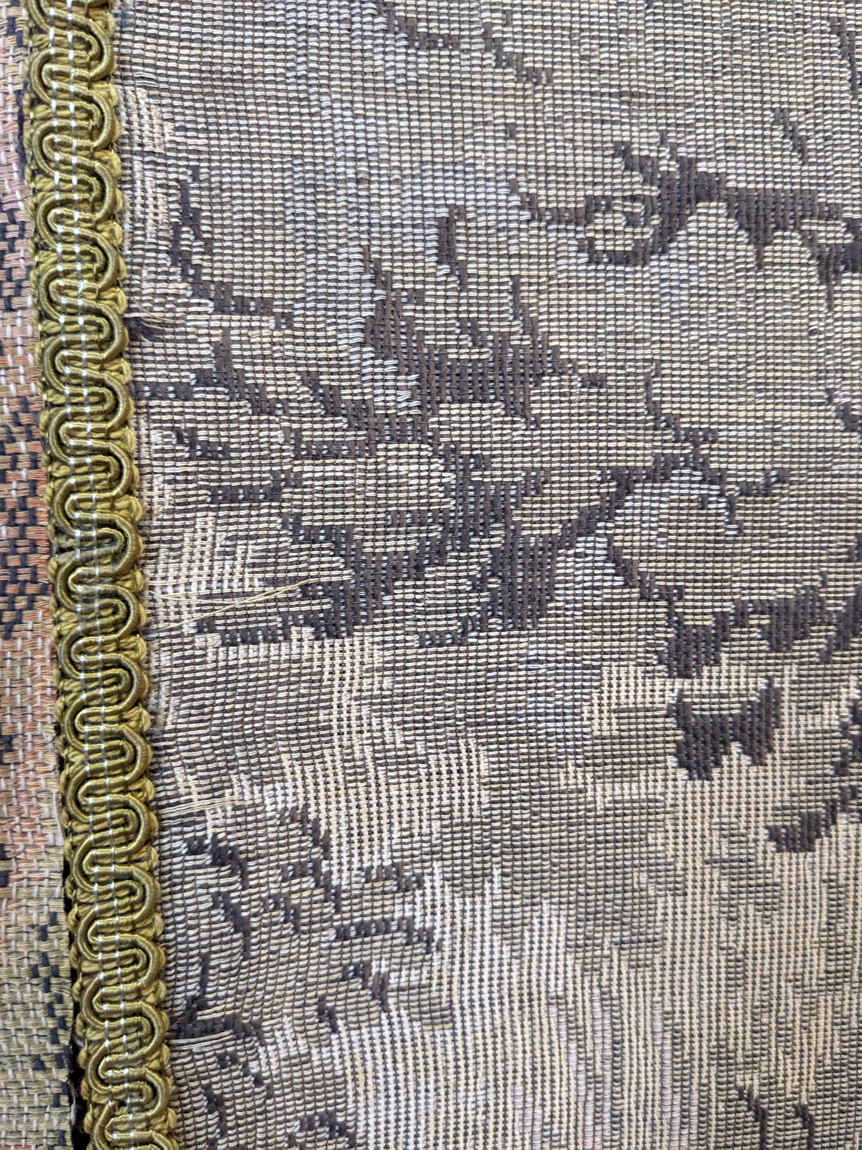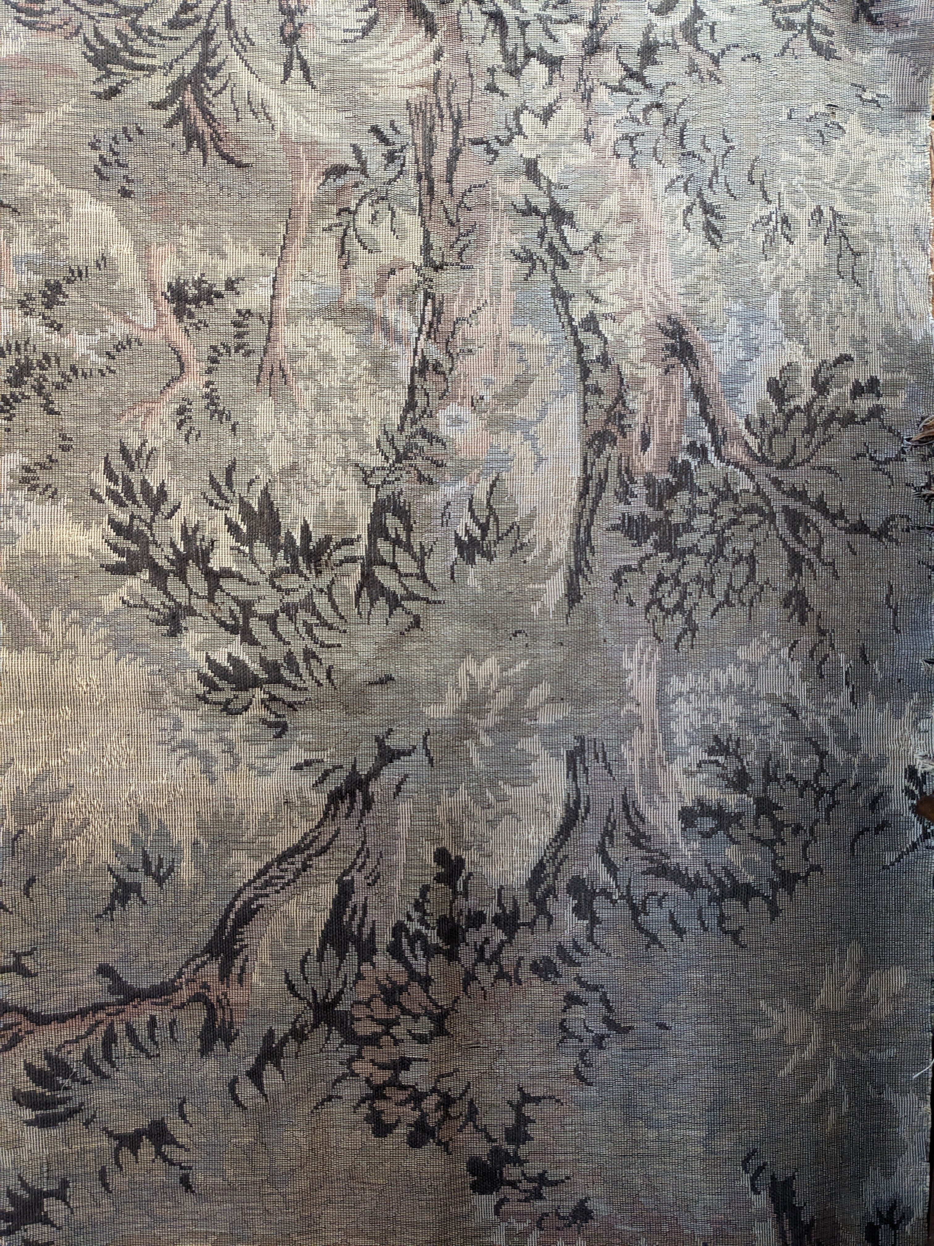 Our crew salvaged this from the historic Lochkelden Estate! This turn of the century woven tapestry is a one of a kind piece of Seattle history. It is quite delicate, and this piece has part of its beautiful ornate fabric frame in tact.