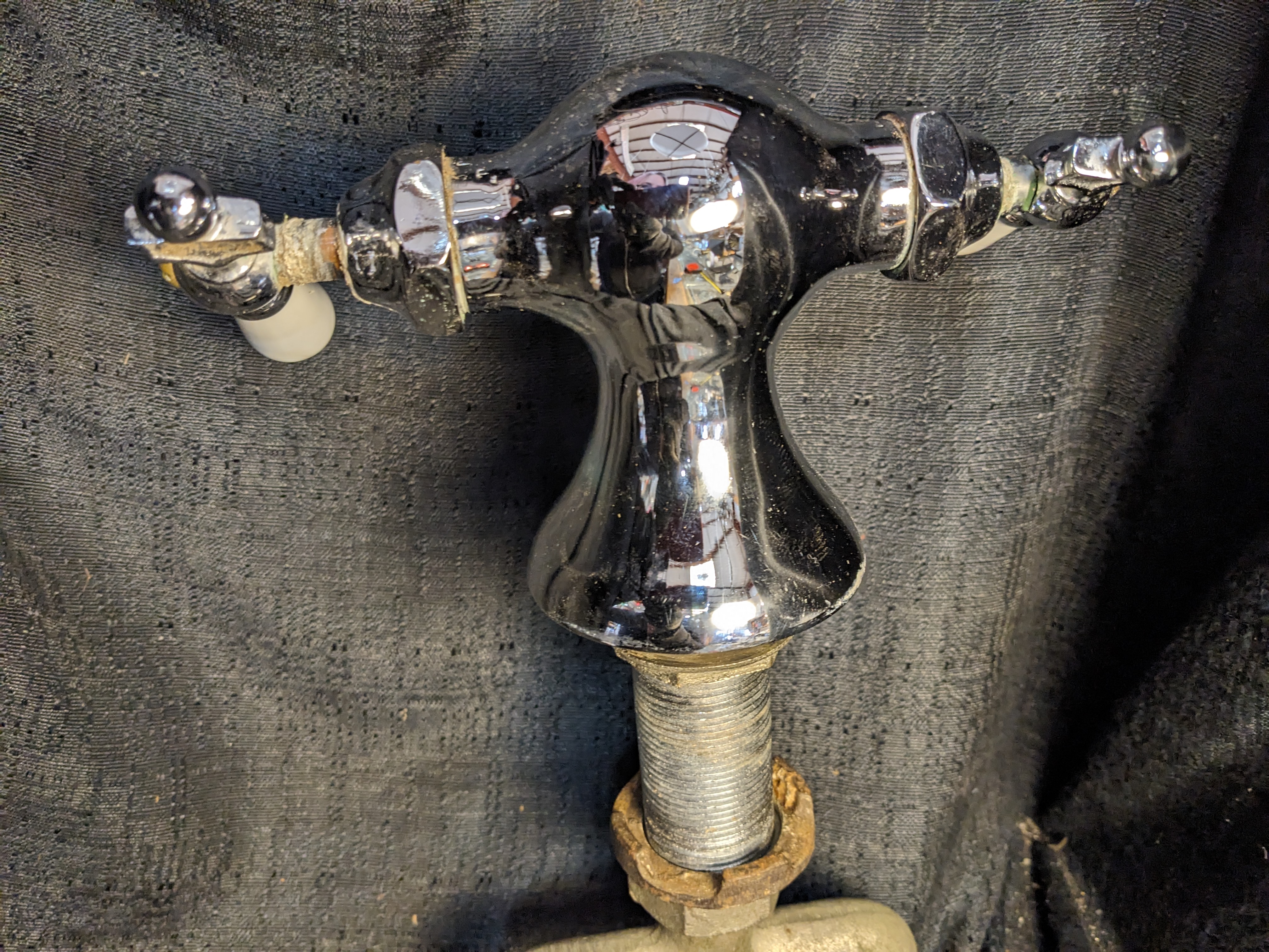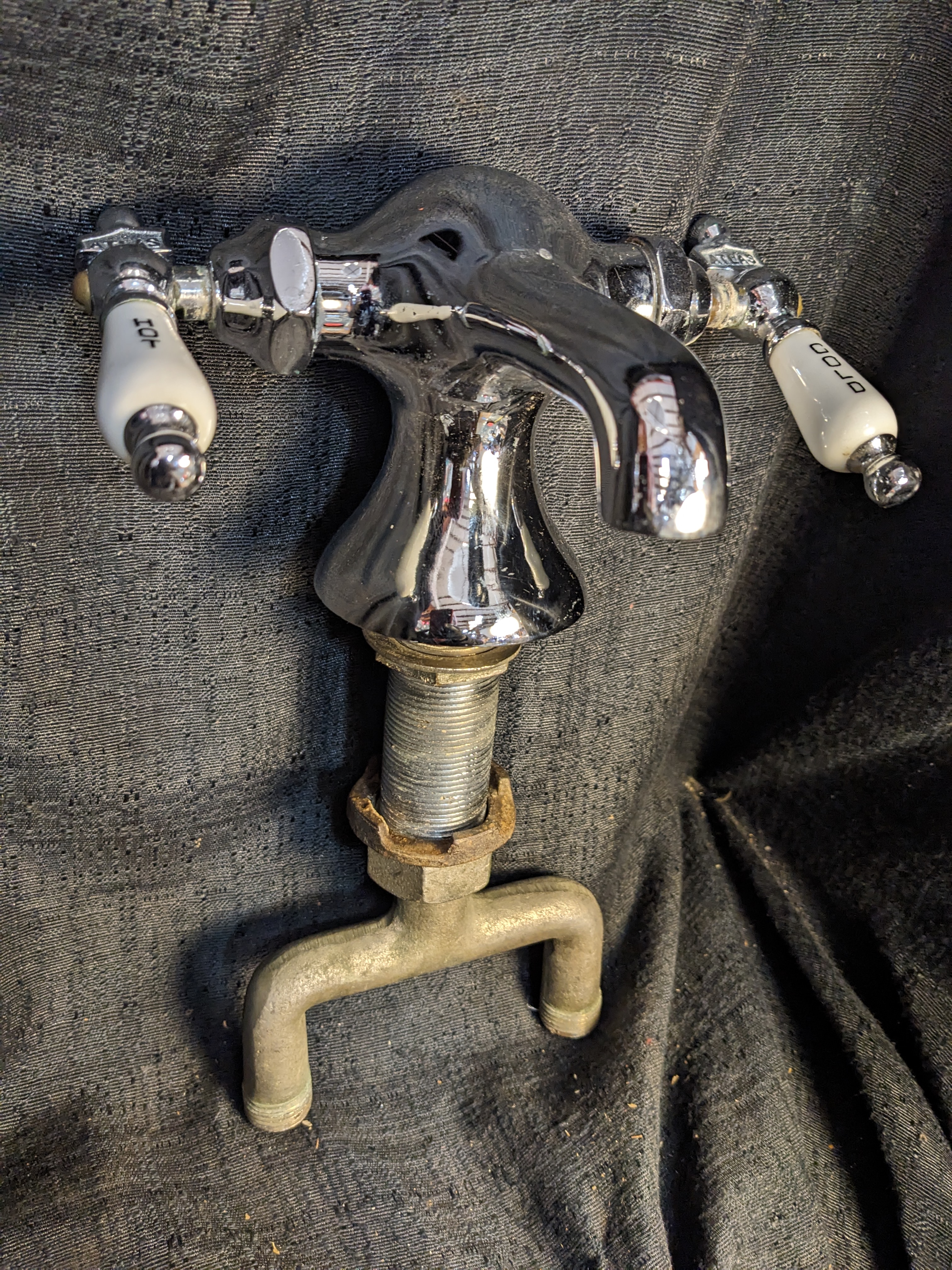 These faucets are an excellent replacement for the separate hot and cold taps and keep the vintage look. Commonly, the other tap hole would be filled with a porcelain soap dish.