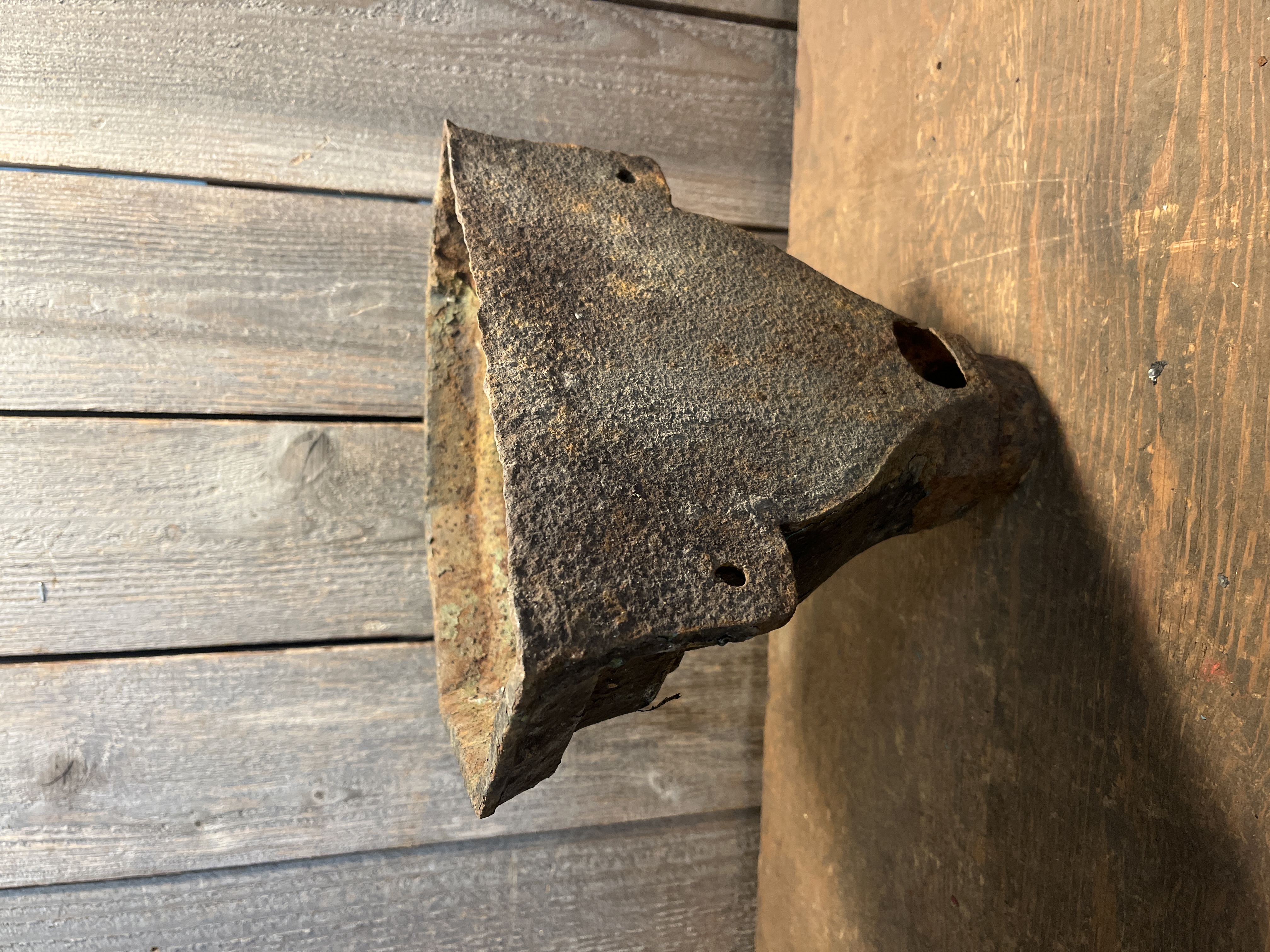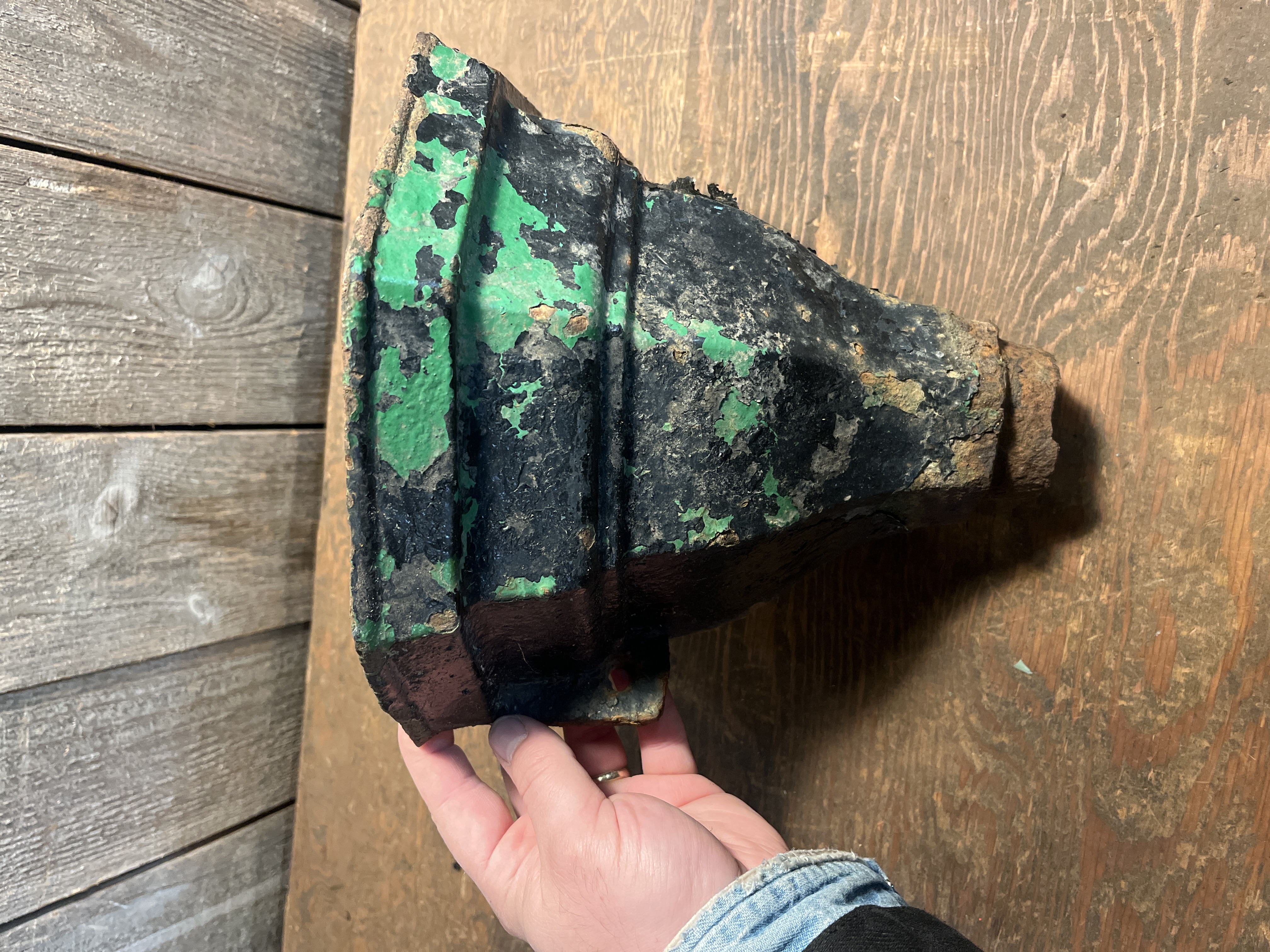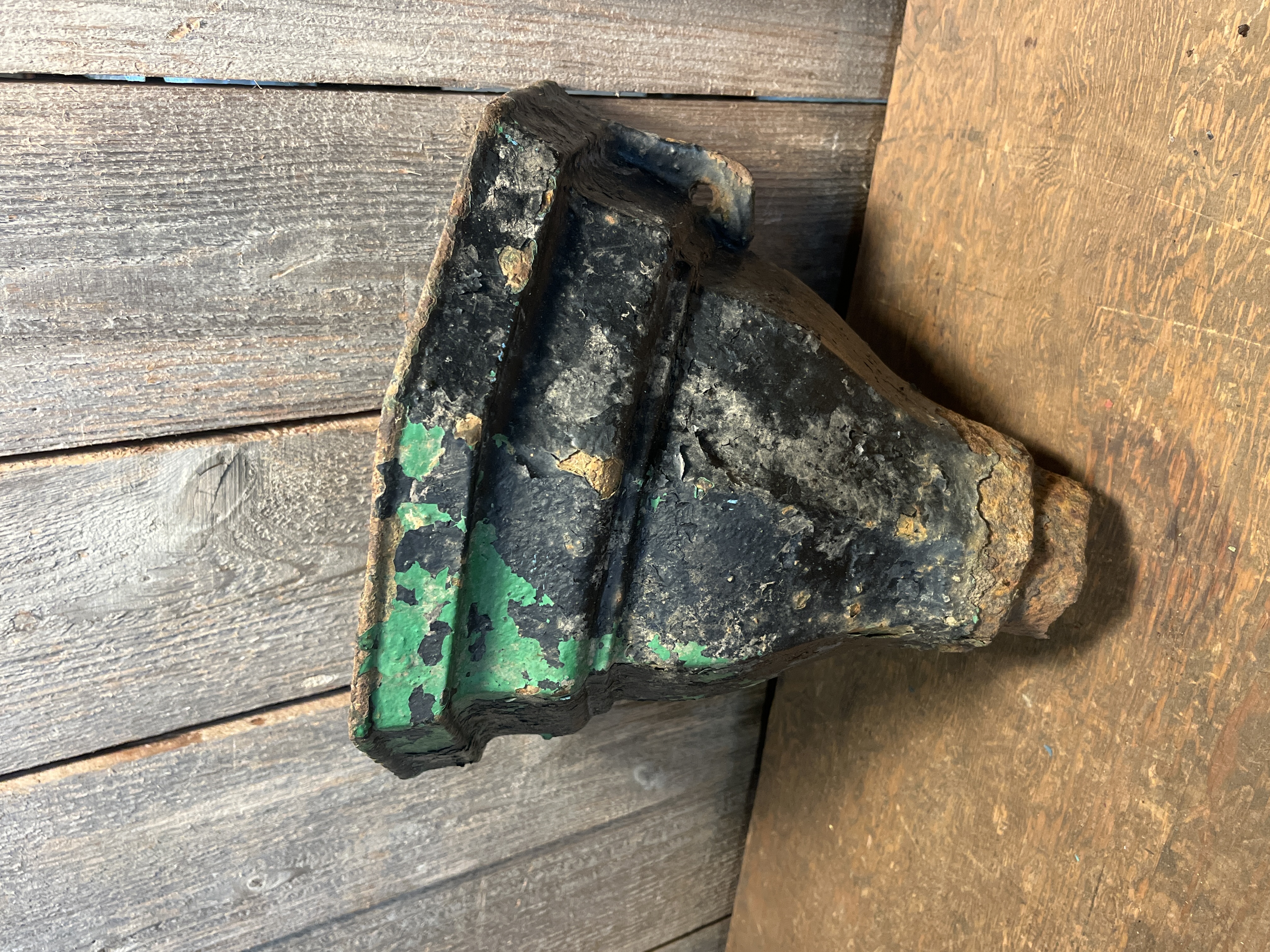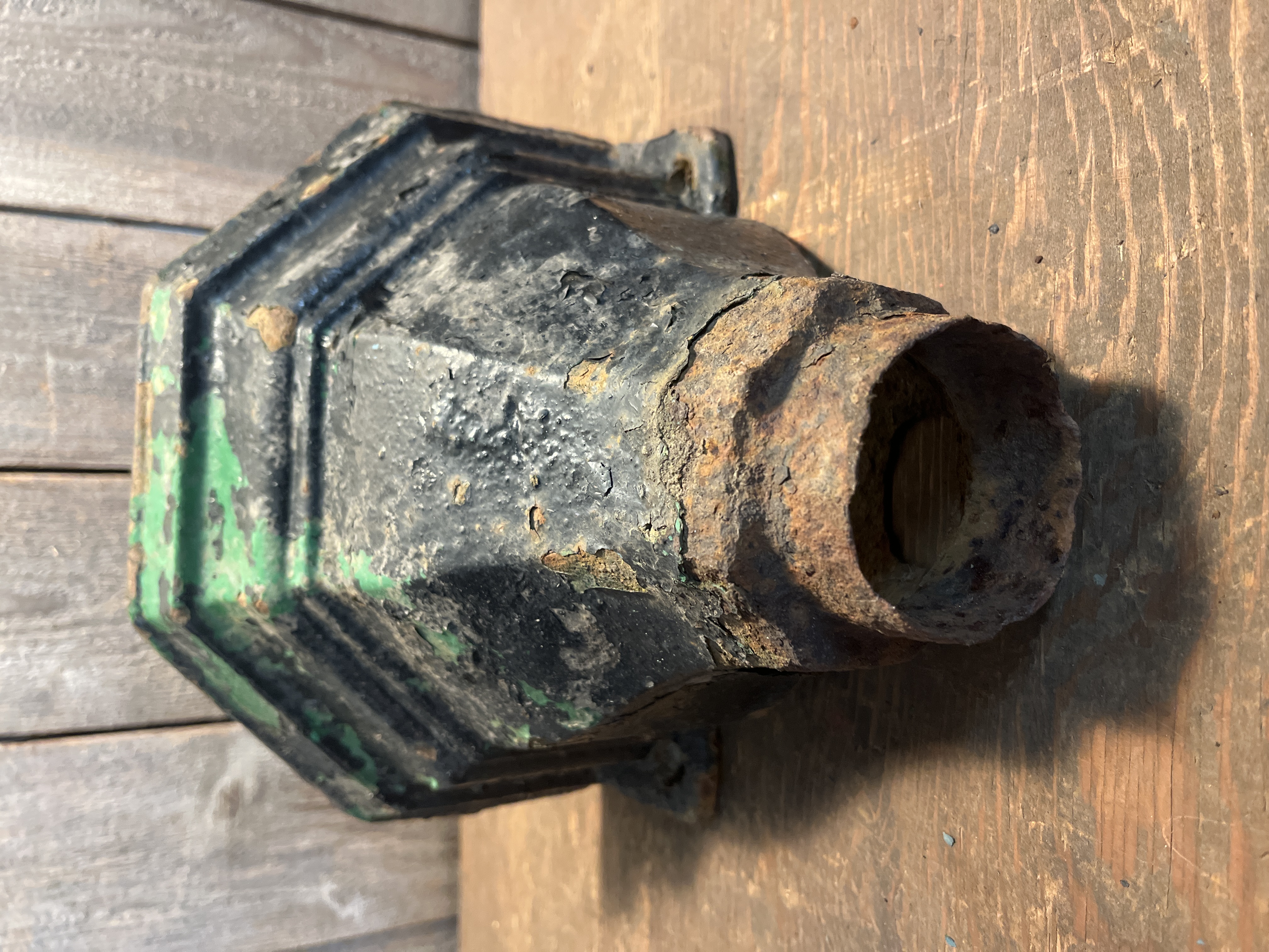 A beautiful circa victorian era cast iron drain pipe hopper. A bit of a rare find, and this one is in okay shape. The mounting tabs are both unbroken but there is some rust issues, mainly where the pipe meets the hopper and a rust hole on the bottom of the hopper at the back. There is also lots of flakey paint! It could be fairly easily modified to be a fantastic planter! Measures 10.25 x 9 x 6.25 inches.