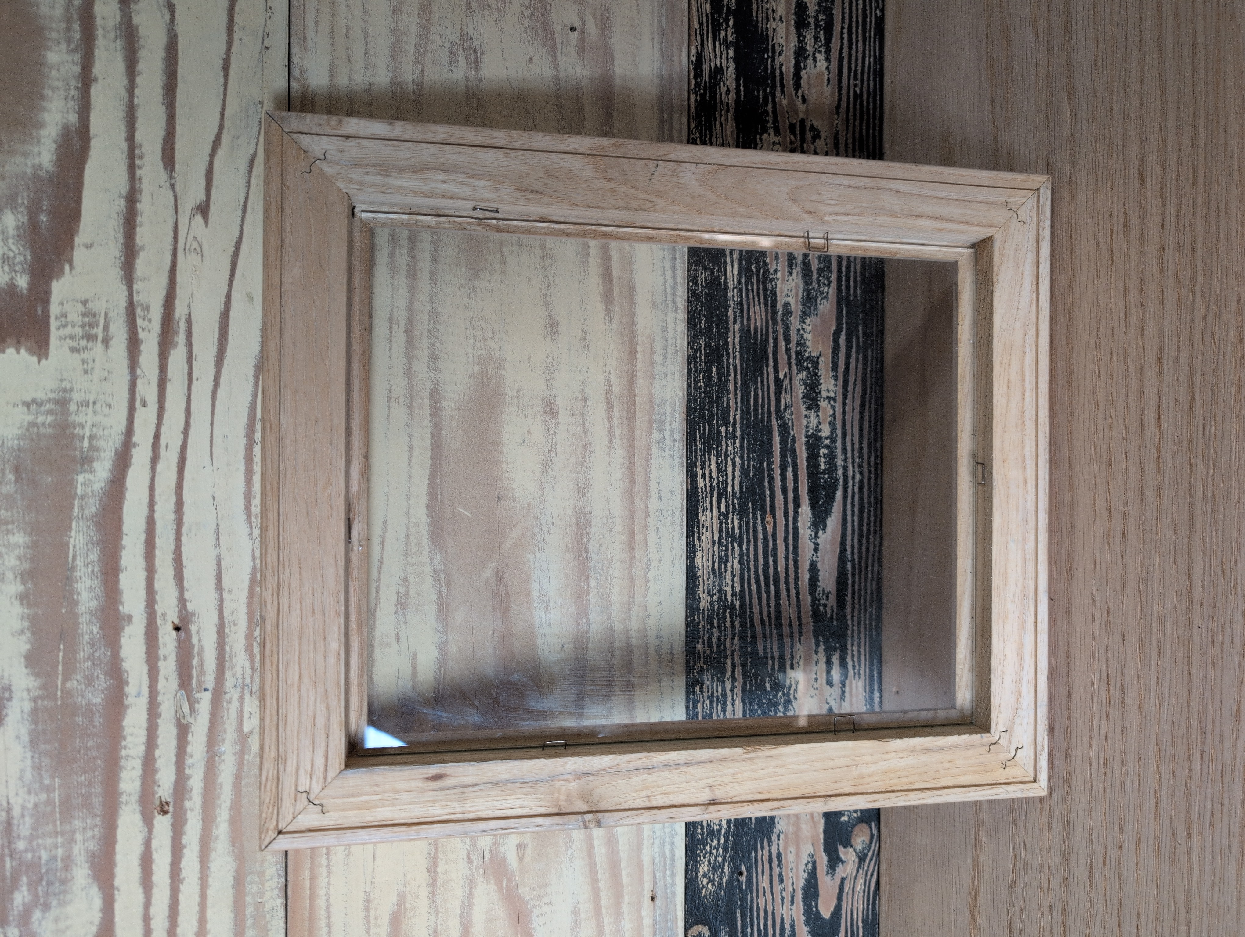 Quite simply, this is a wood picture frame with glass insert. Fits a 10 x 8 inch picture with ~1/4 inch of the frame hanging over.