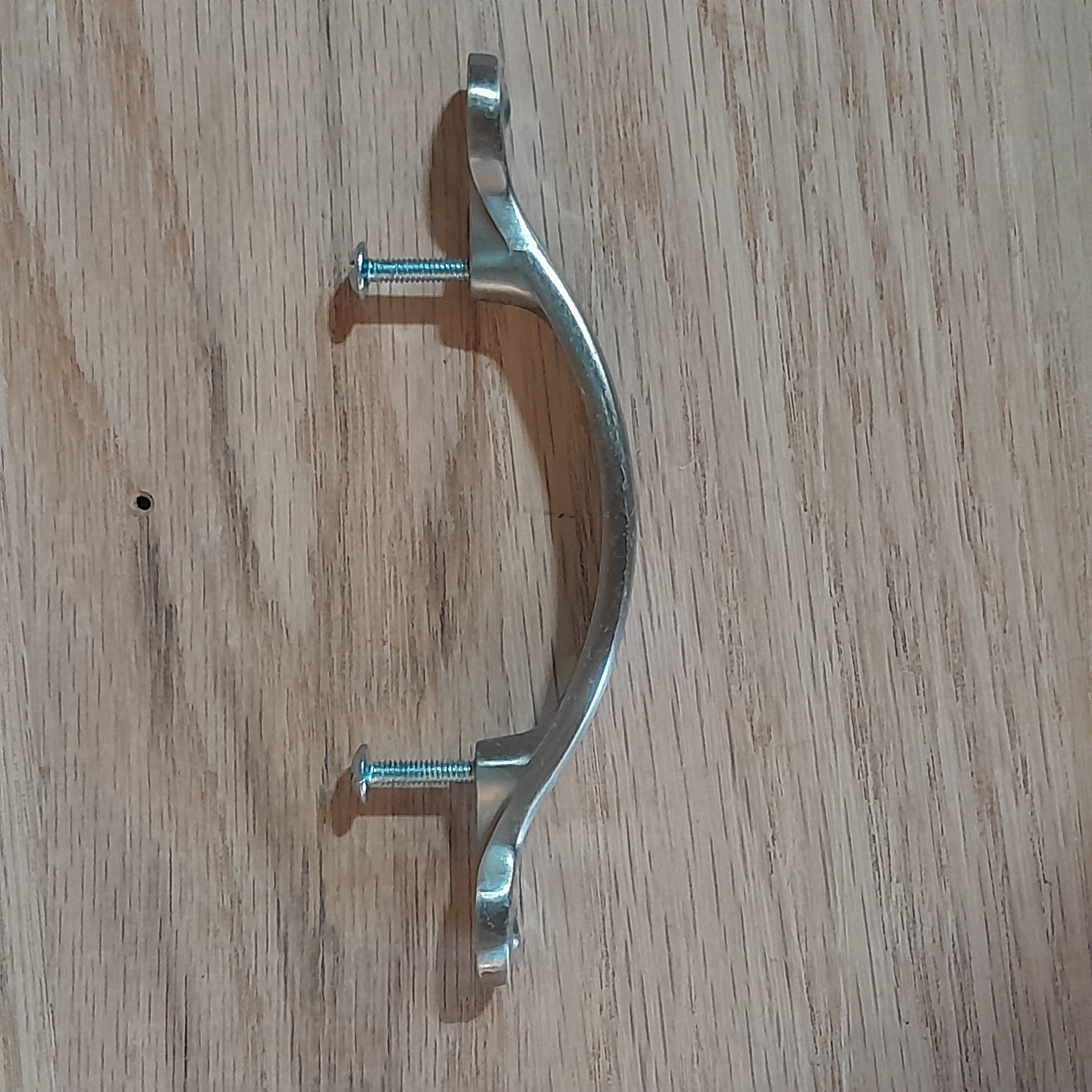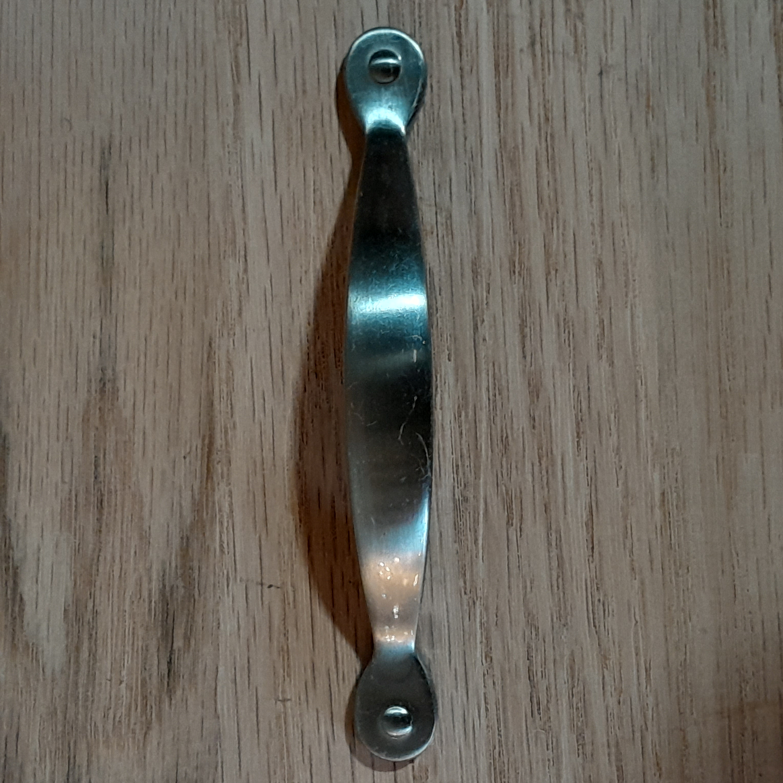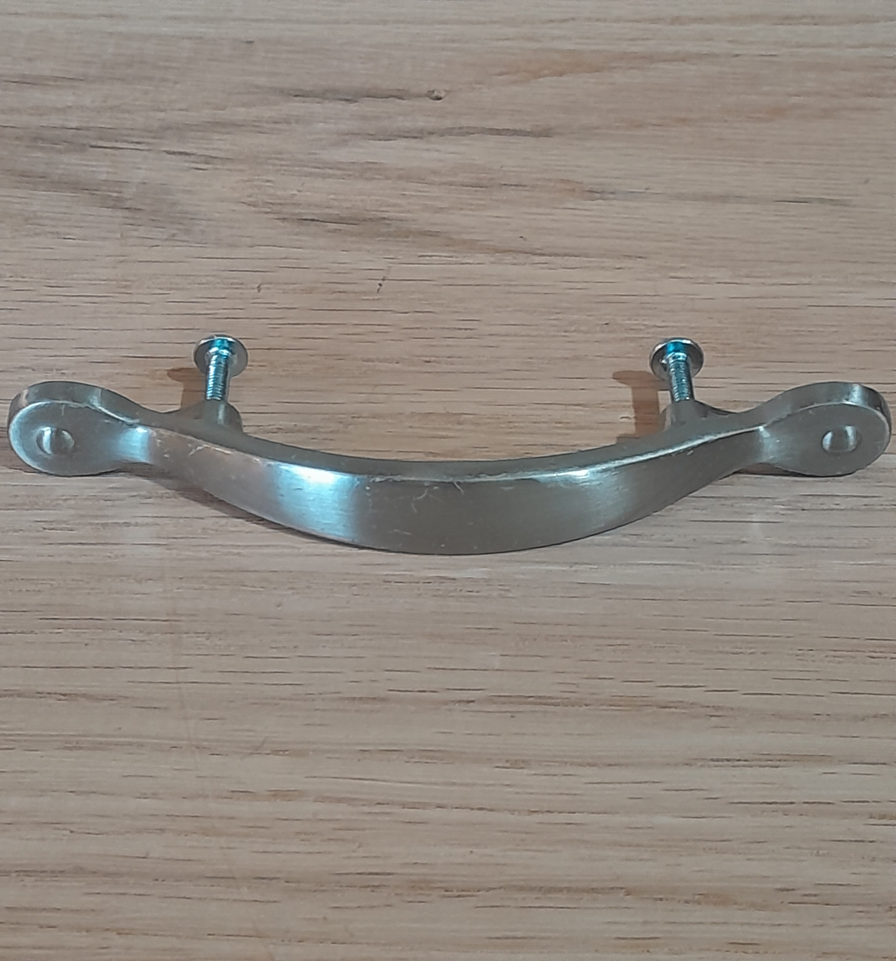 Keep your cabinets looking modern with these simple patterned drawer pulls. Previously installed and could use a clean up, some wear spots. Center to center 3 inches.