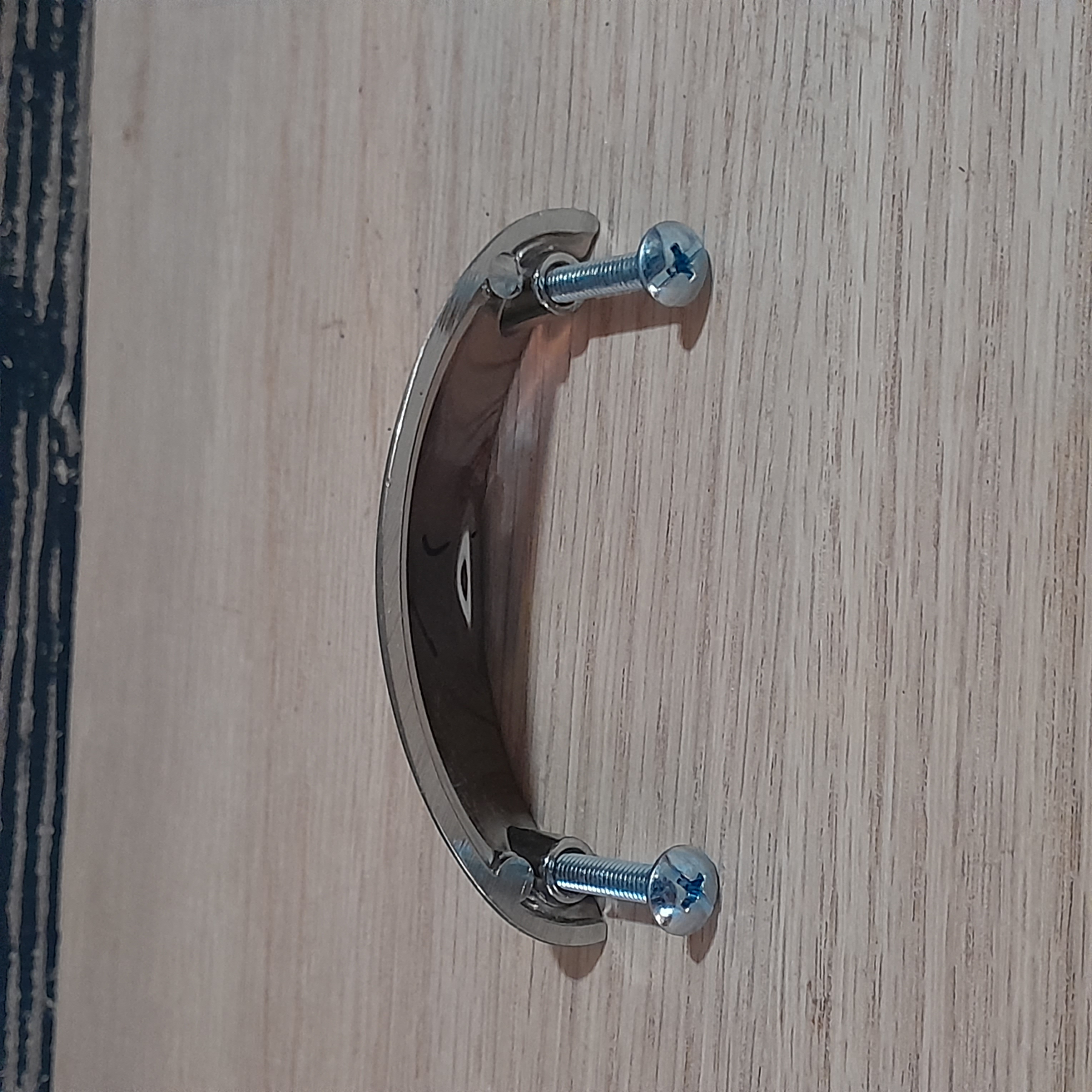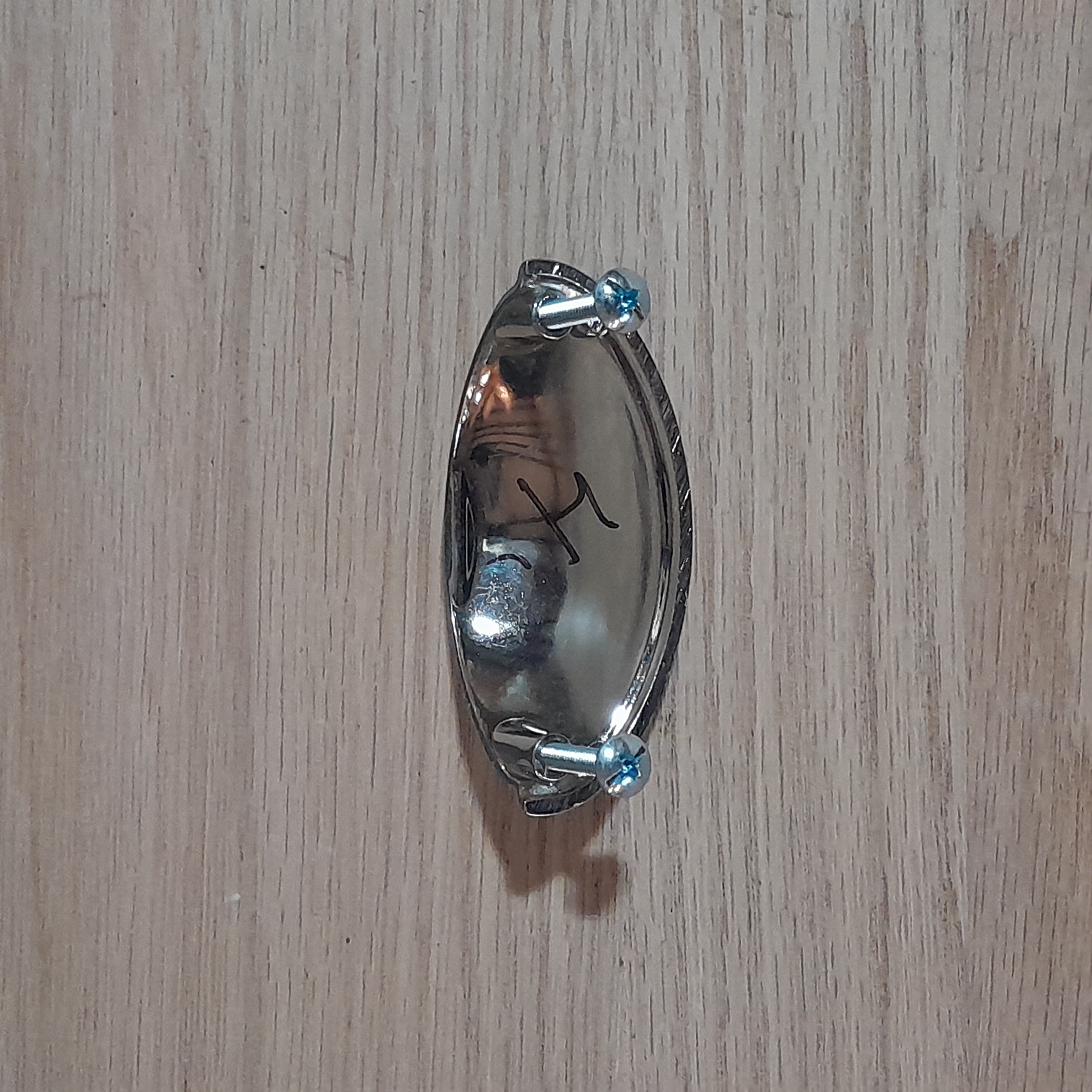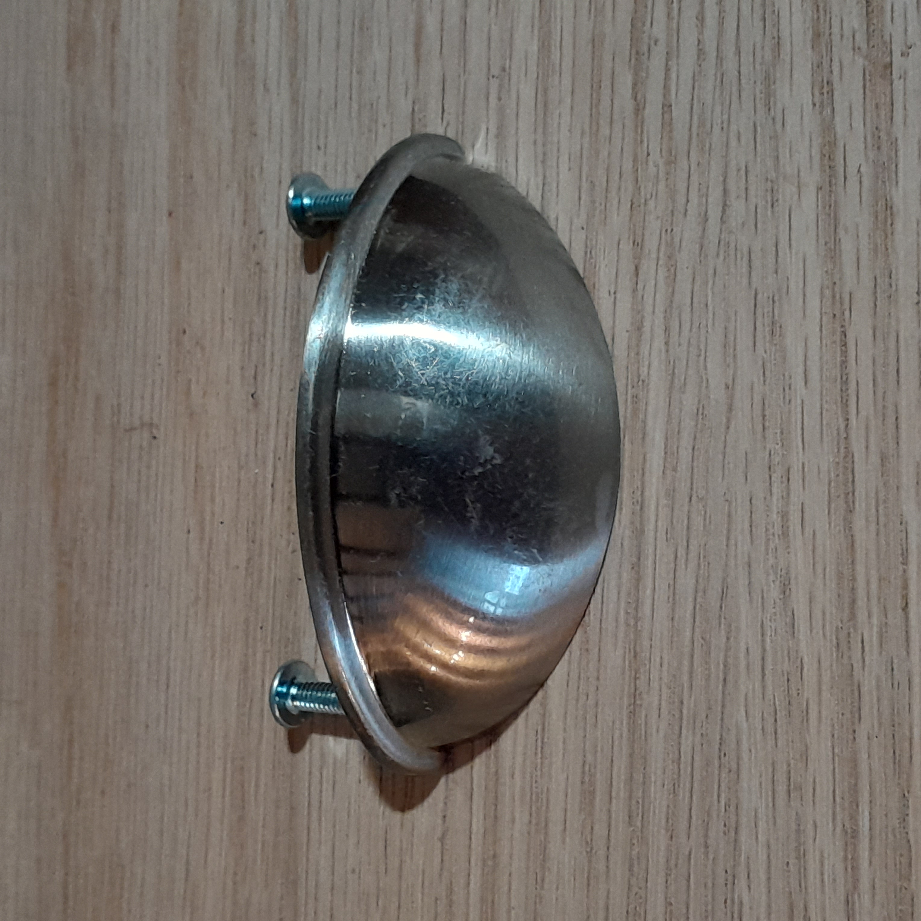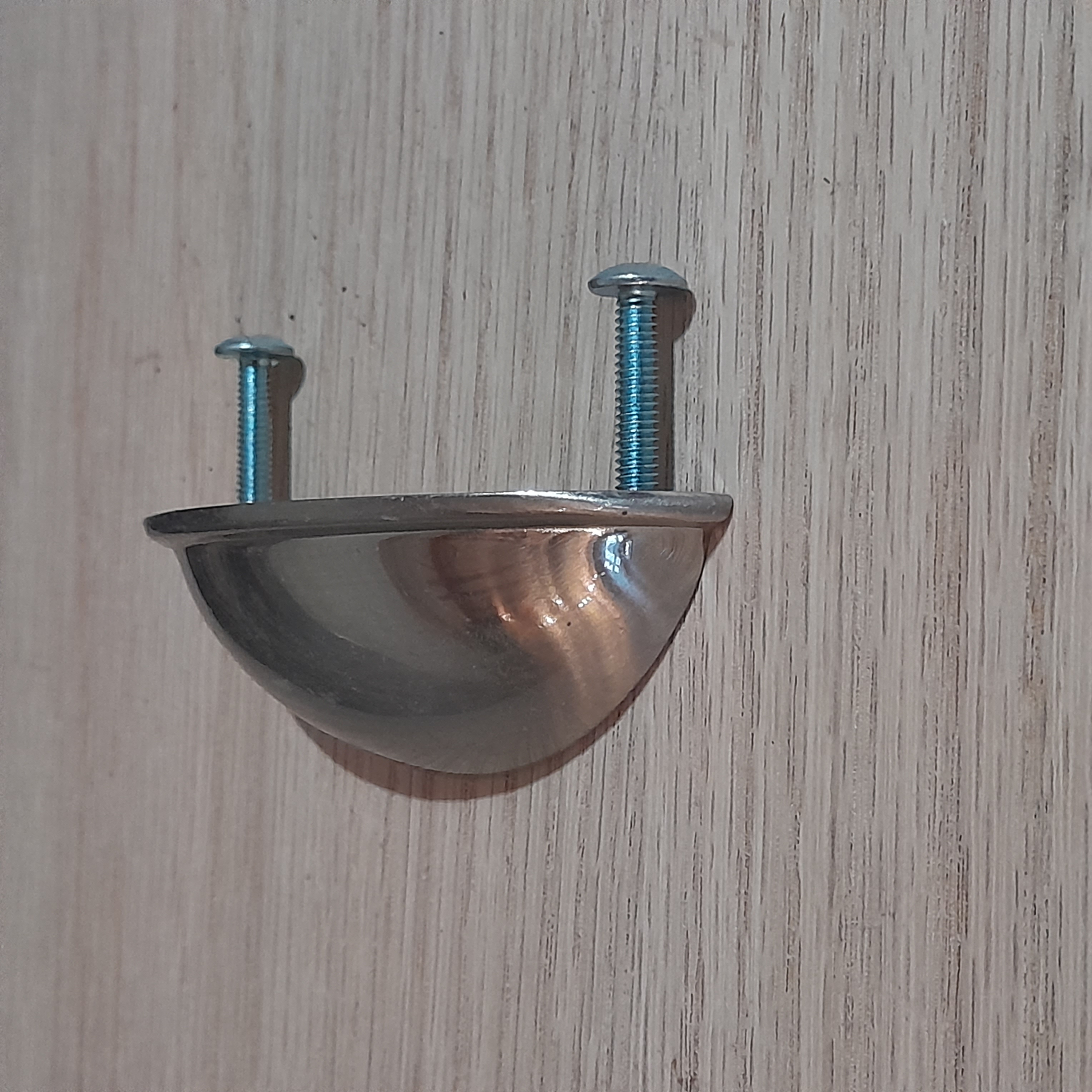 Previously installed, some wear and use spots. Should be able to clean them up and make them shine again. Center to center 2.5 inches.