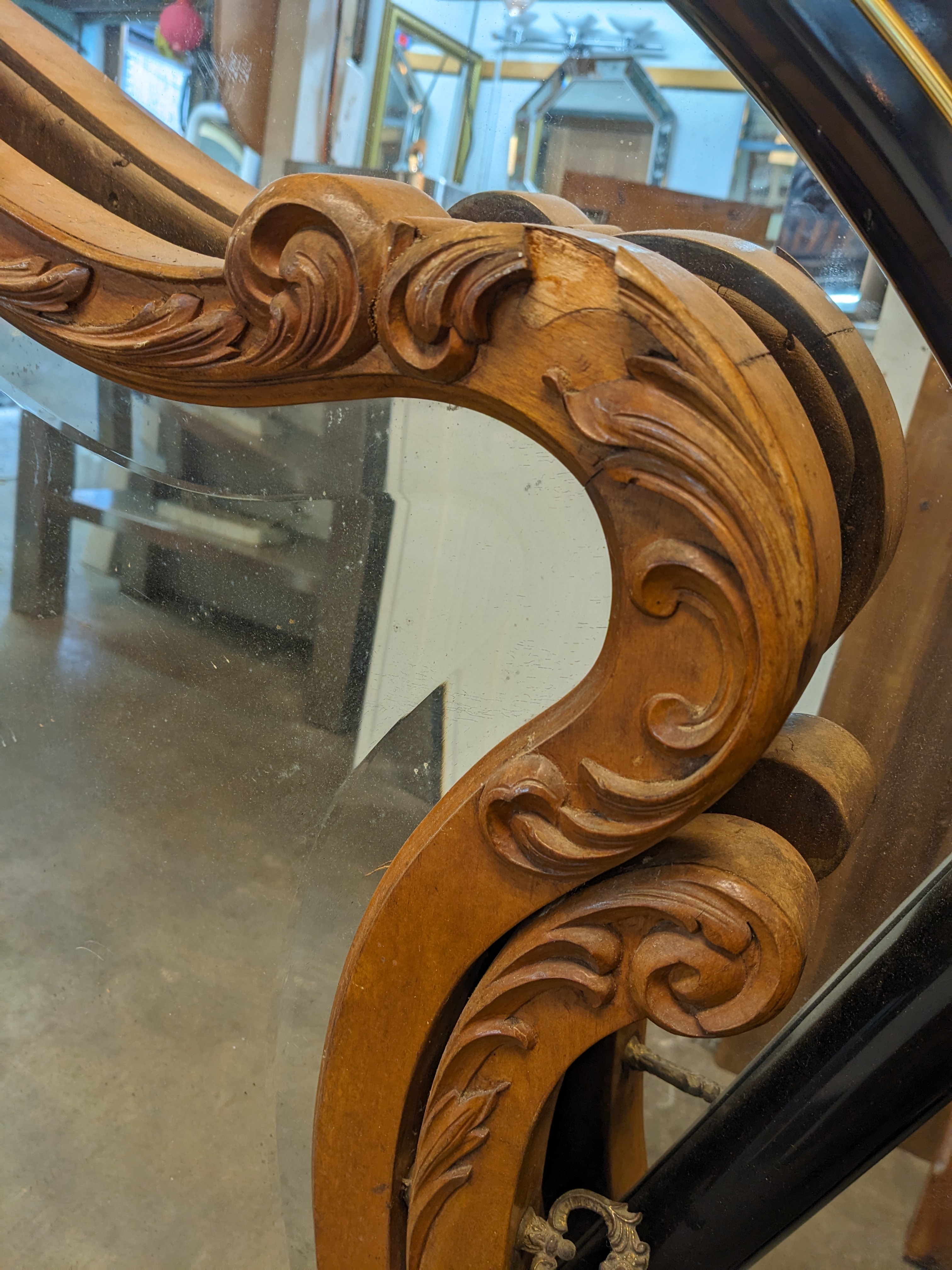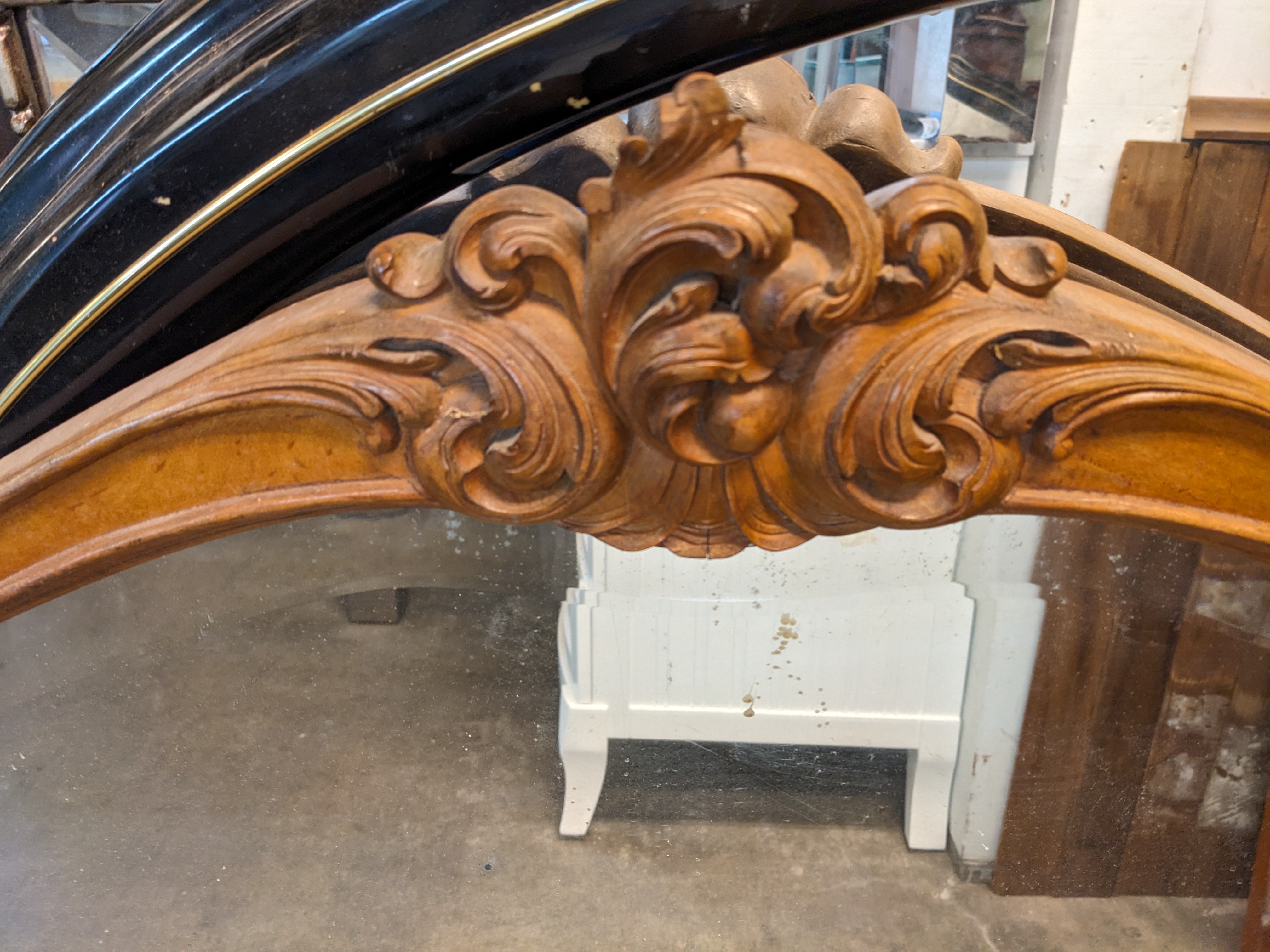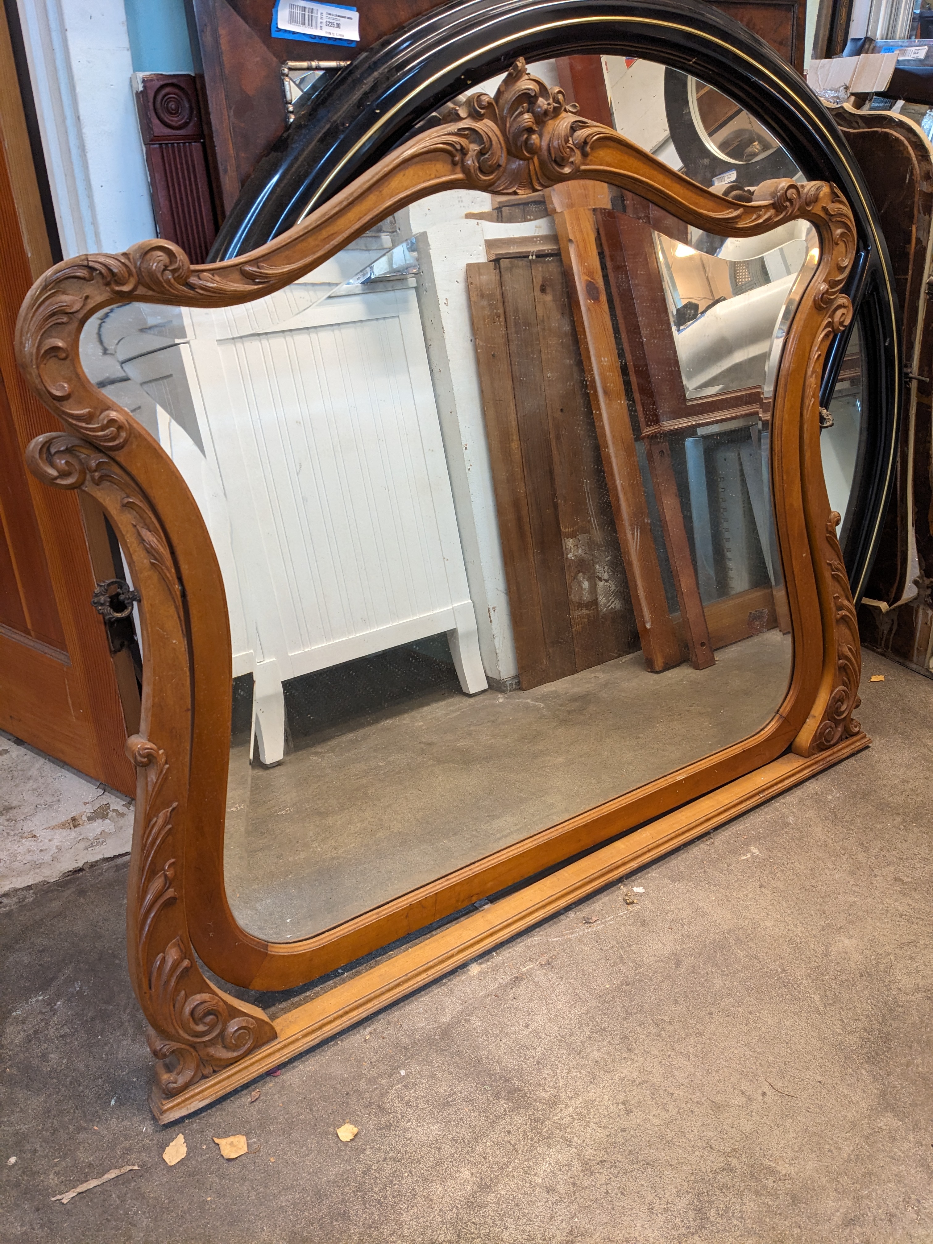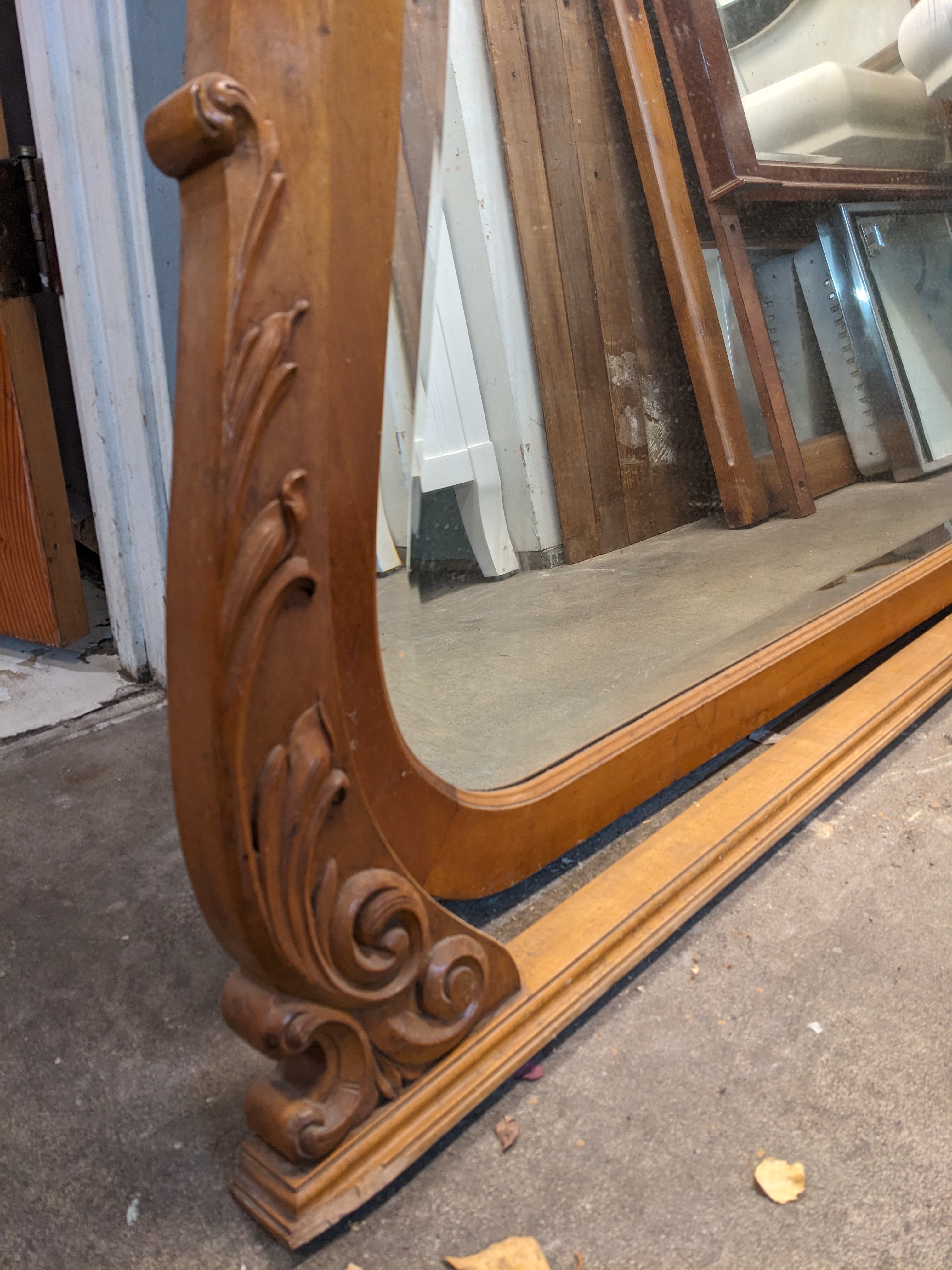 Gorgeousssssss jumbo-size wood carved mirror. Mirror swings in its frame, making it the perfect vanity mirror for your next project (or perhaps leave as is) ((it's your life))