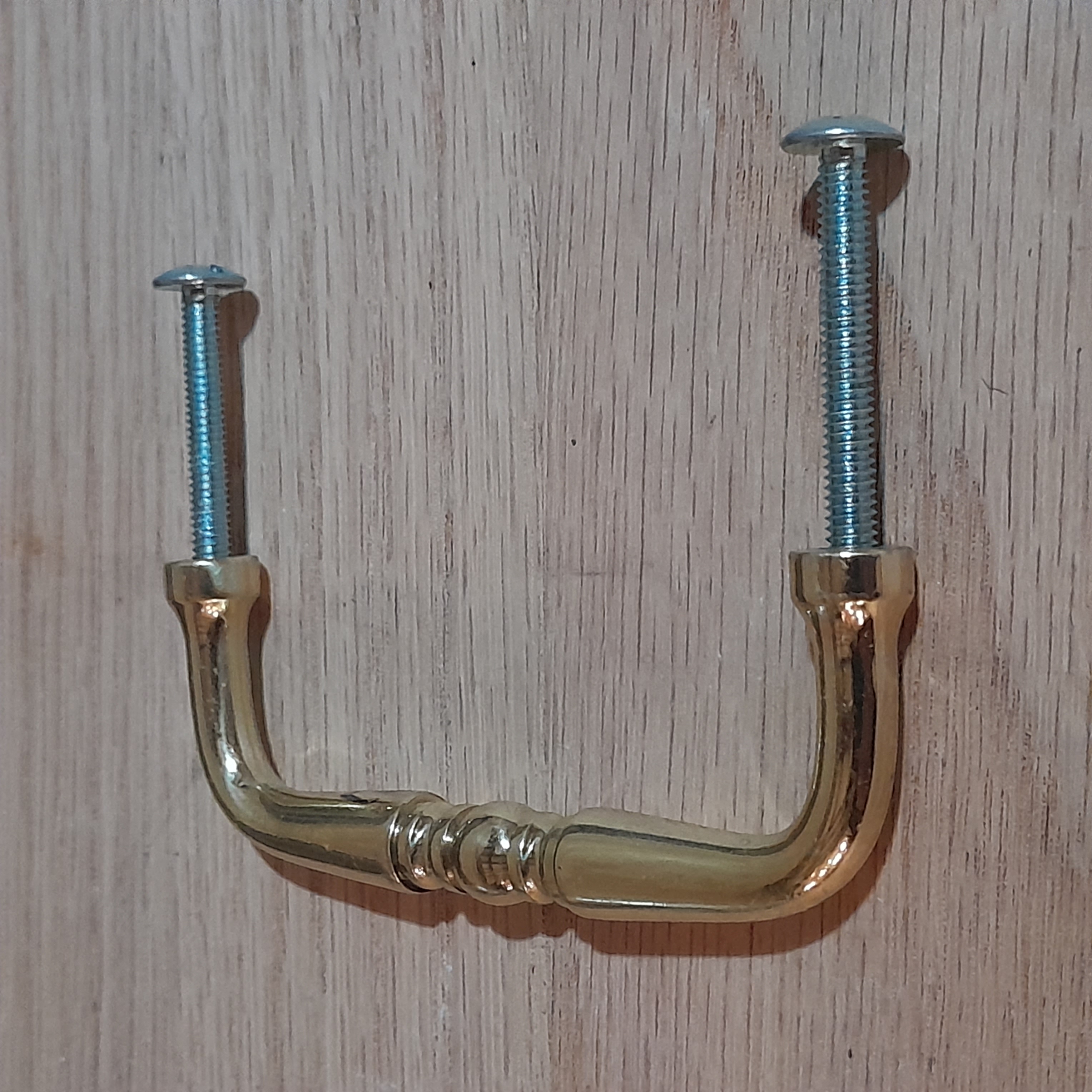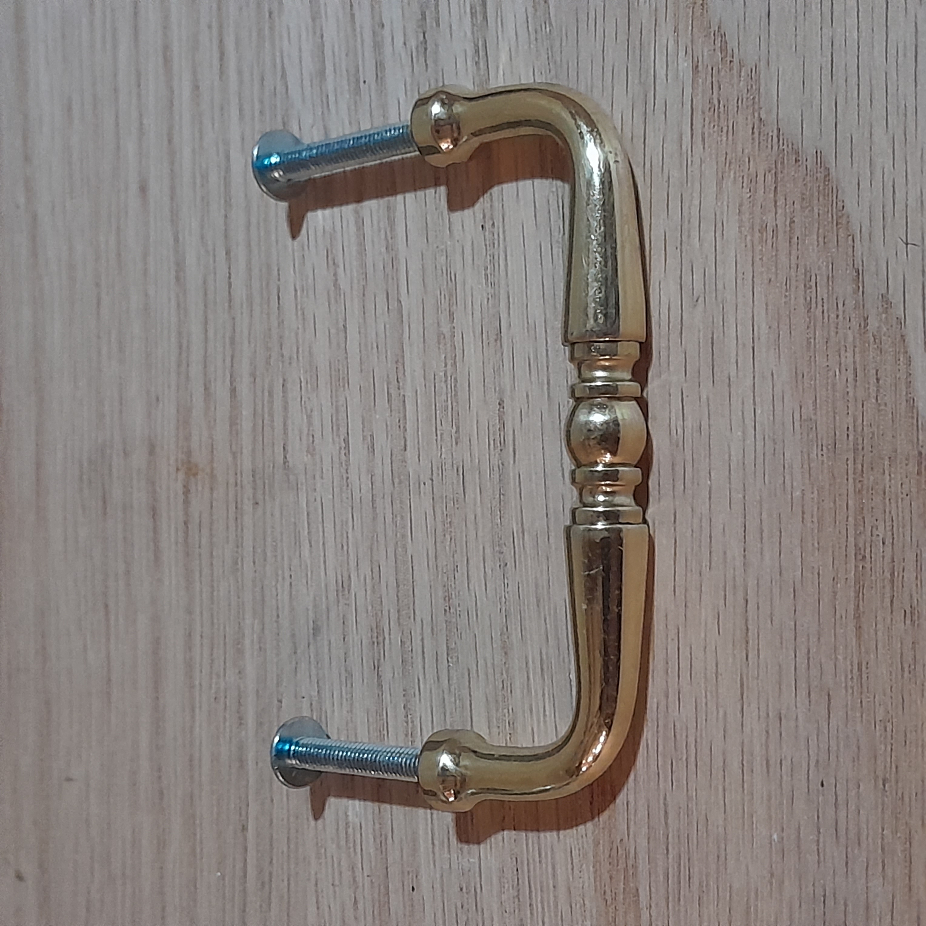 Simple and elegant. Previously installed and used, some wear and use. Comes with hardware, ready to install. Center to center 3 inches.
