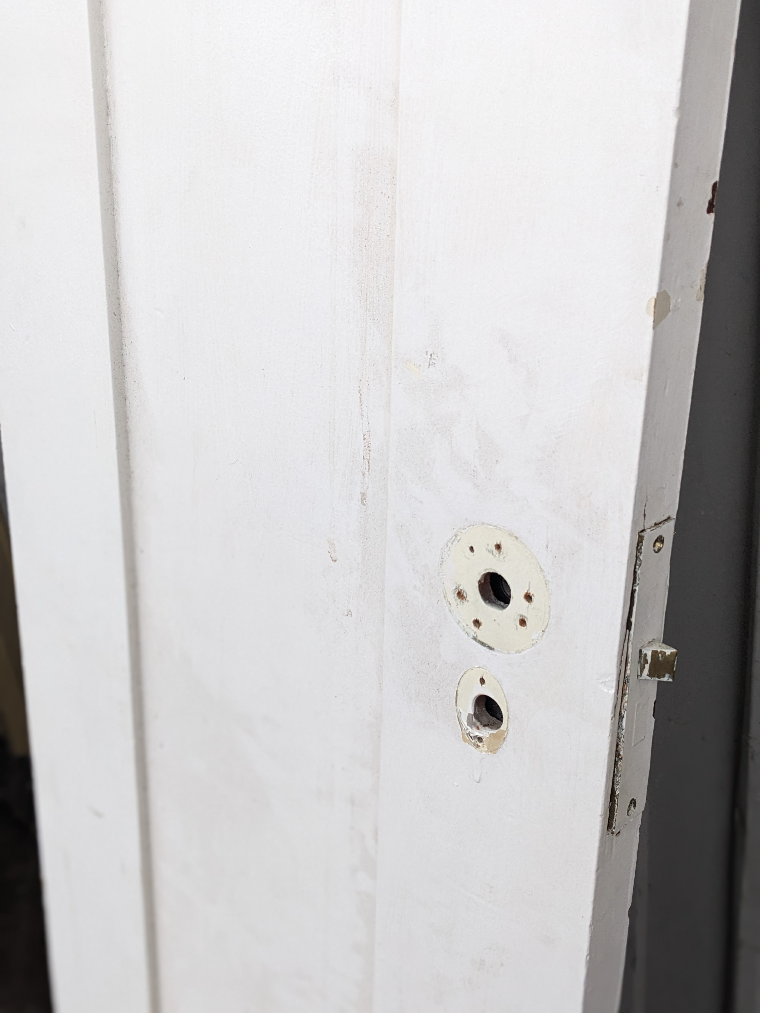 This skinny door has some wear and loads of paint, but it is still structurally sound.