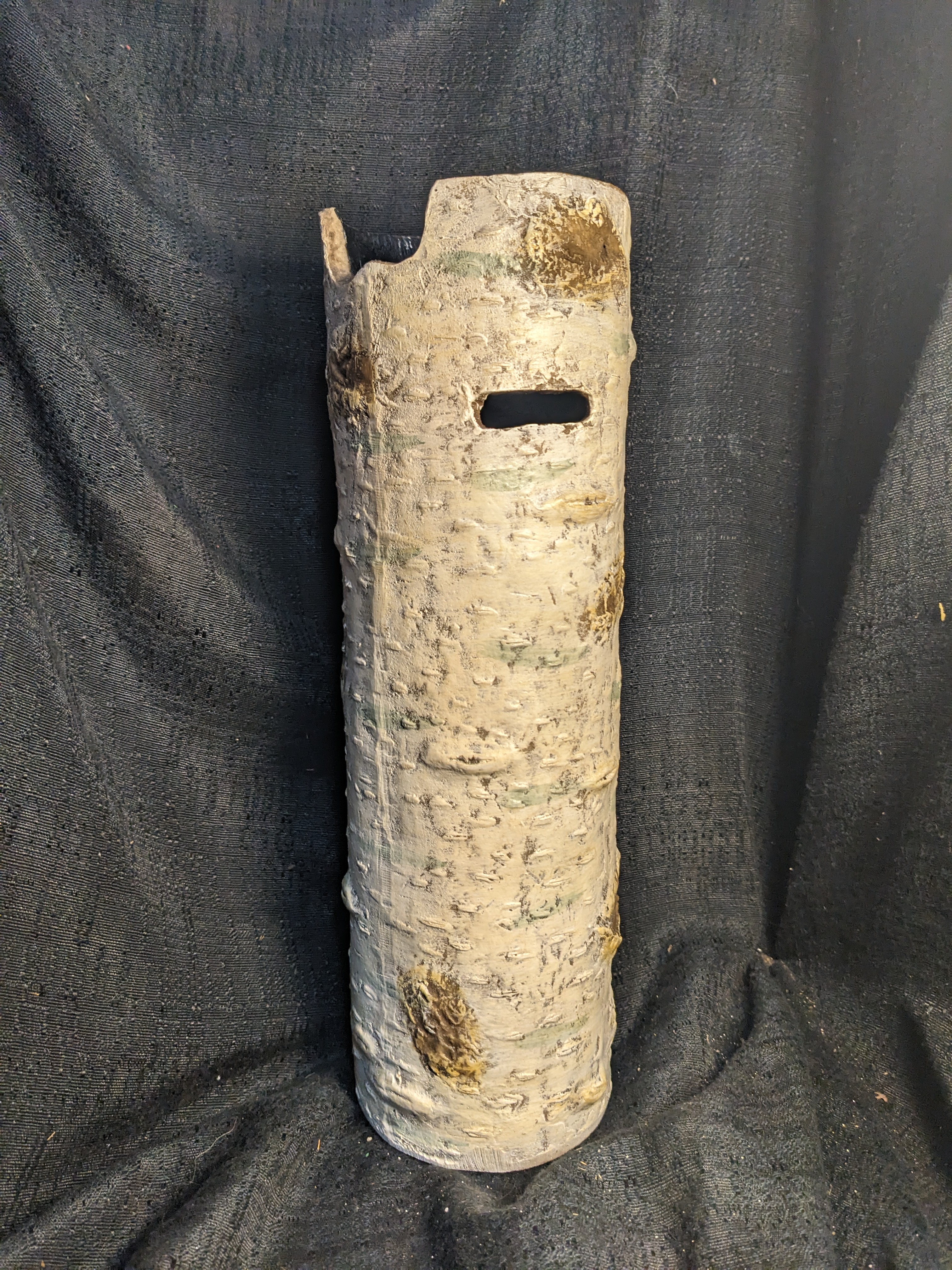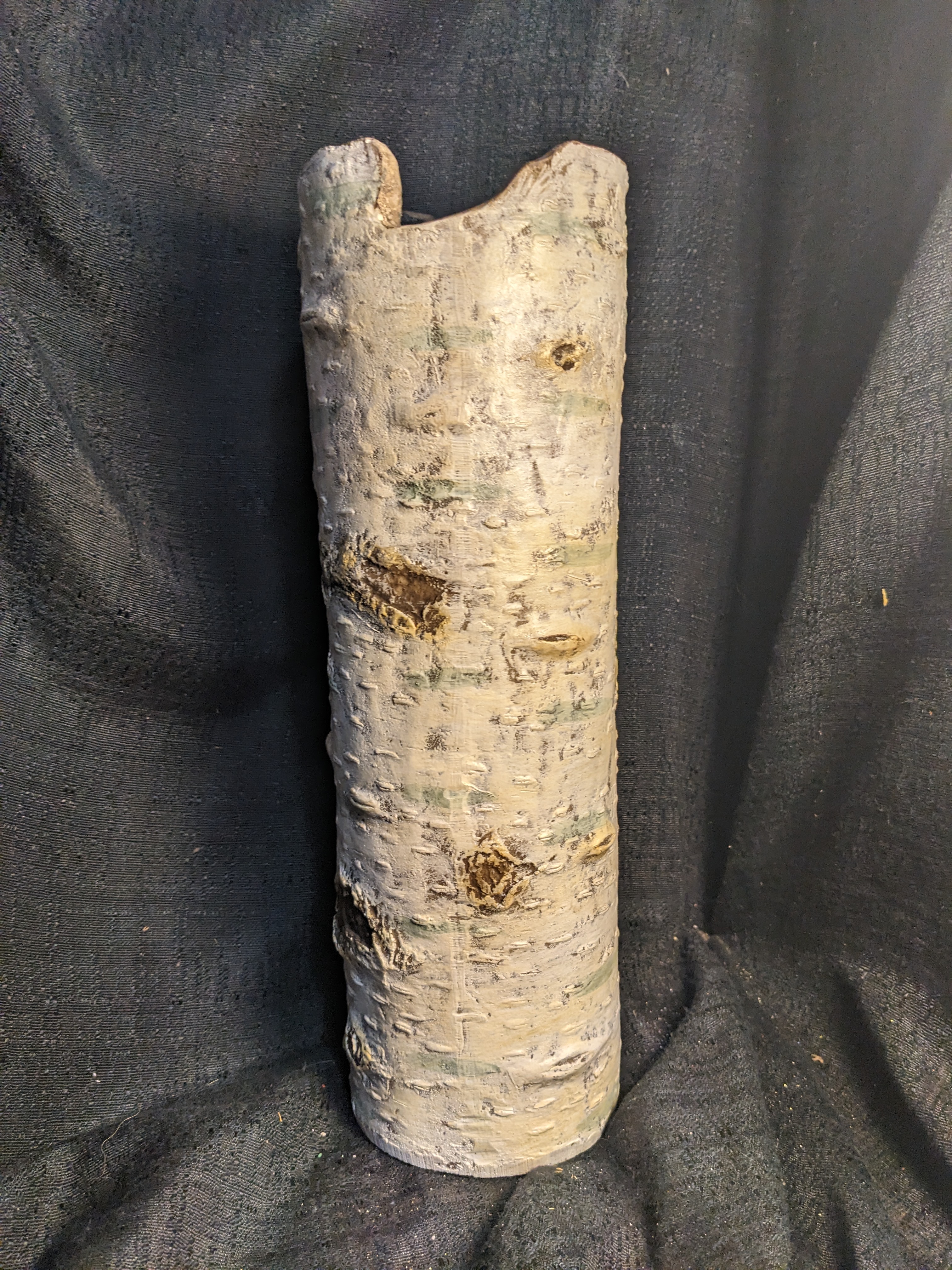 This birch vase would be a great display vessel for your holiday greenery, cardinal dogwood twigs, or other branches! It could also cover a vase for cut flowers that require water. Measures 4 x 13.