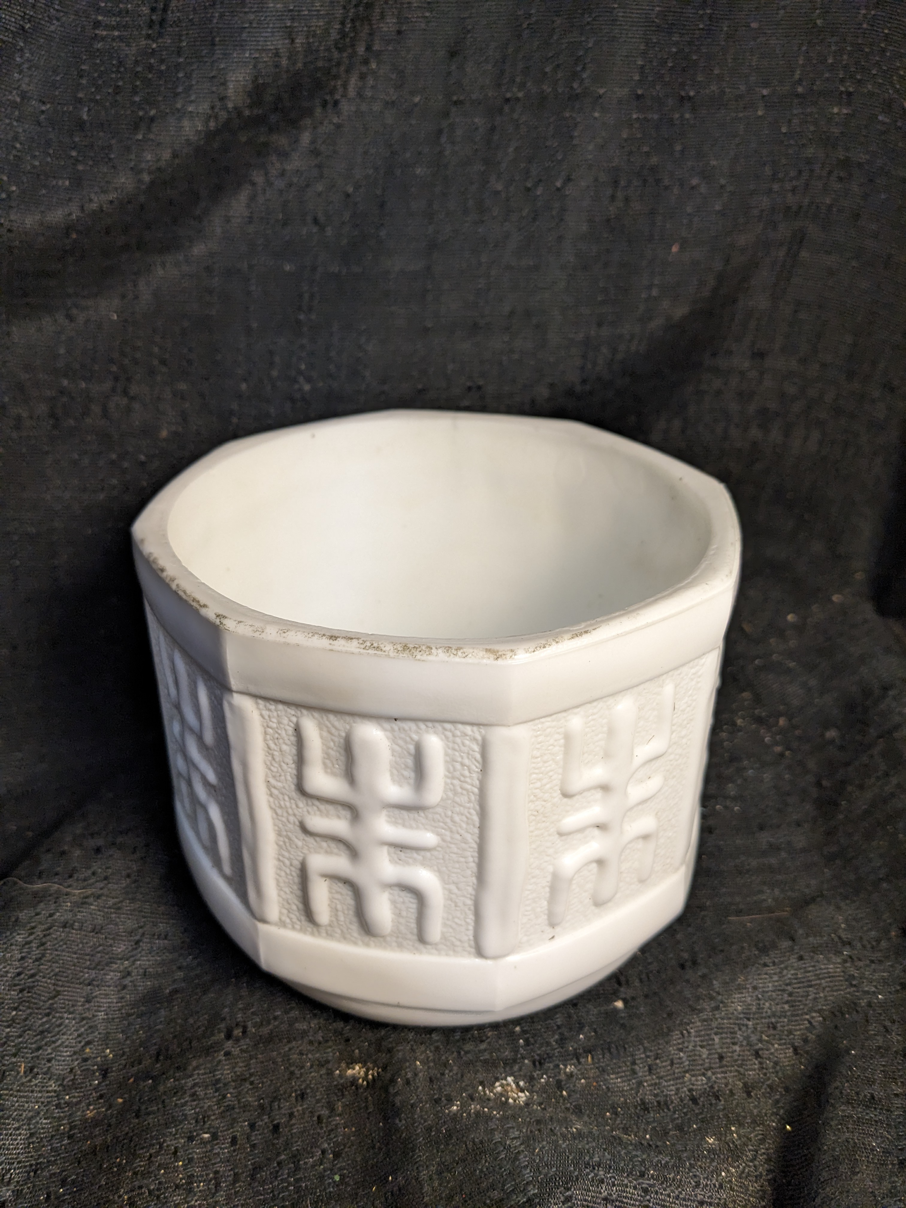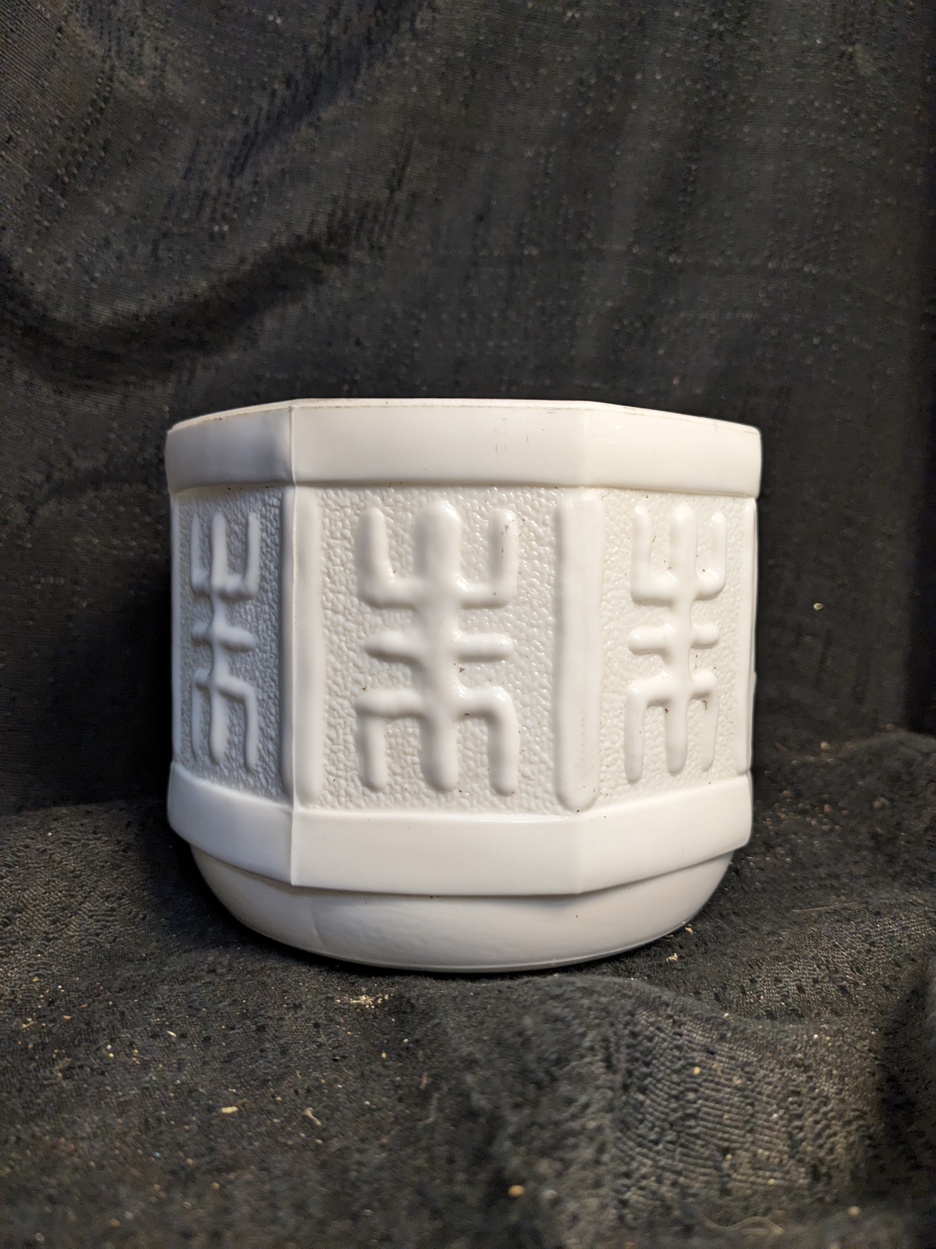This geometric embossed planter is in great condition it's glossy finish adds some elegance to the piece and it's geometric embossed pattern.