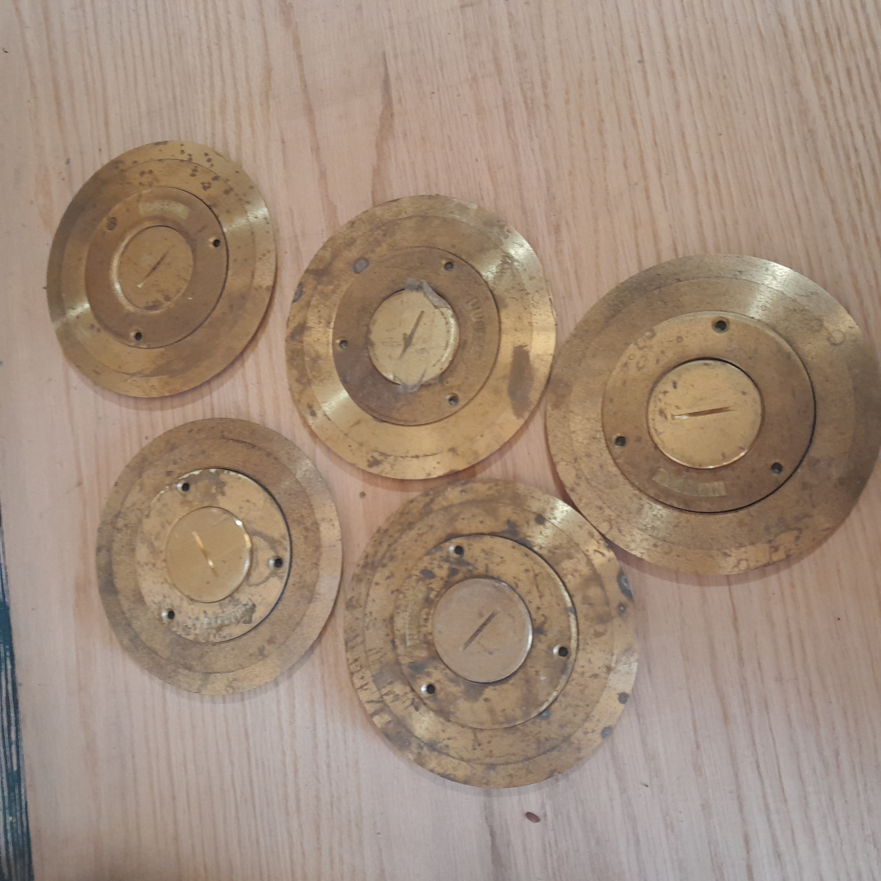Used and have some wear. Made of brass and ready to be installed. Doesn't come with screws.