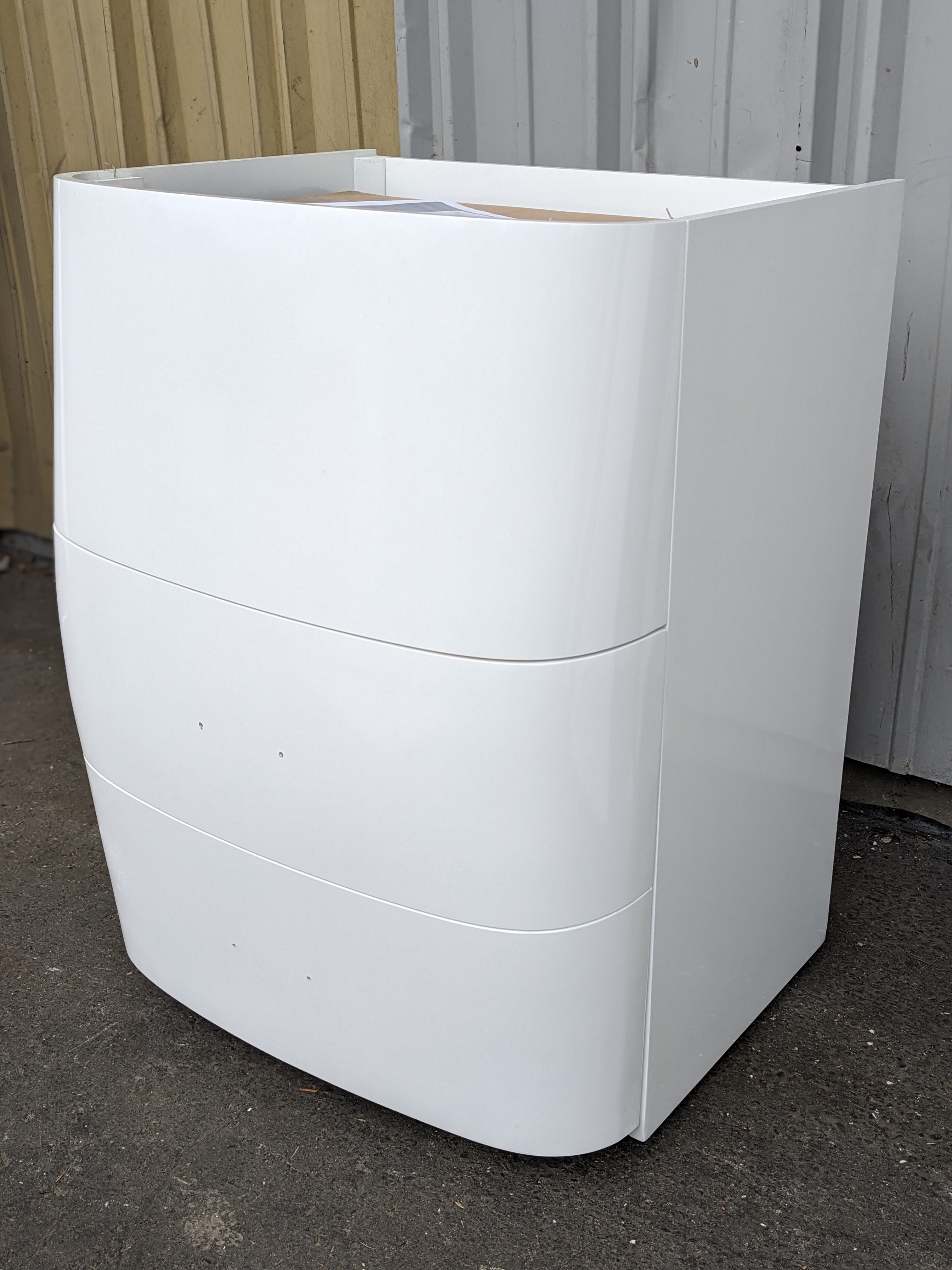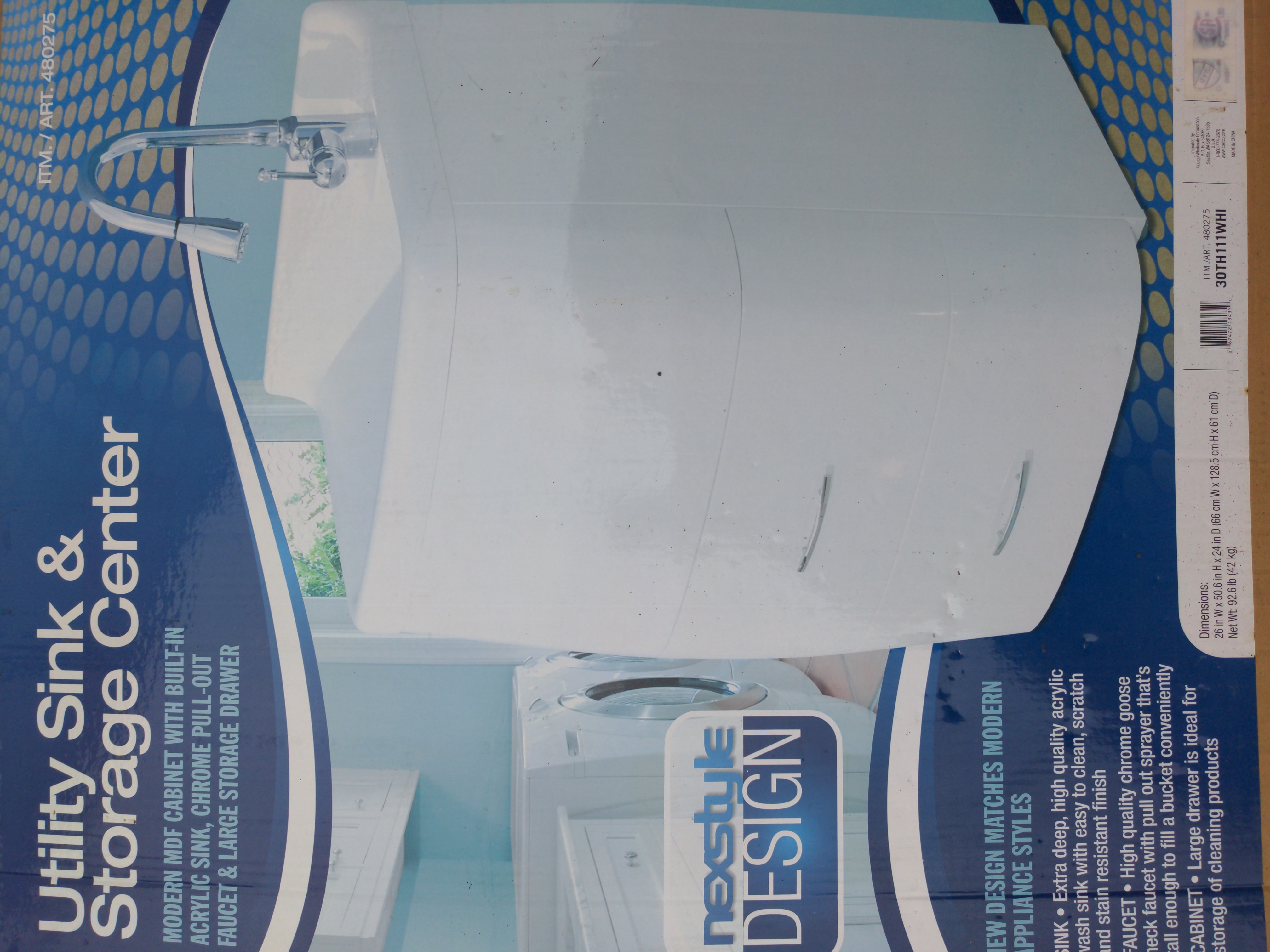 Brand new and unused, this compact and stylish utility sink is ready for you! We think it was originally sold at Costco and optimized for a laundry room. Sleek modern design with two pull out drawers for storage, hardware for assembly included.