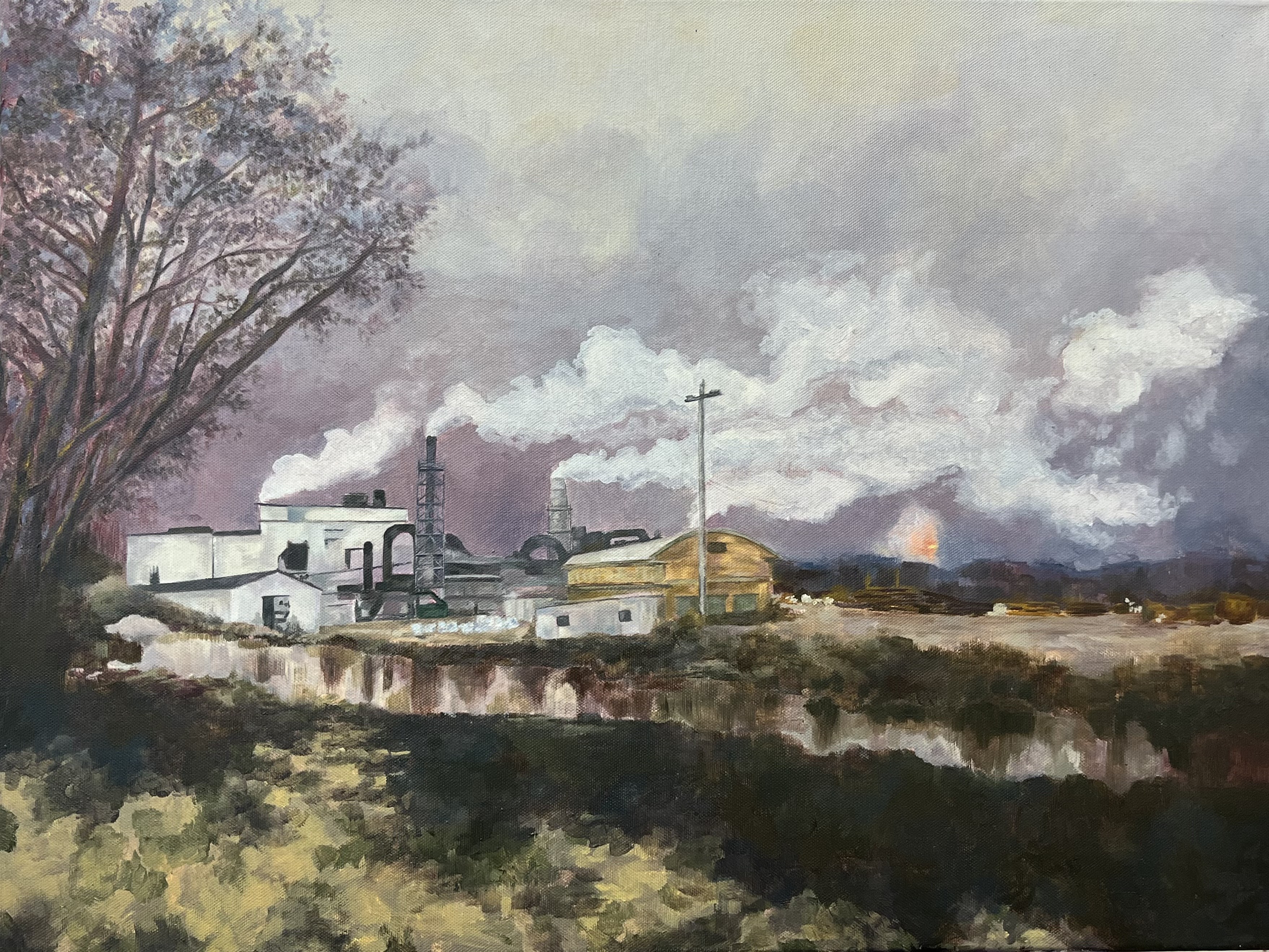 Print of an original oil painting picturing the Cosmo Fiber Mill in Cosmopolis, WA.