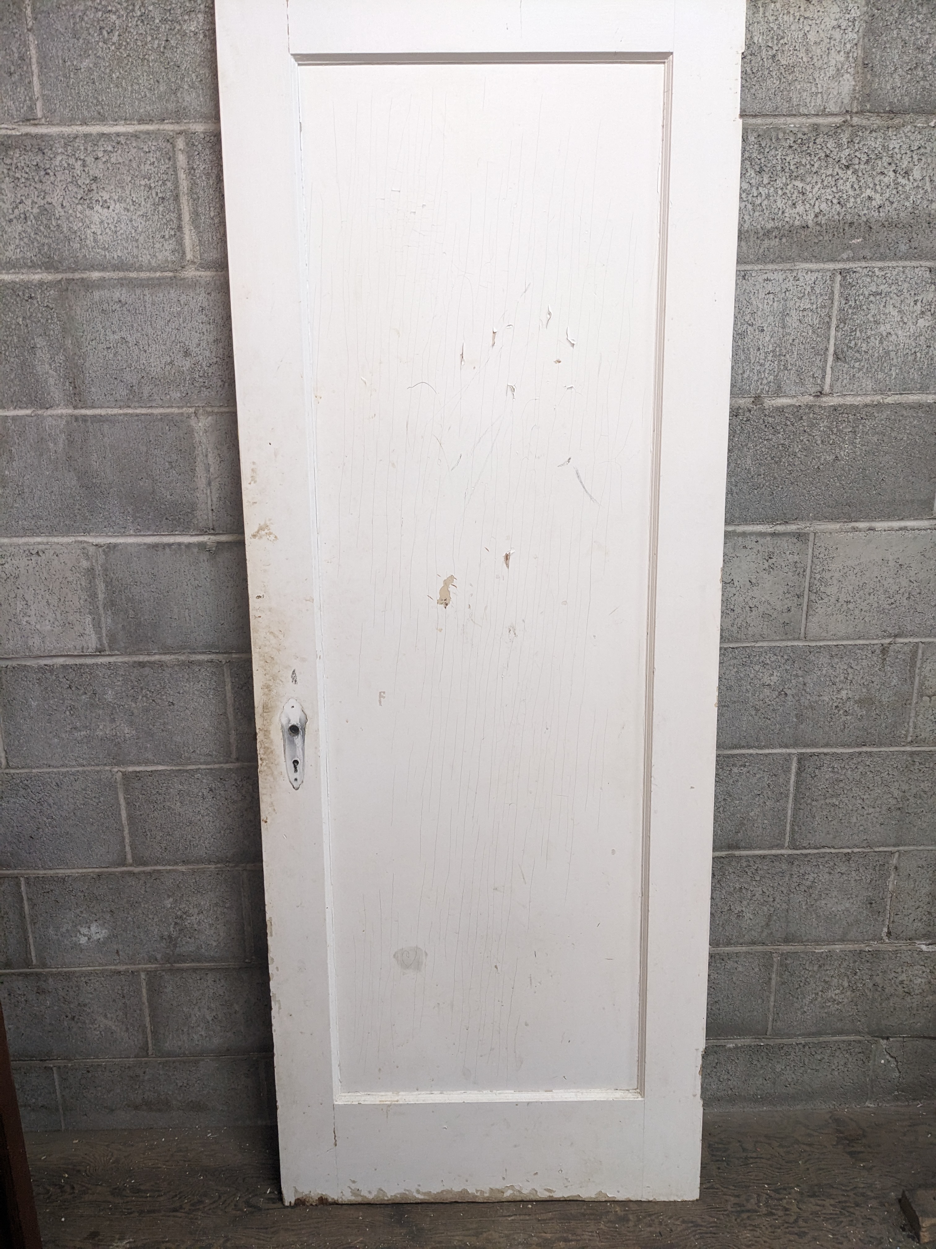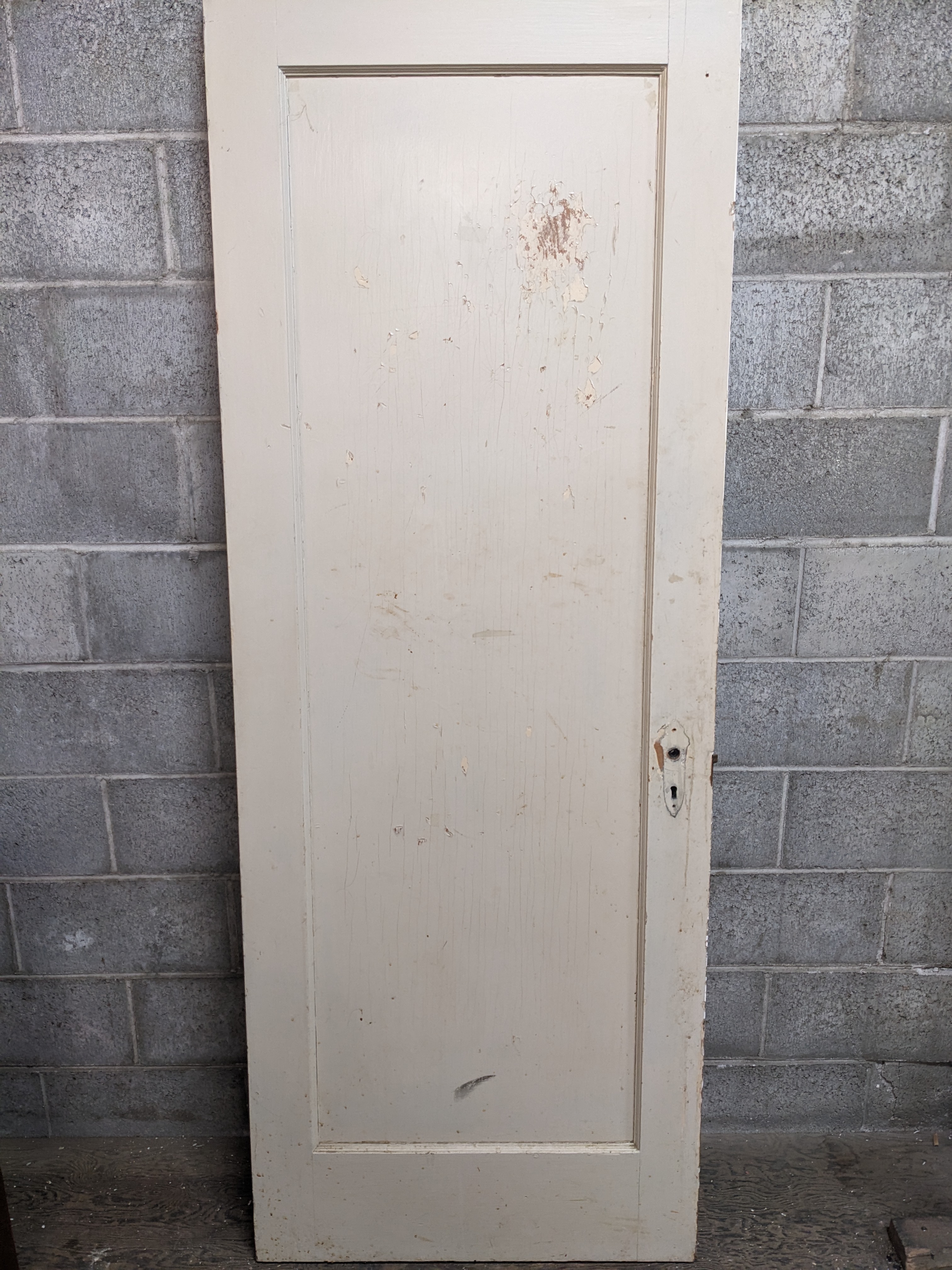 1 panel left hanging door. Old paint on both sides. Slightly weathered. 30 x 79.25