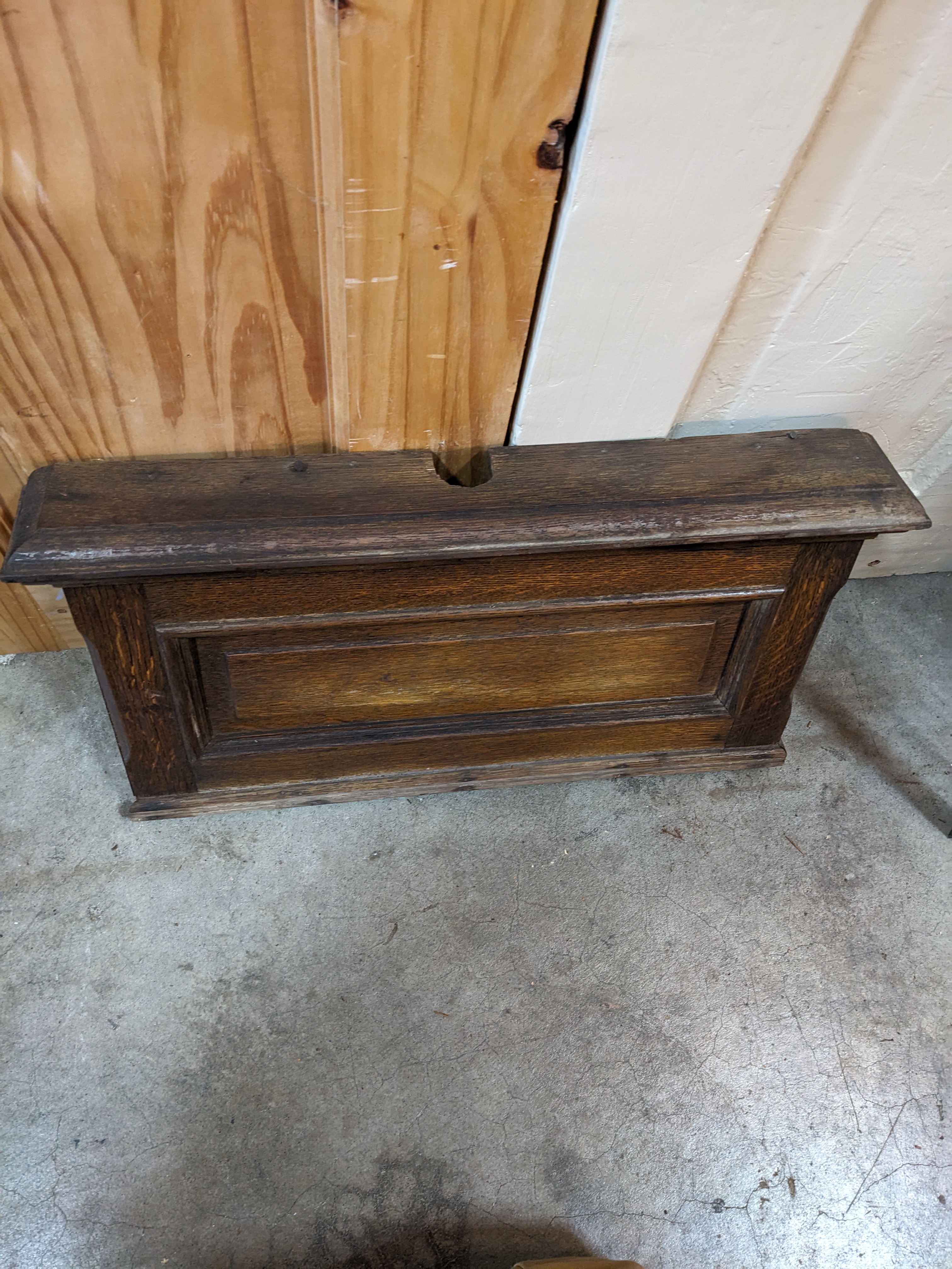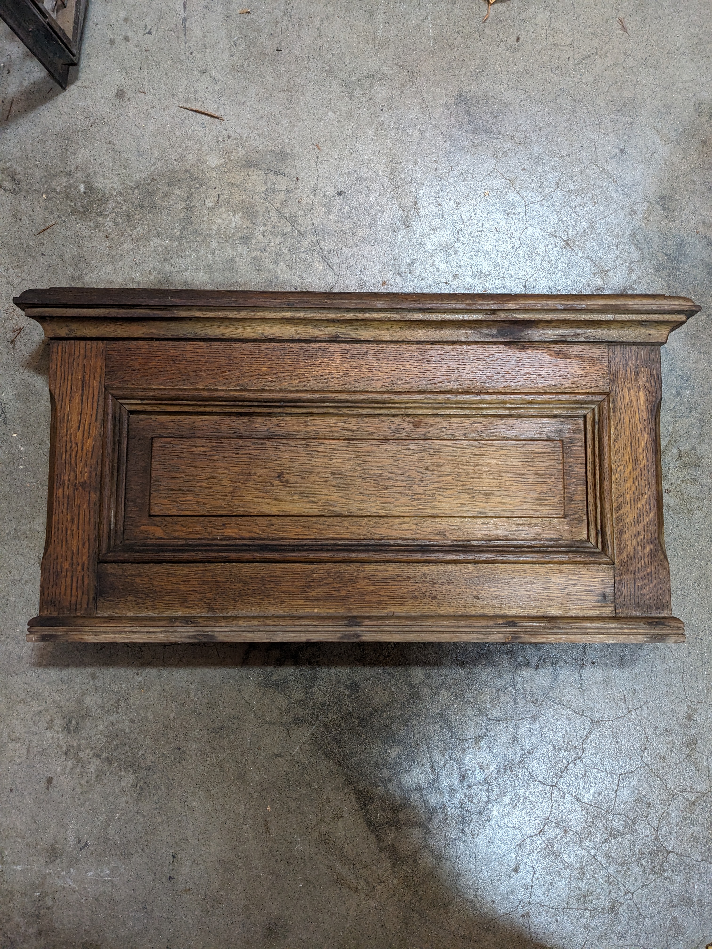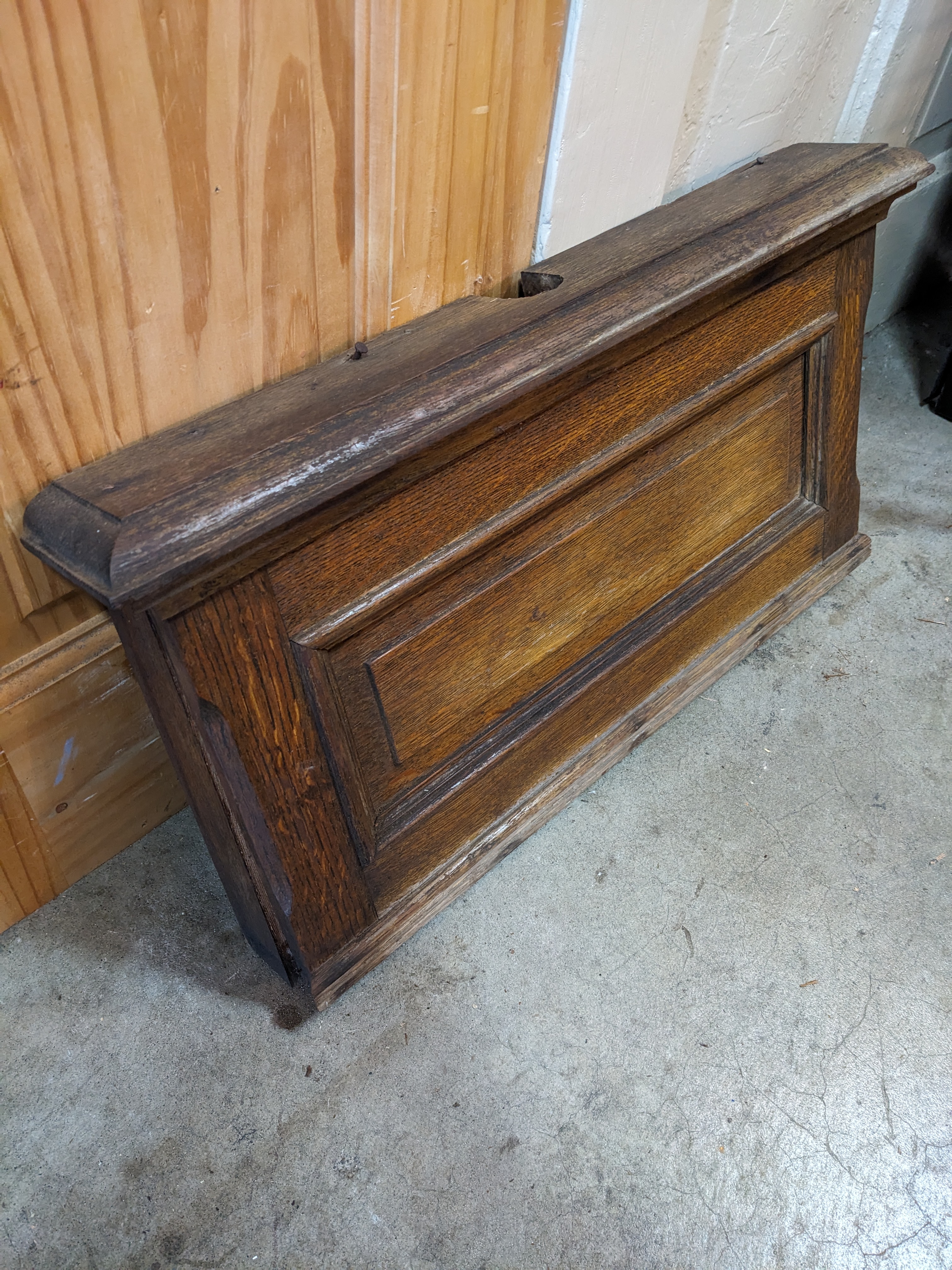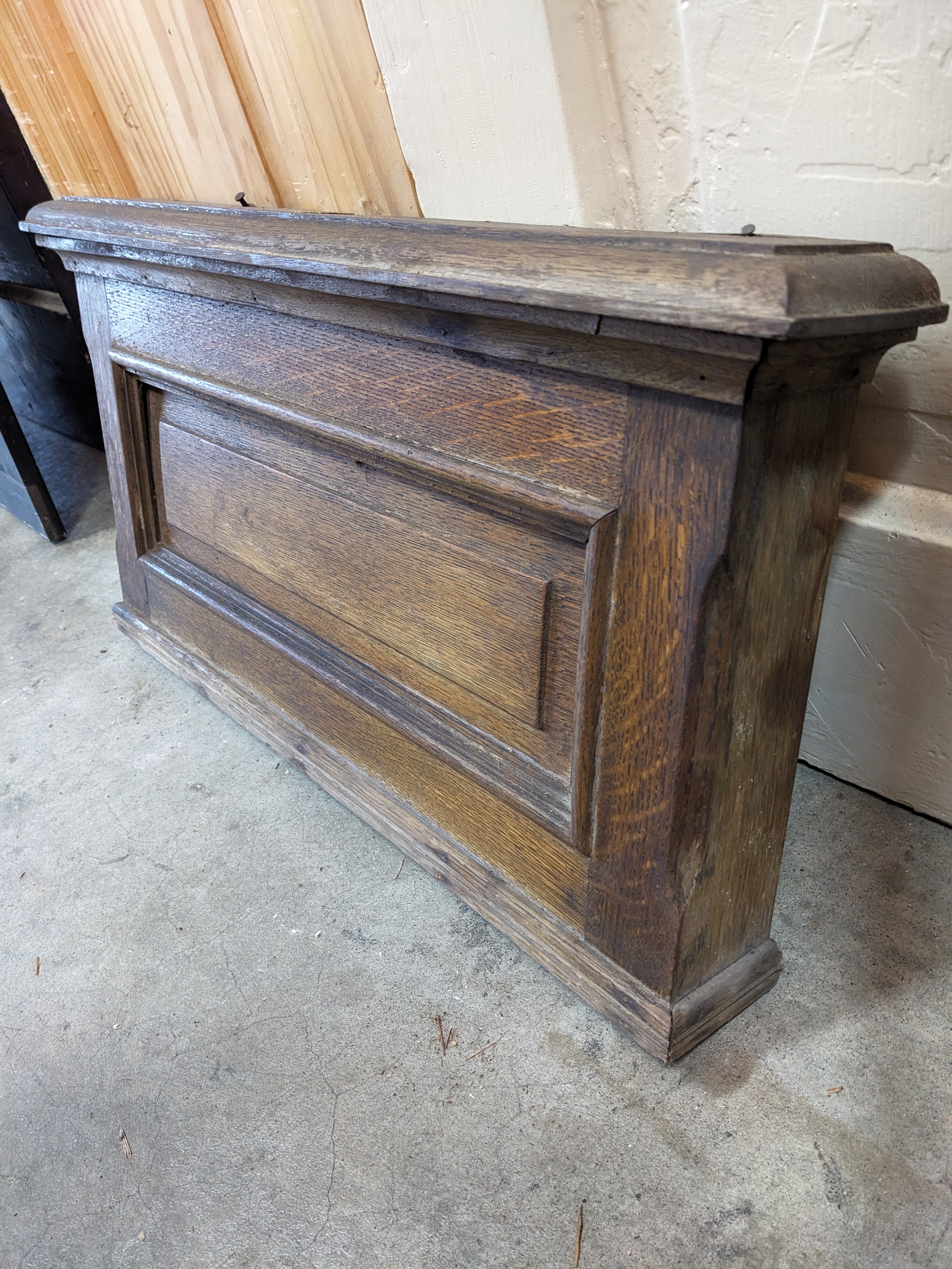 This antique rectangular Pediment likely dates back to the late 1800s. The style and material would be fitting of a turn of the century government office or other building of importance. This piece has some signs of wear reflective of its age. Please note the top and bottom of this item has been notched out for previous installation and there are two protruding nails at the top portion of this item (pictured).