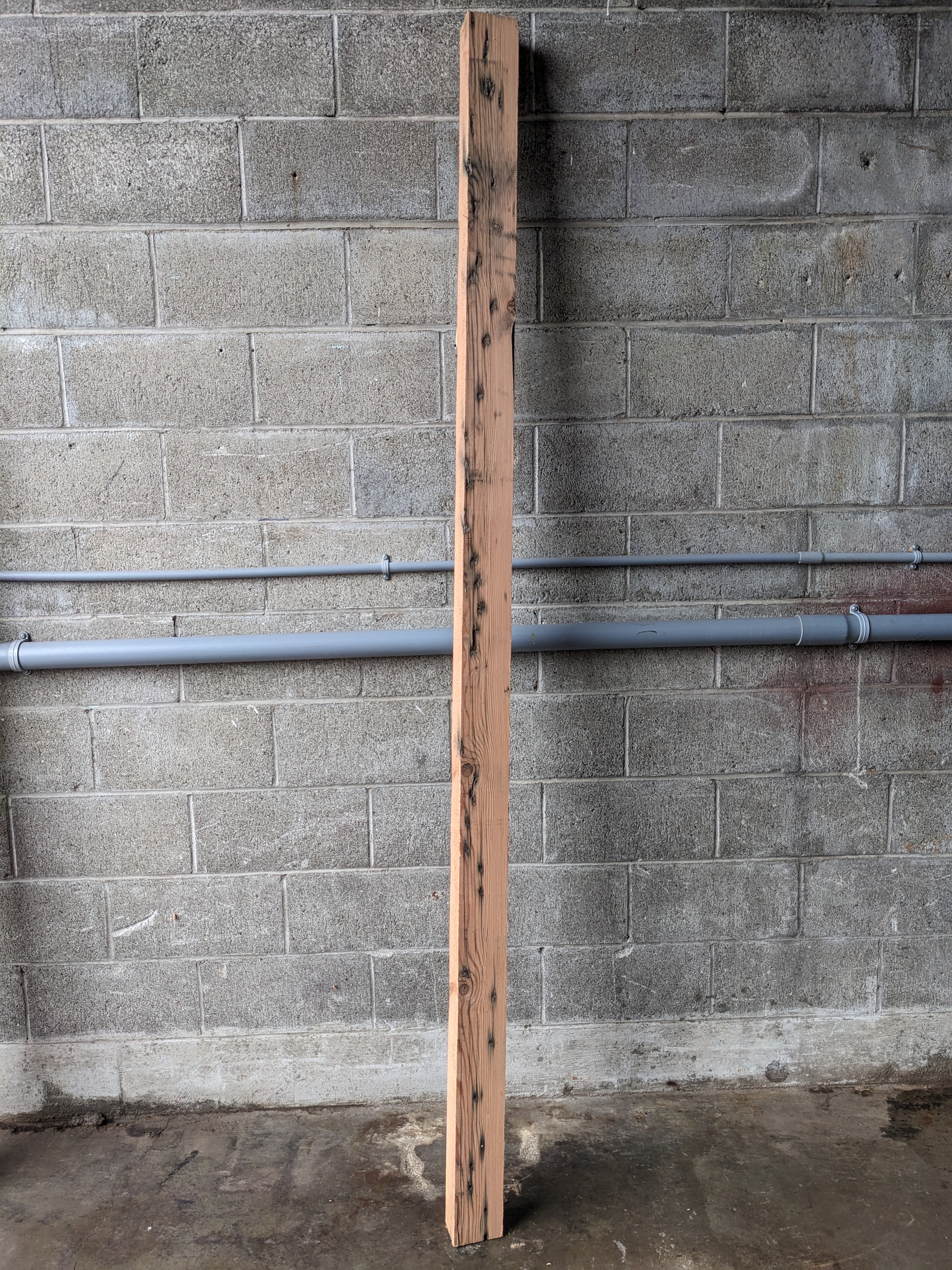 This lumber was locally salvaged and air dried before making it's way to our mill. It's got some knots and some imperfections, but is otherwise solid. It measures 3 x 4.125 x 95.5 inches.