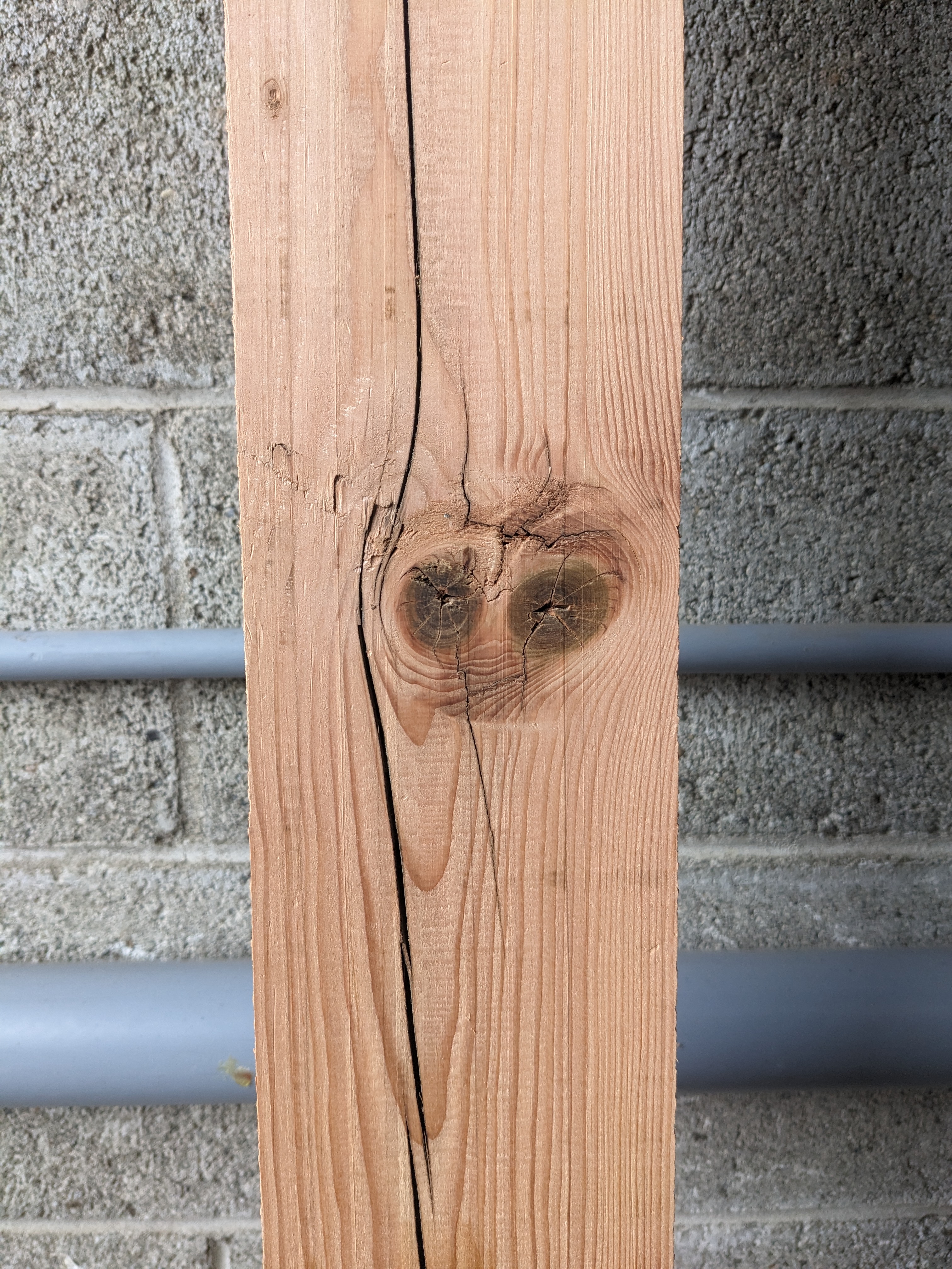 This lumber was locally salvaged and air dried before making it's way to our mill. It's got some knots and a few cracks in the surface of one side, but is otherwise solid. It measures 2.125 x 4 x 92.5 inches.