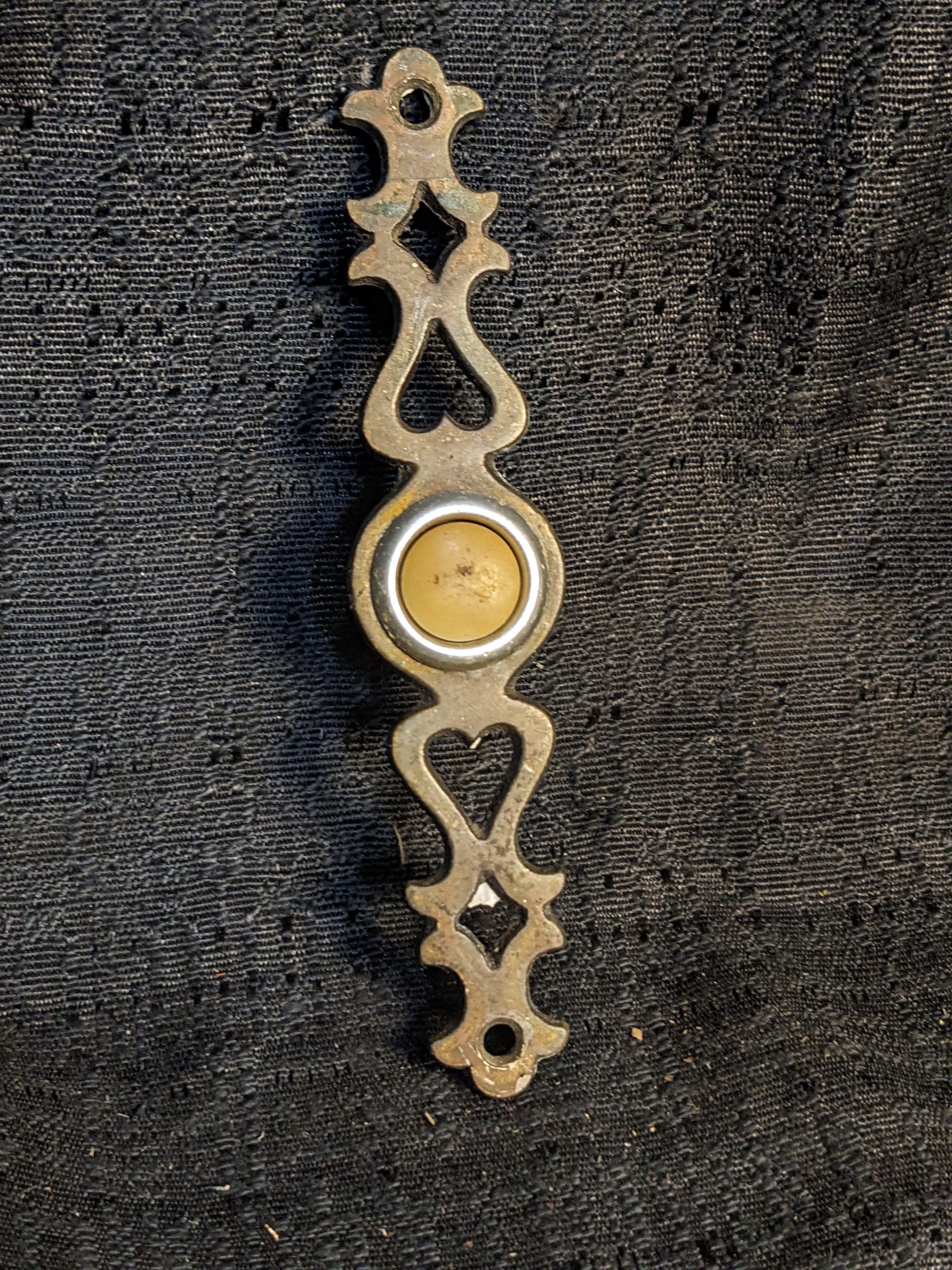 Cast Brass filigree backplate with the buzzer button.