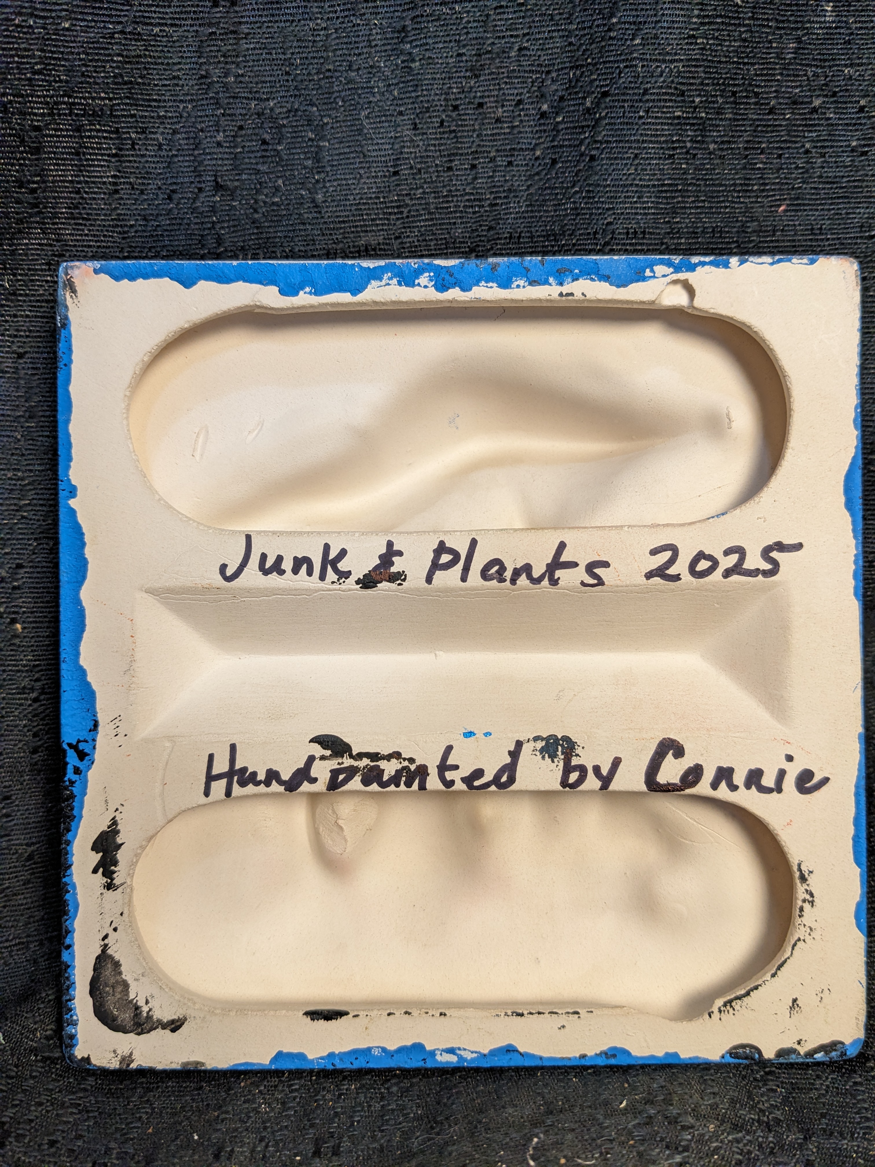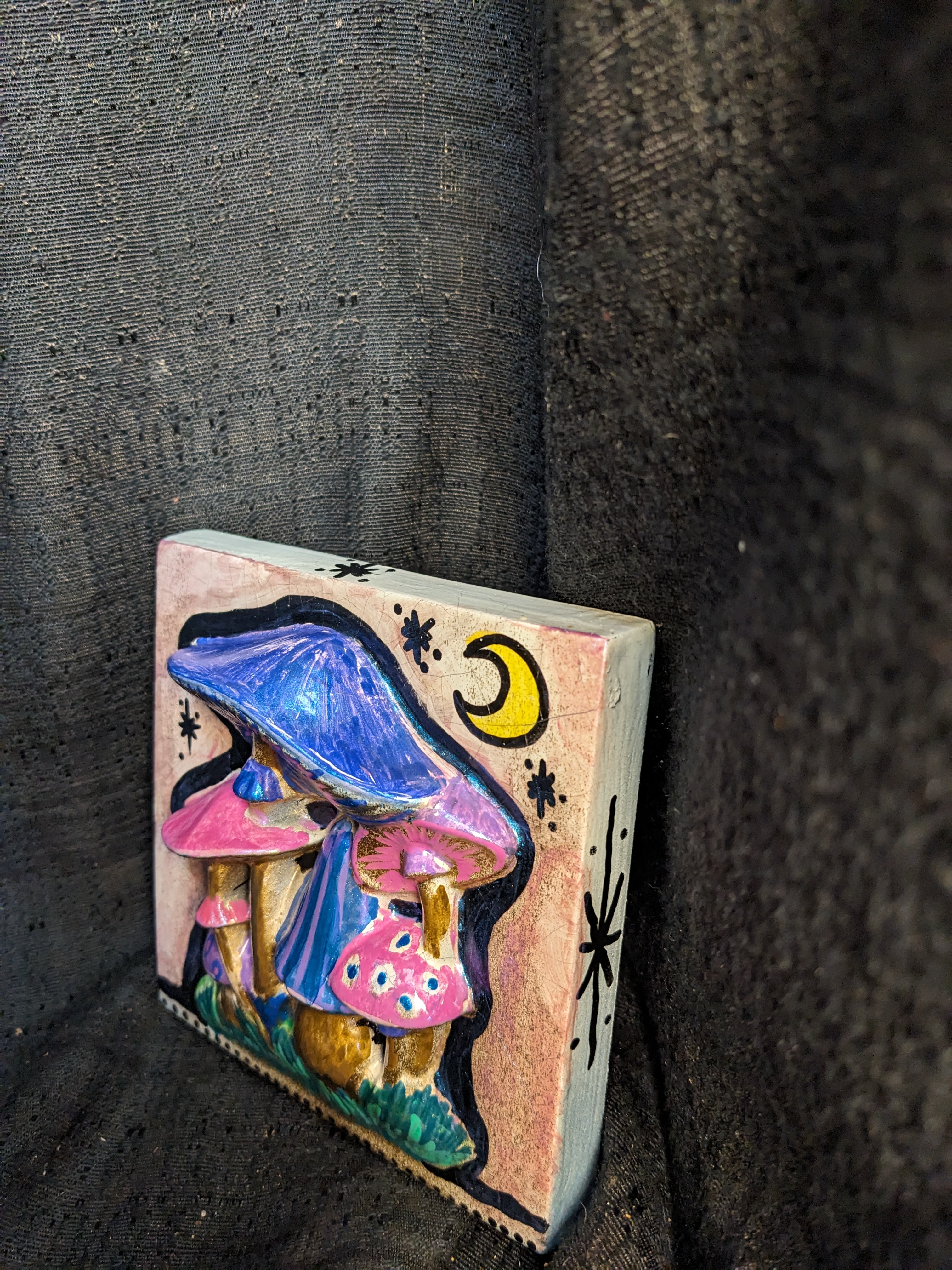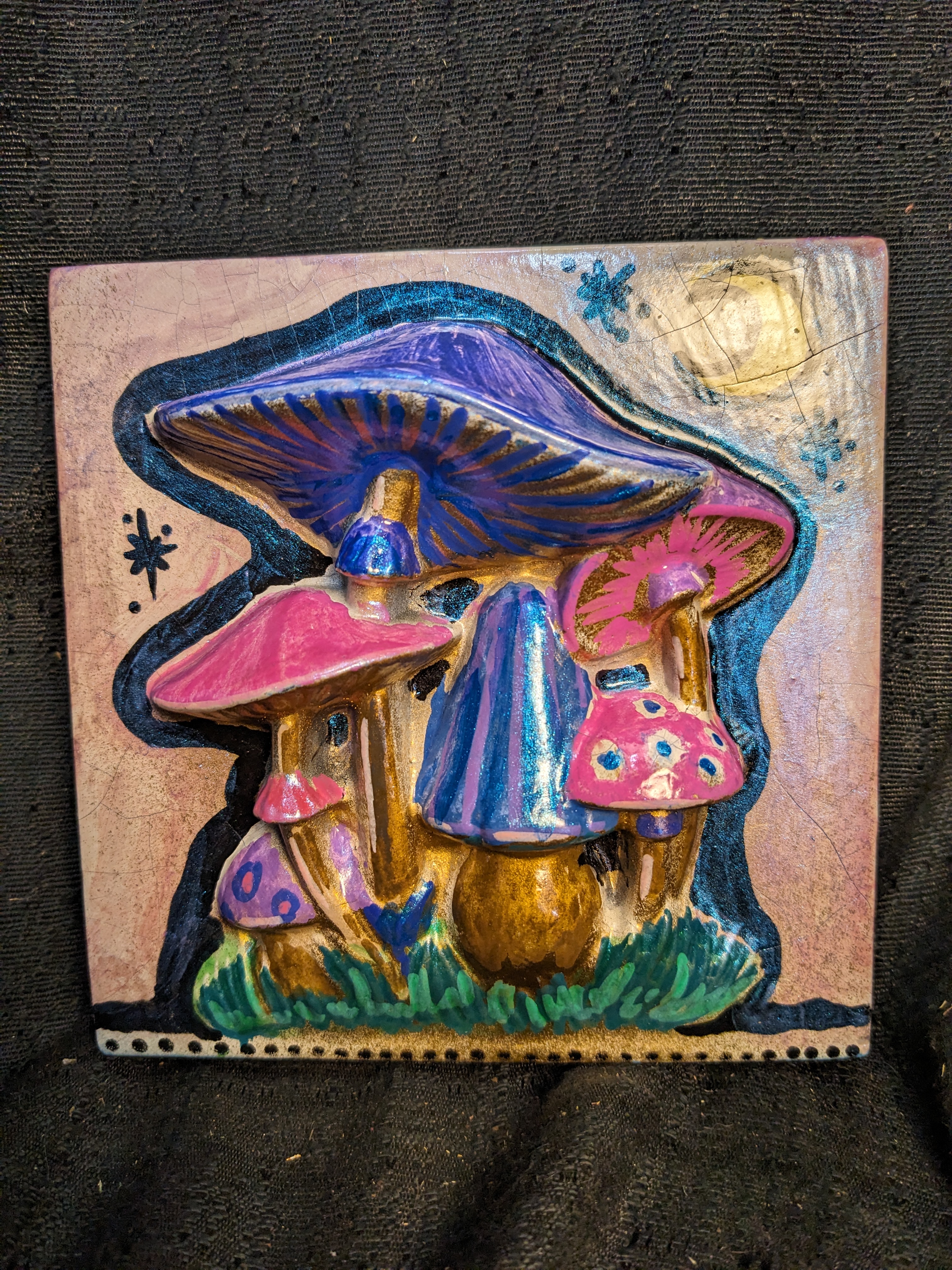 5 x 5 Vintage ceramic tile with hand painted magic midnight mushrooms.
