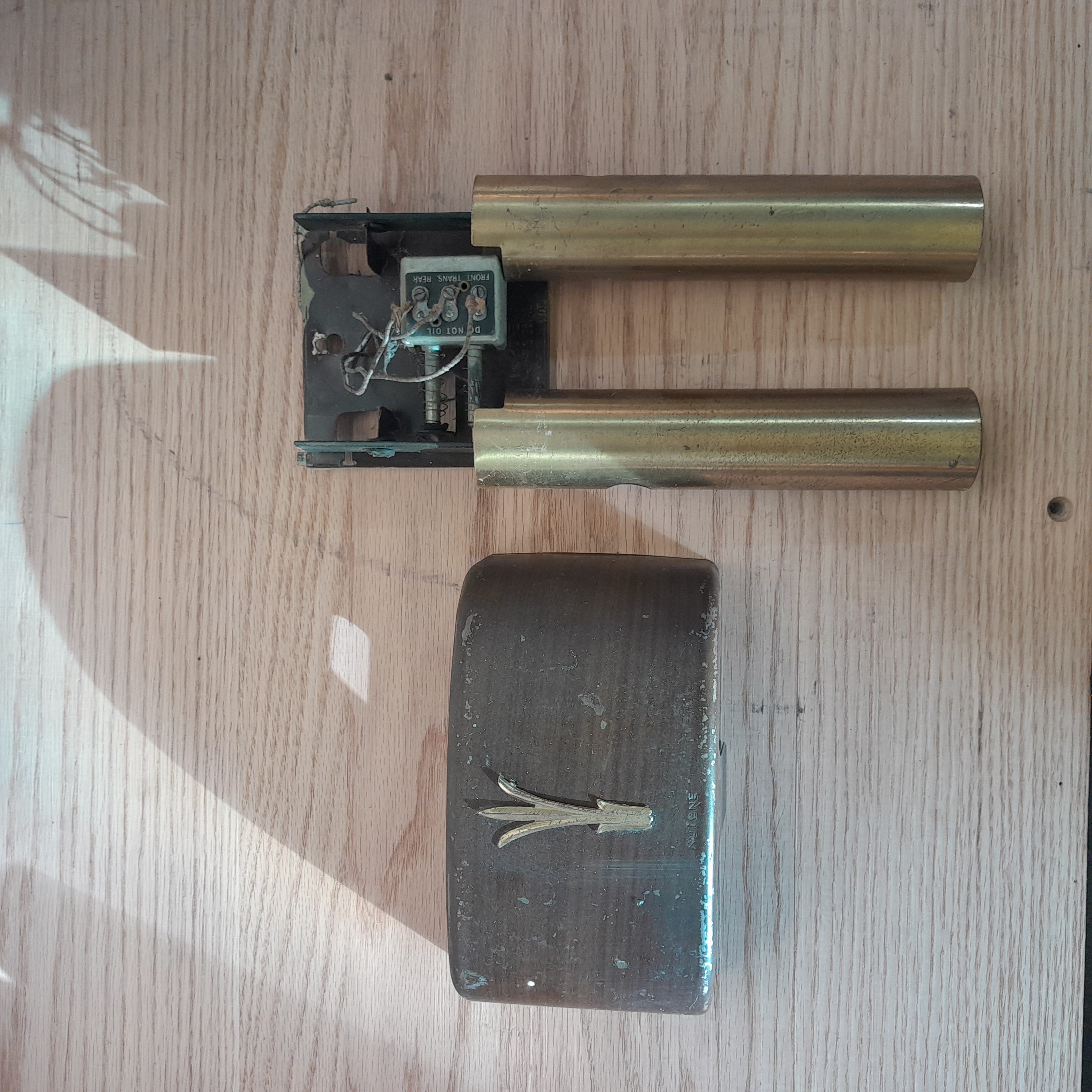 Who needs a Ring doorbell when you can install this? Comes with cover and chimes. Wires could be replaced, they are fairly dated. Some wear and use on the actual chimes but that can be cleaned up or add character.