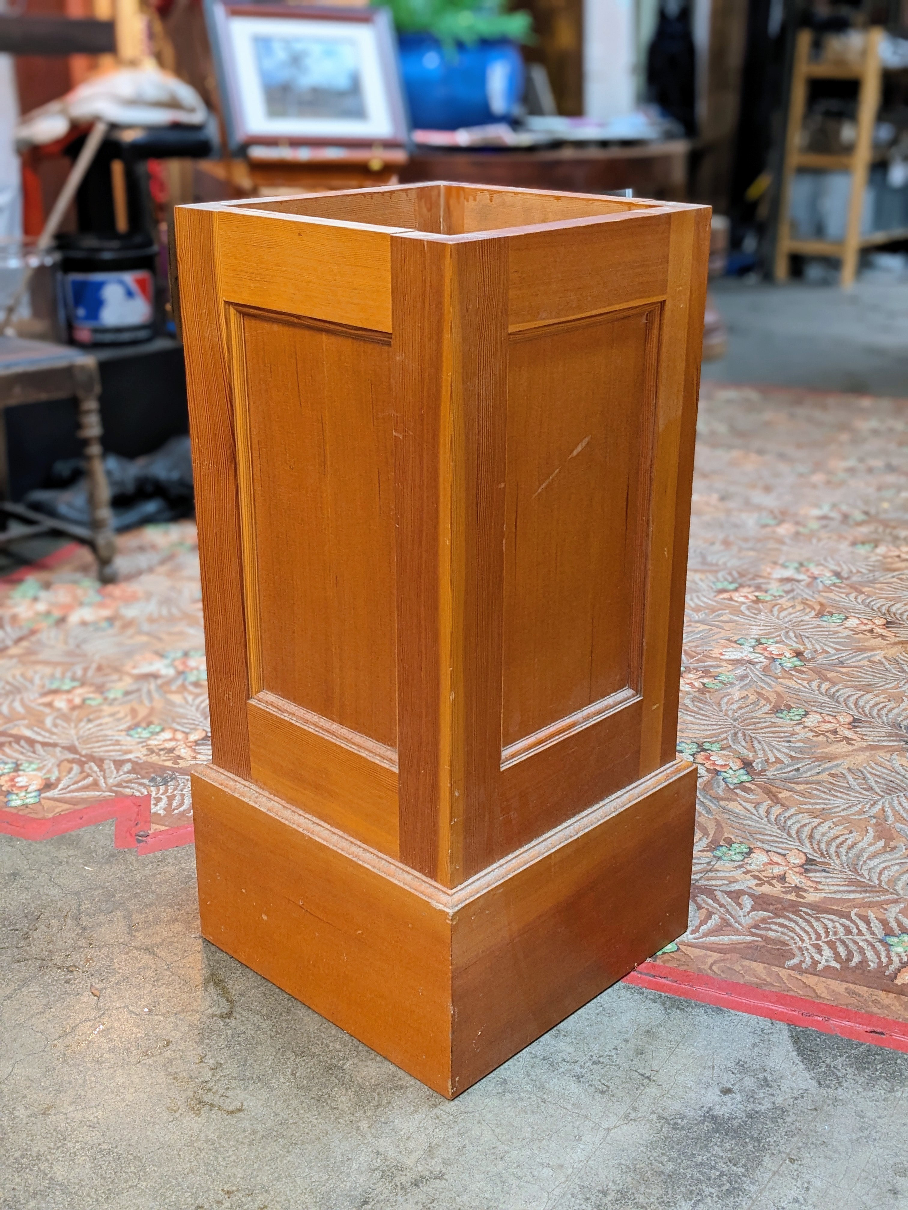 This well made column base is perfectly sized to double as an attractive pedestal for a work of art, or the start to a table project. Or maybe use as intended.