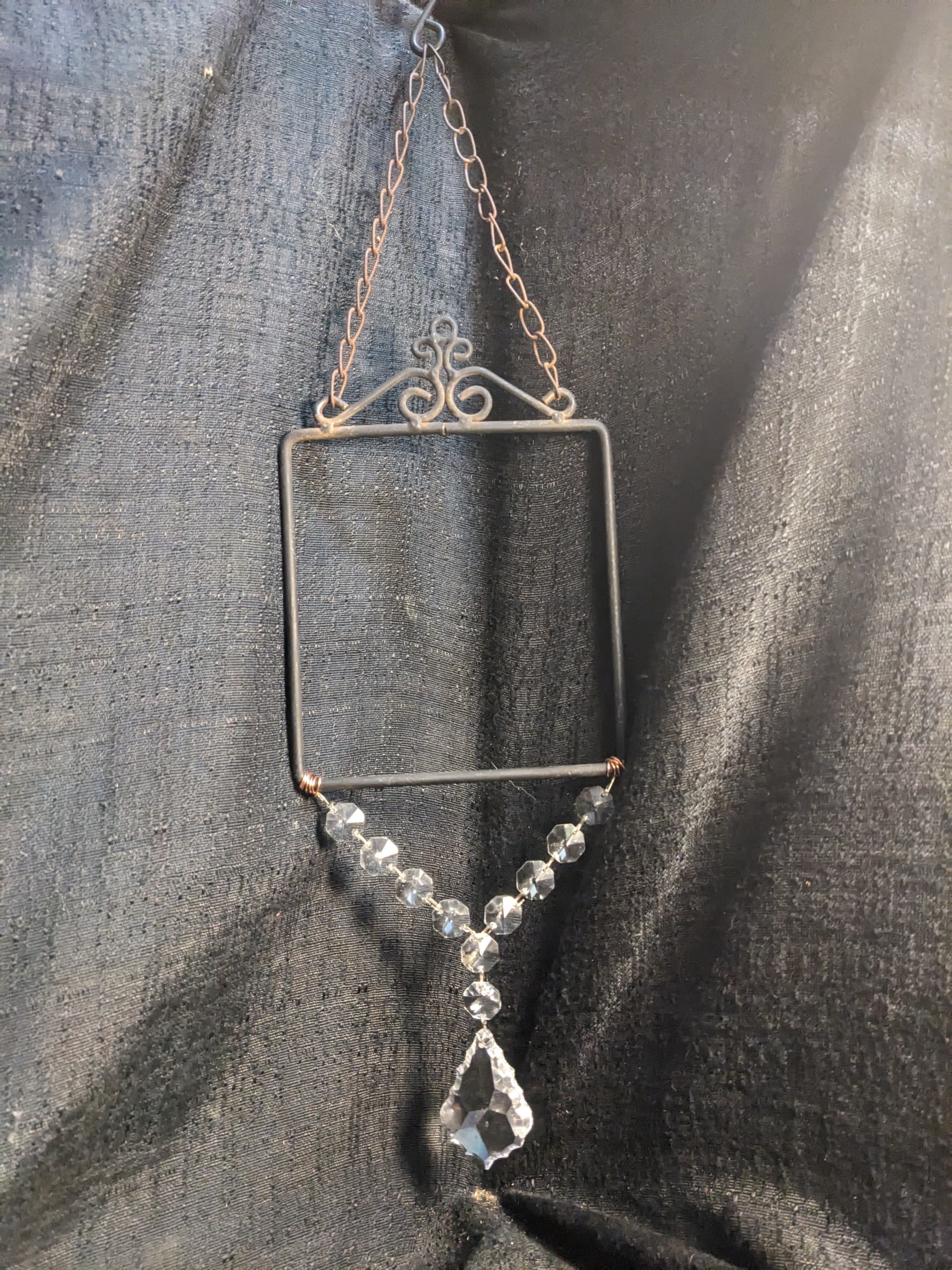 This magical window jewelry measures 18 x 5. Handmade upcycle craft made by Connie.