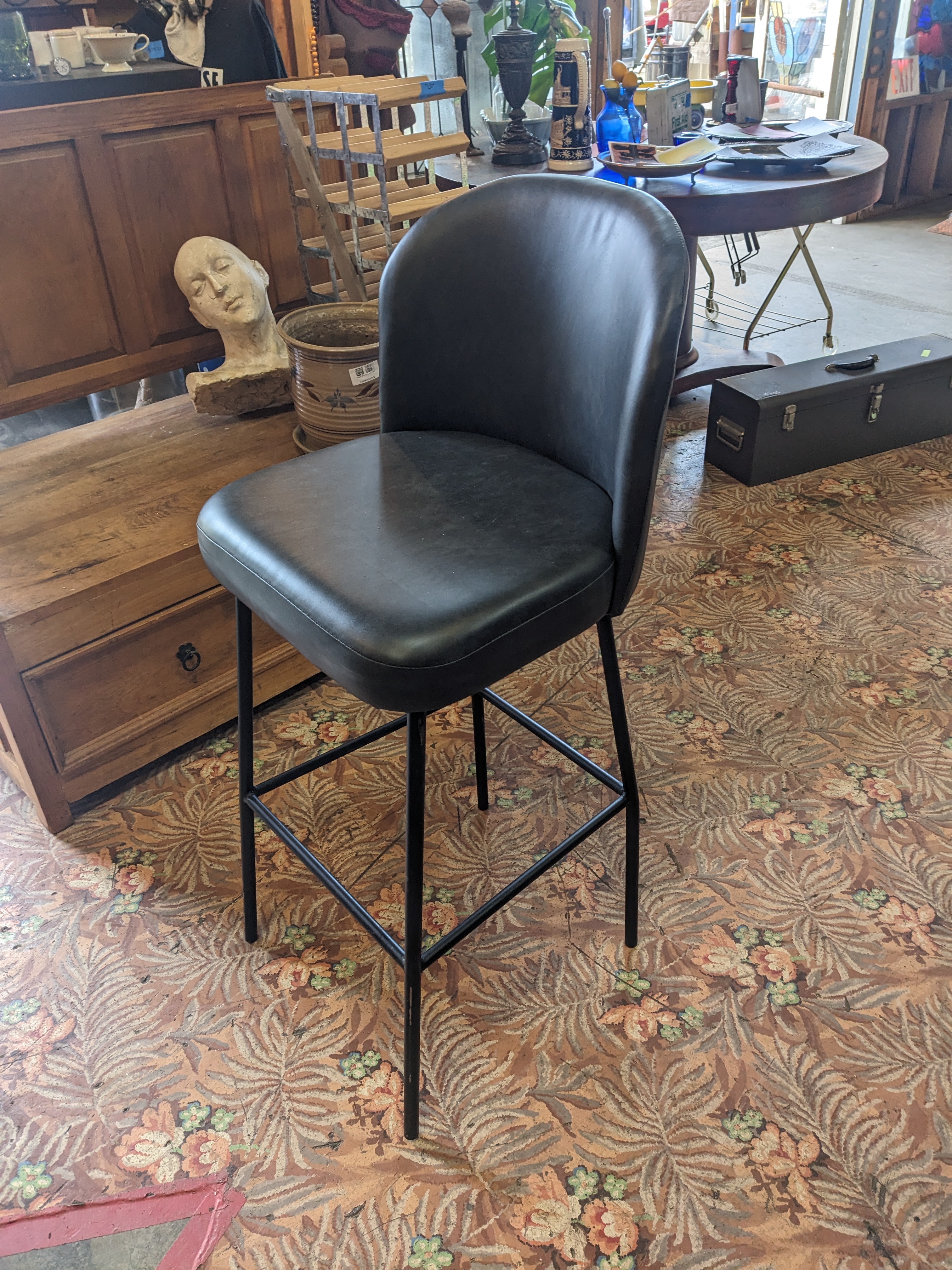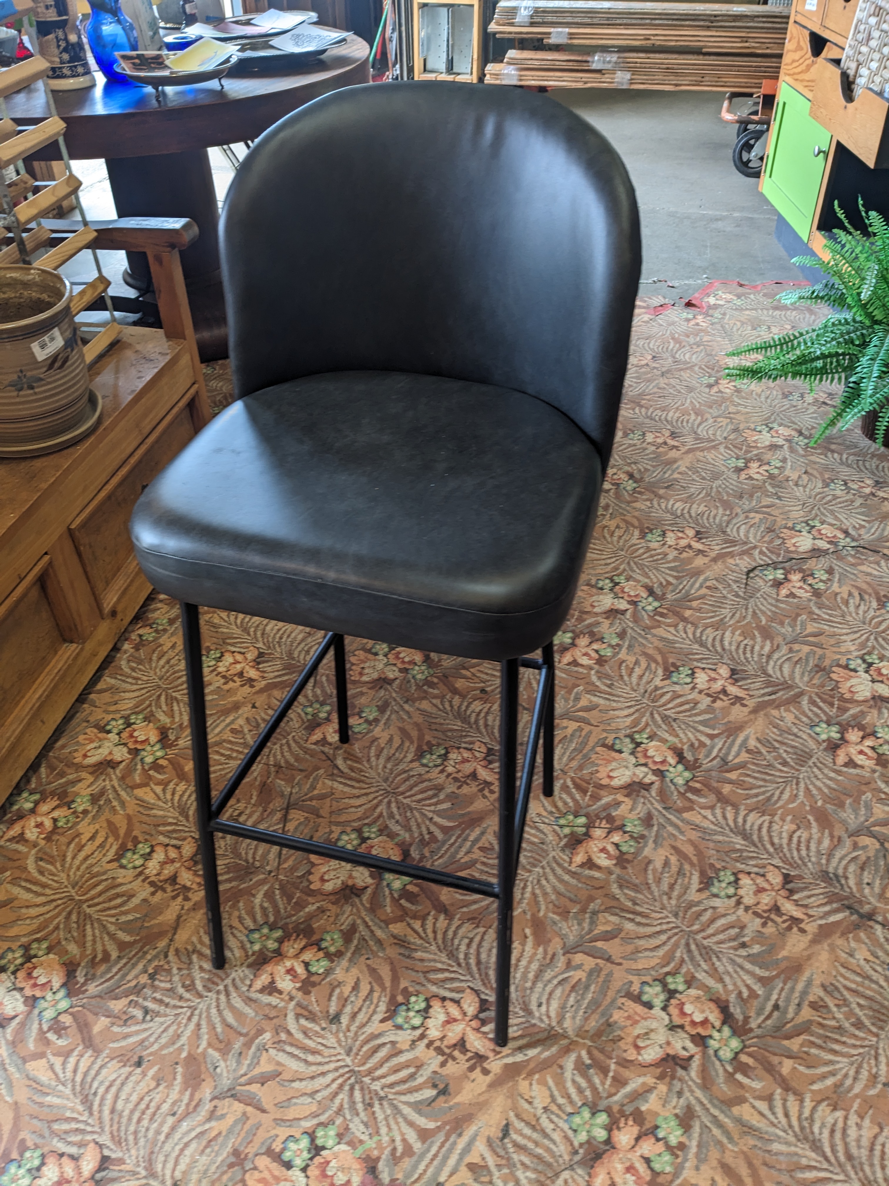 A cute and simple chair, perfect for bar or kitchen island height. In good condition no cracks or tears on the fabric. Great for a variety of settings.