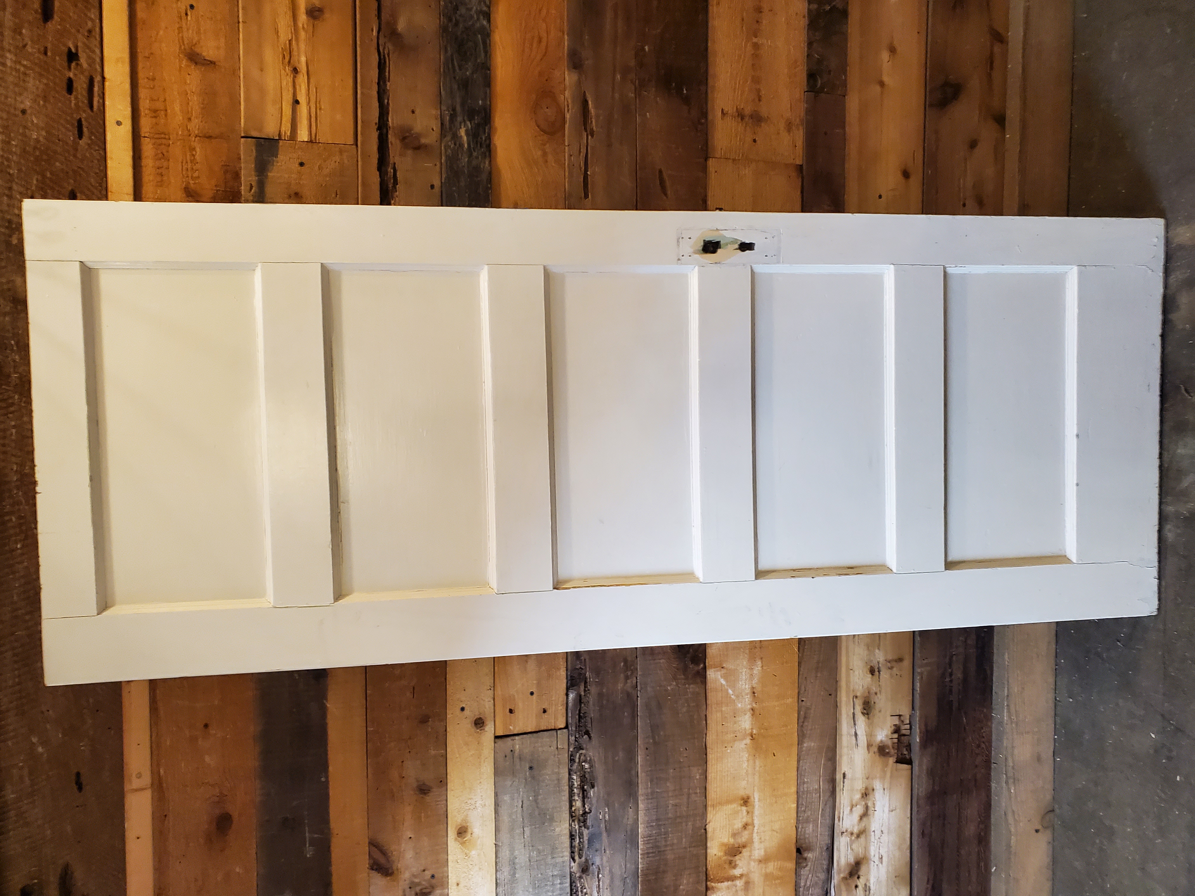 This left swing interior door is in good condition but is heavily painted.