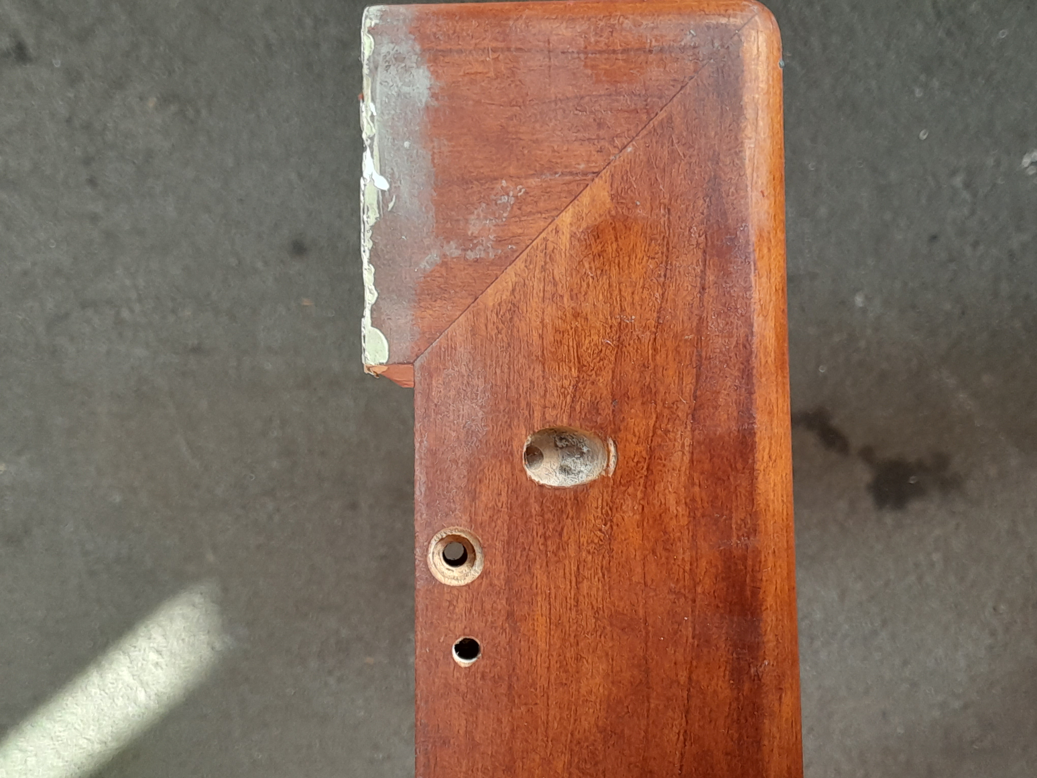 Perfect for little knickknacks or trinkets, maybe some artwork. Some left over plaster, or adhesive from it being previously installed. Predrilled holes make it easy to reinstall.