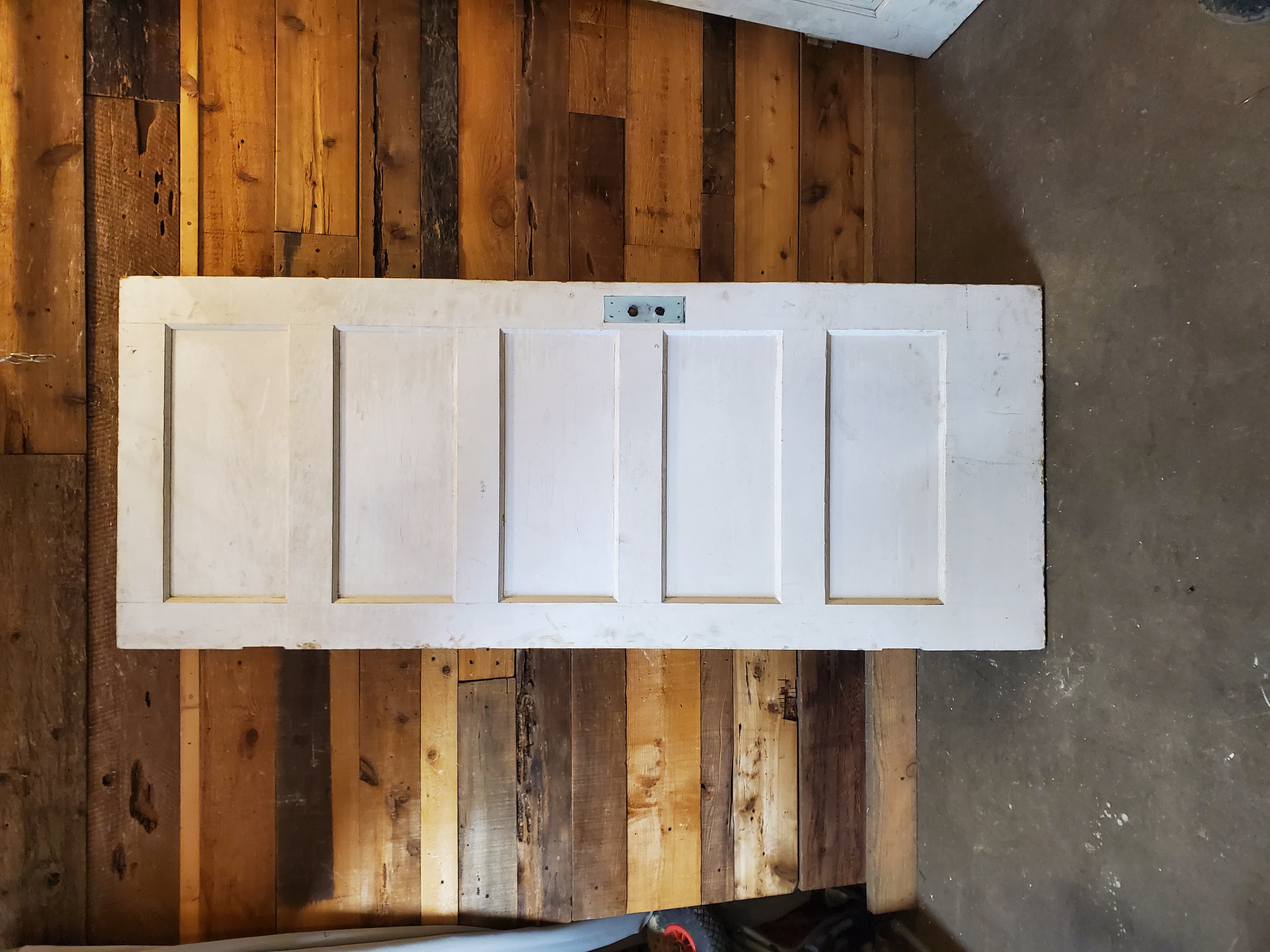 Heavily painted 5 panel door. Right swing. Comes with free peanut butter sticker.