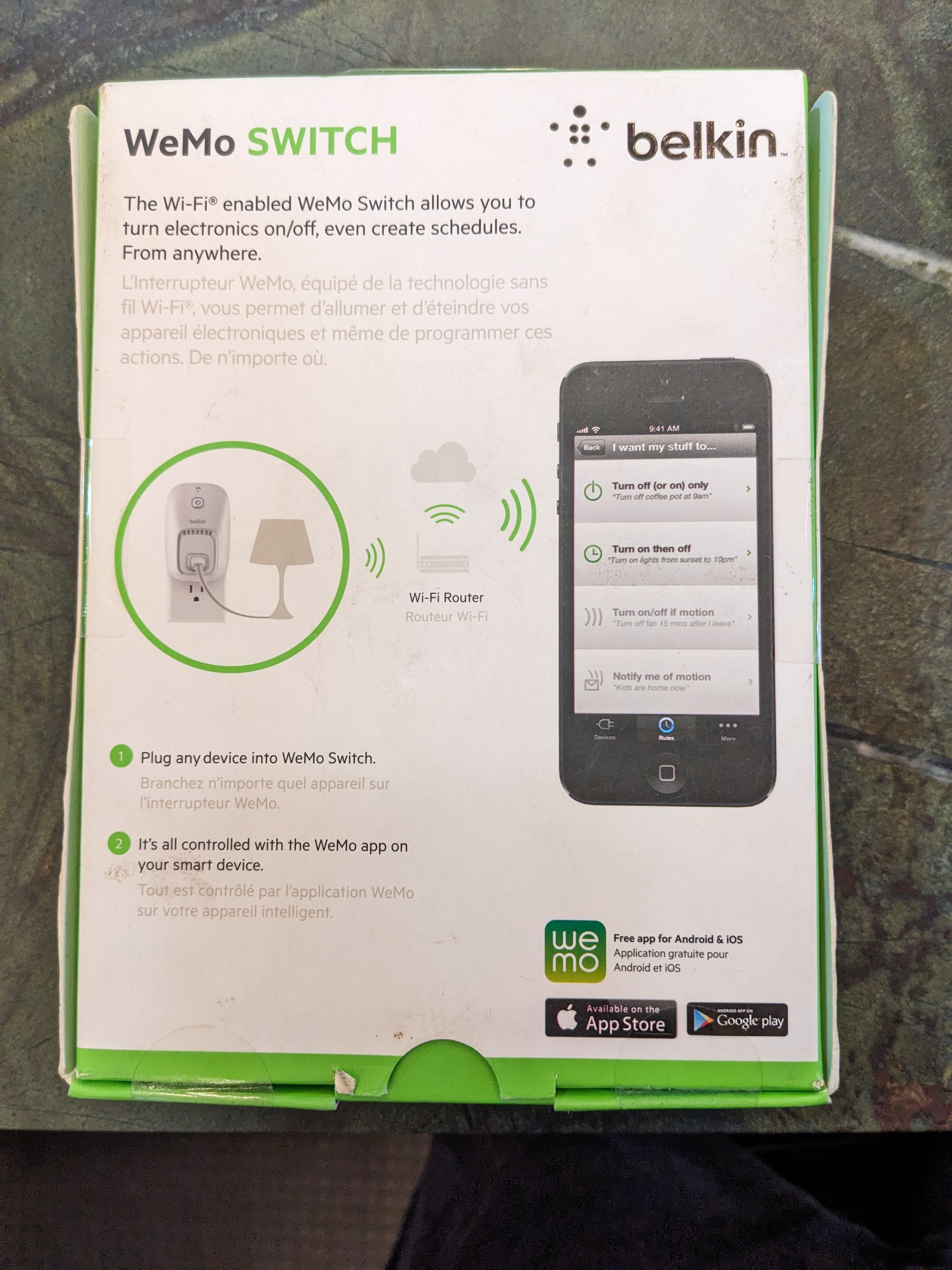 Turn electronics on and off from anywhere! Think greener. Think cleaner. Box unopened. Version VA01. Electrical Rating: 120V/15A/60Hz/1800W