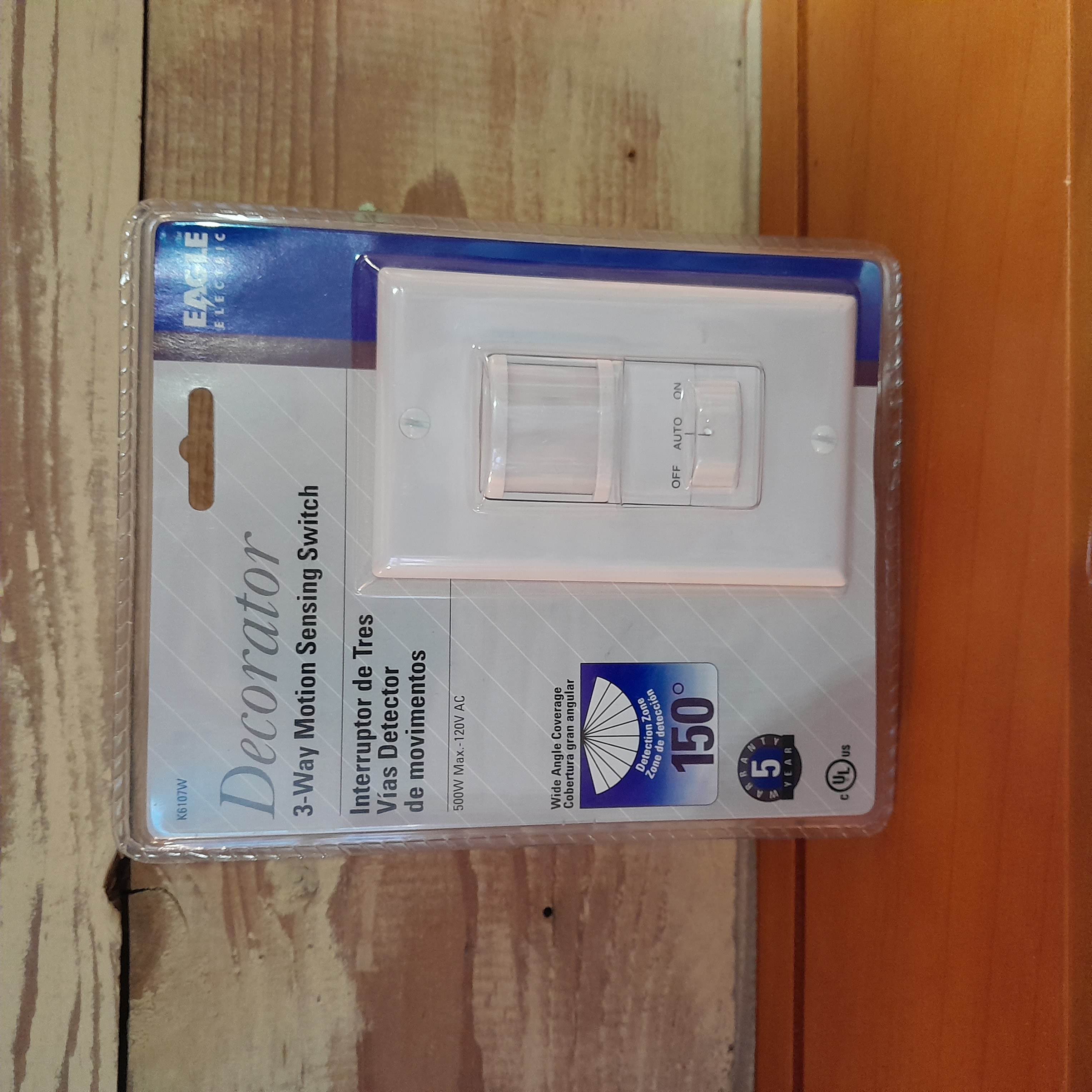 New in original packaging. Has 150 degrees of detection zone. Perfect for hallways or rooms where 2 wall switches control a light. Lights automatically turn on when you enter a dark room.