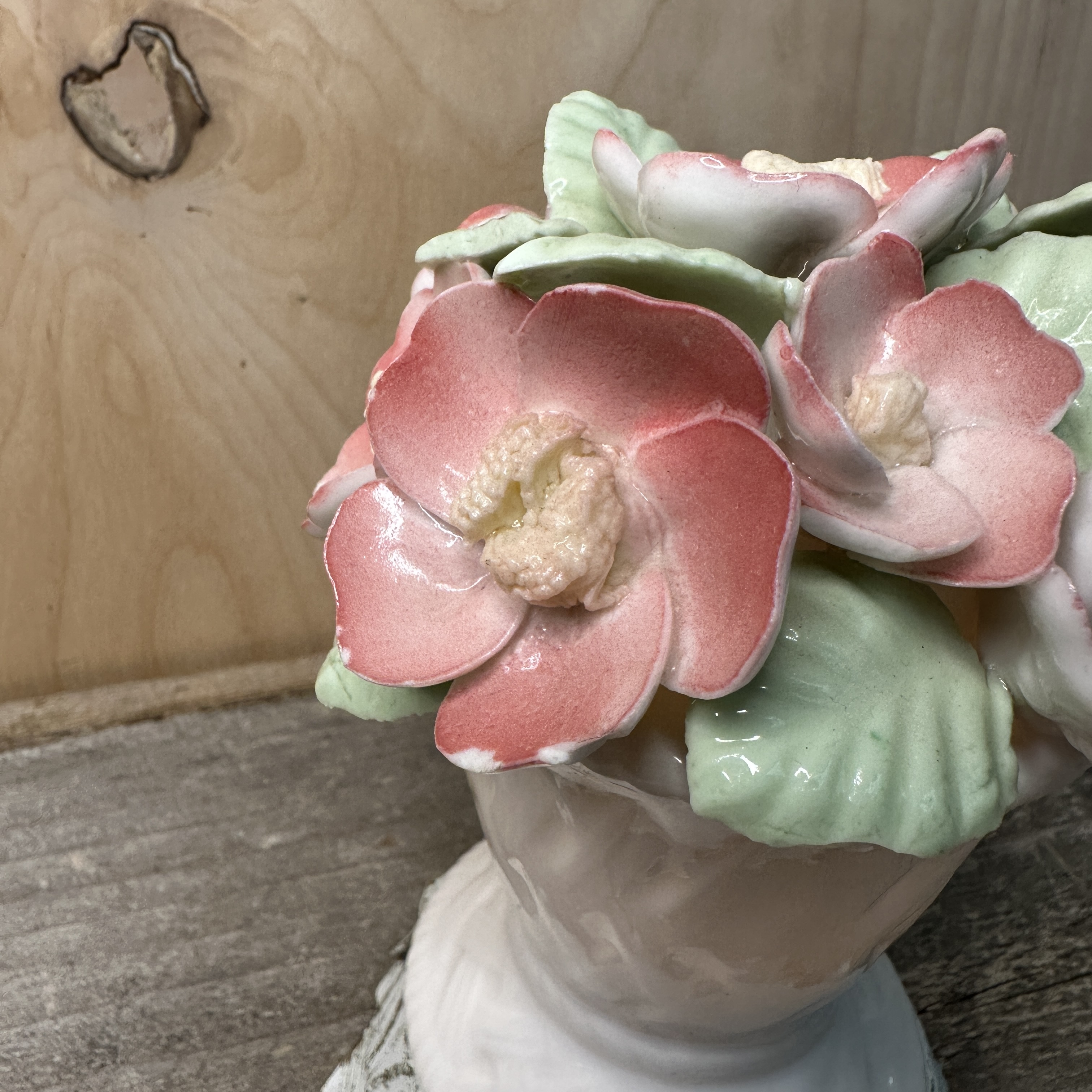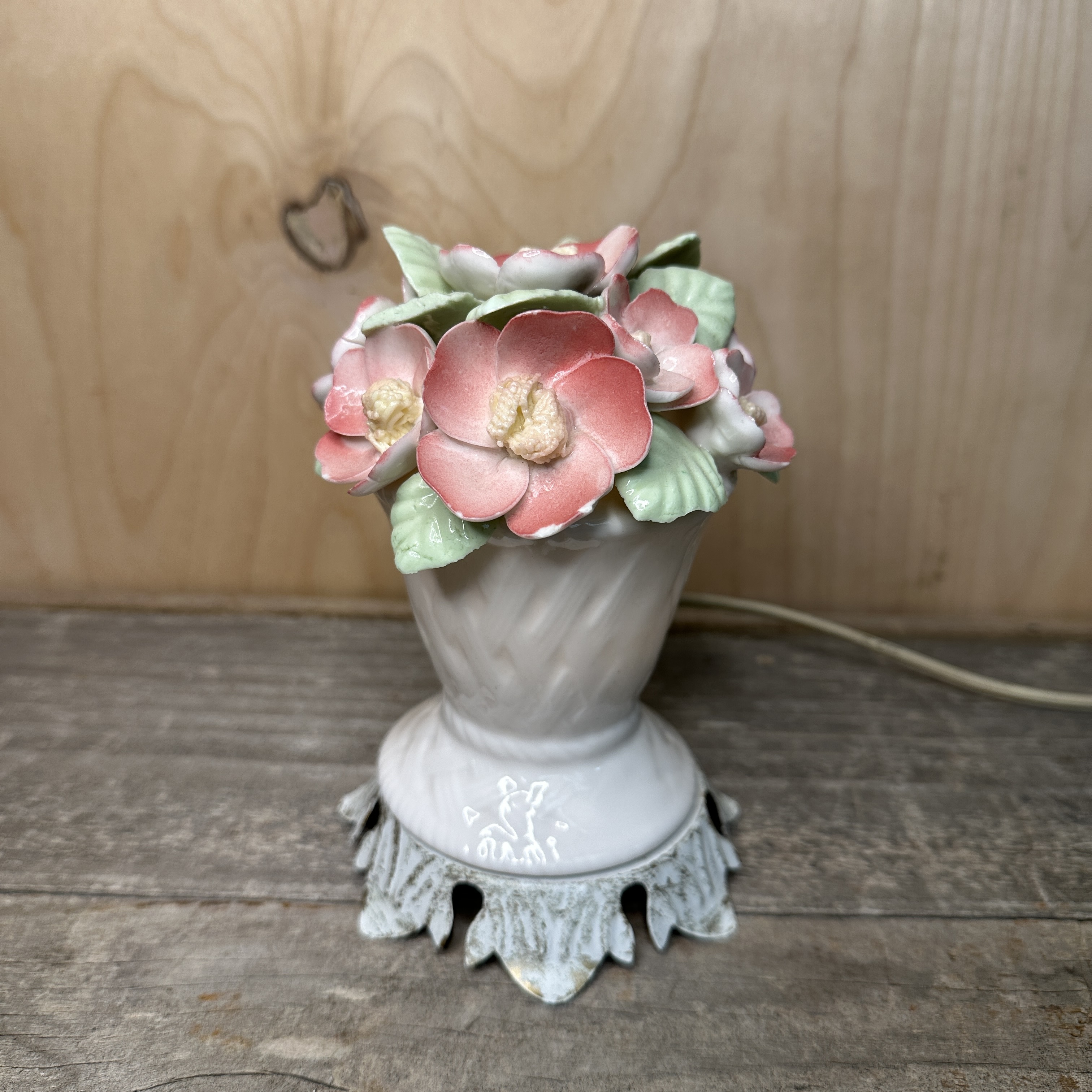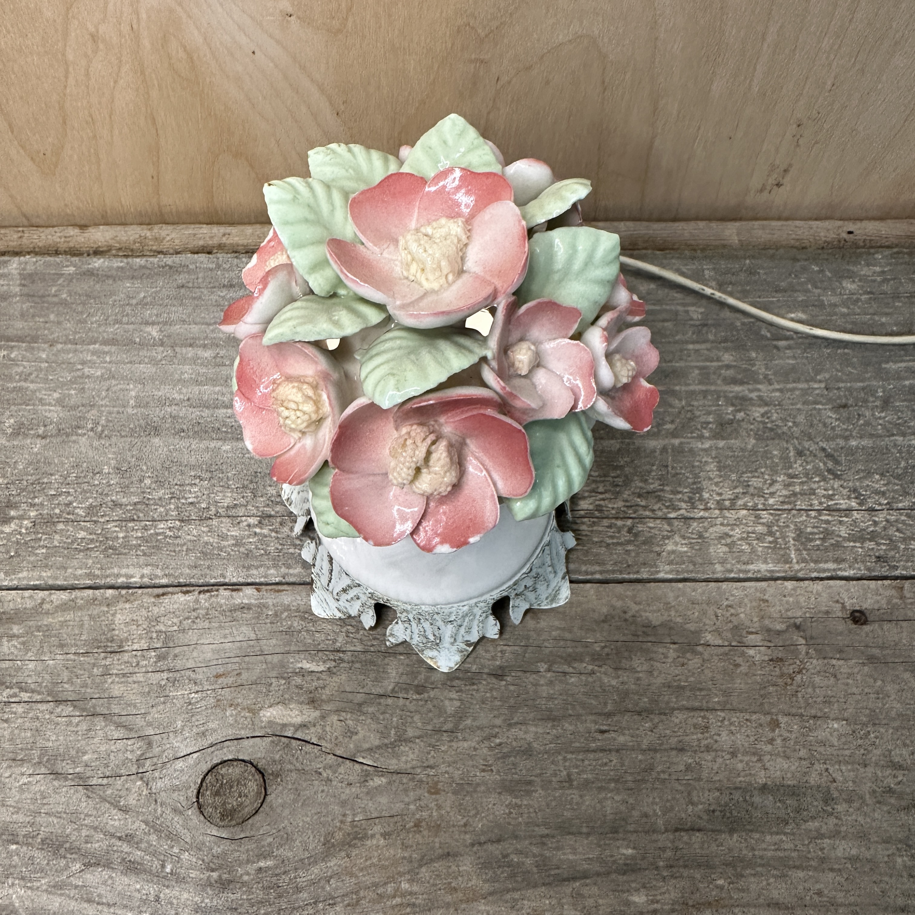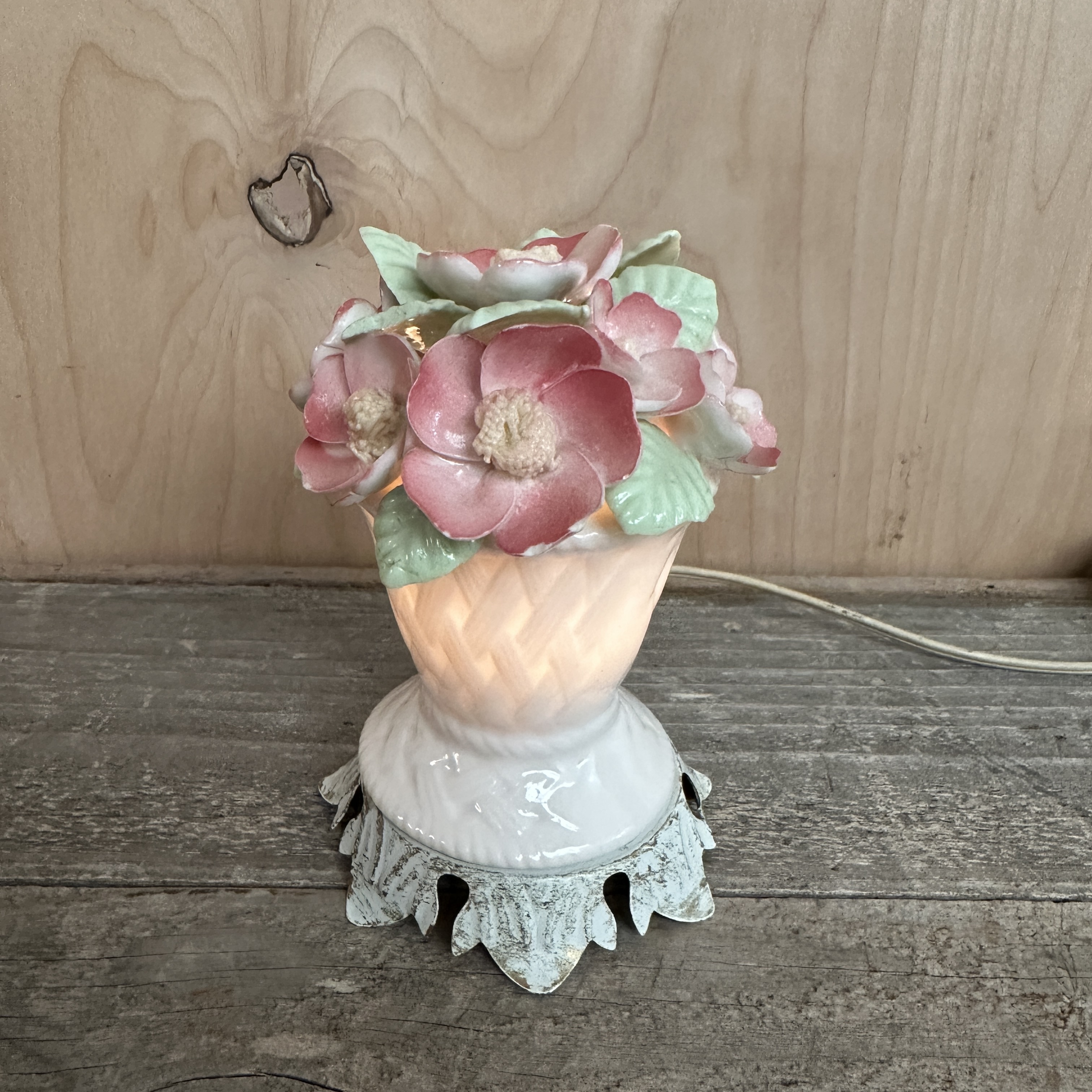 Vintage little glass basket and pink bouquet night light. Some petals have chips on the ends, but no broken petals.