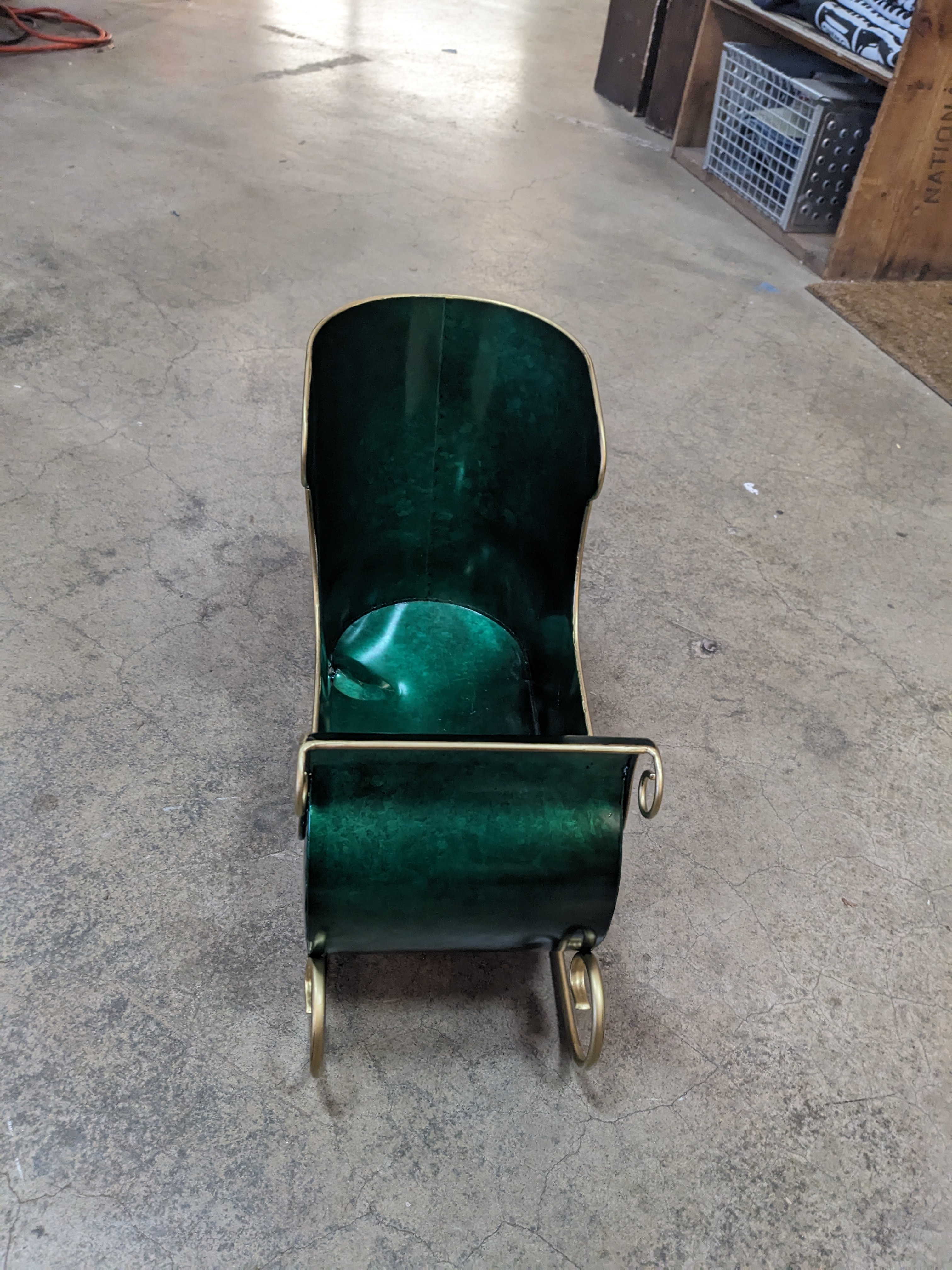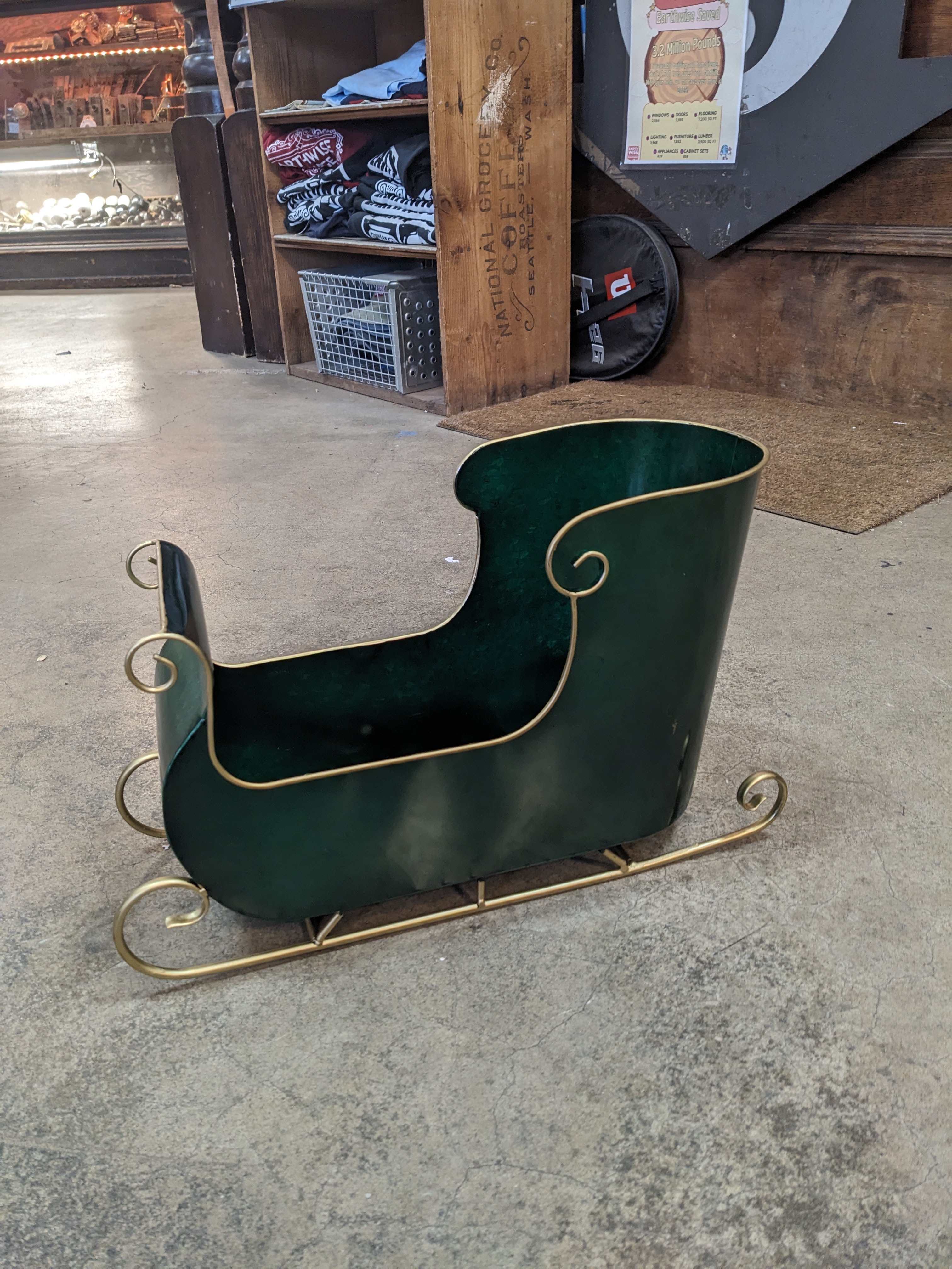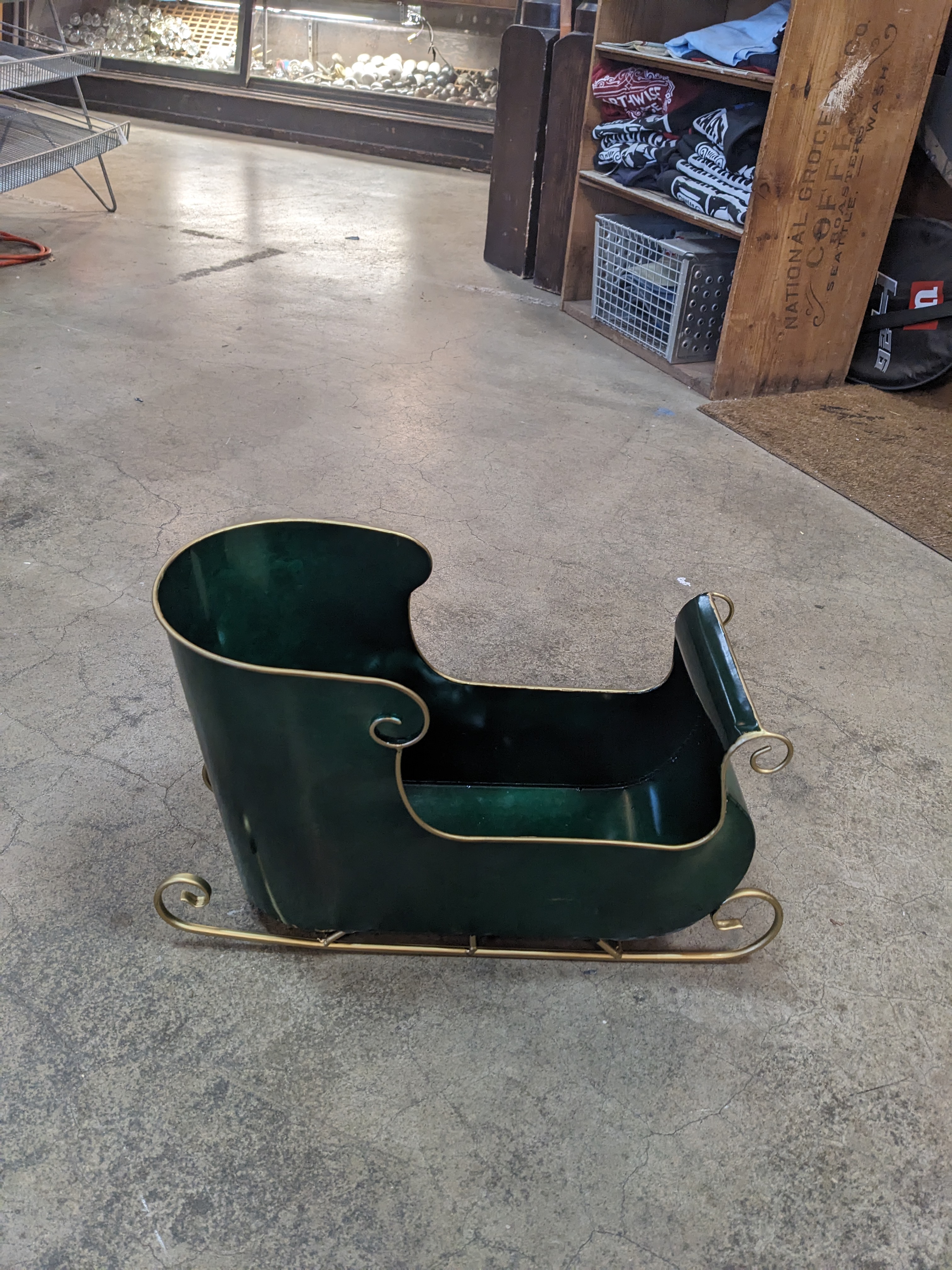 A cute little metal sleigh, perfect for next year's holiday decoration, or maybe you can put flowers or trinkets in it. The world is your oyster.