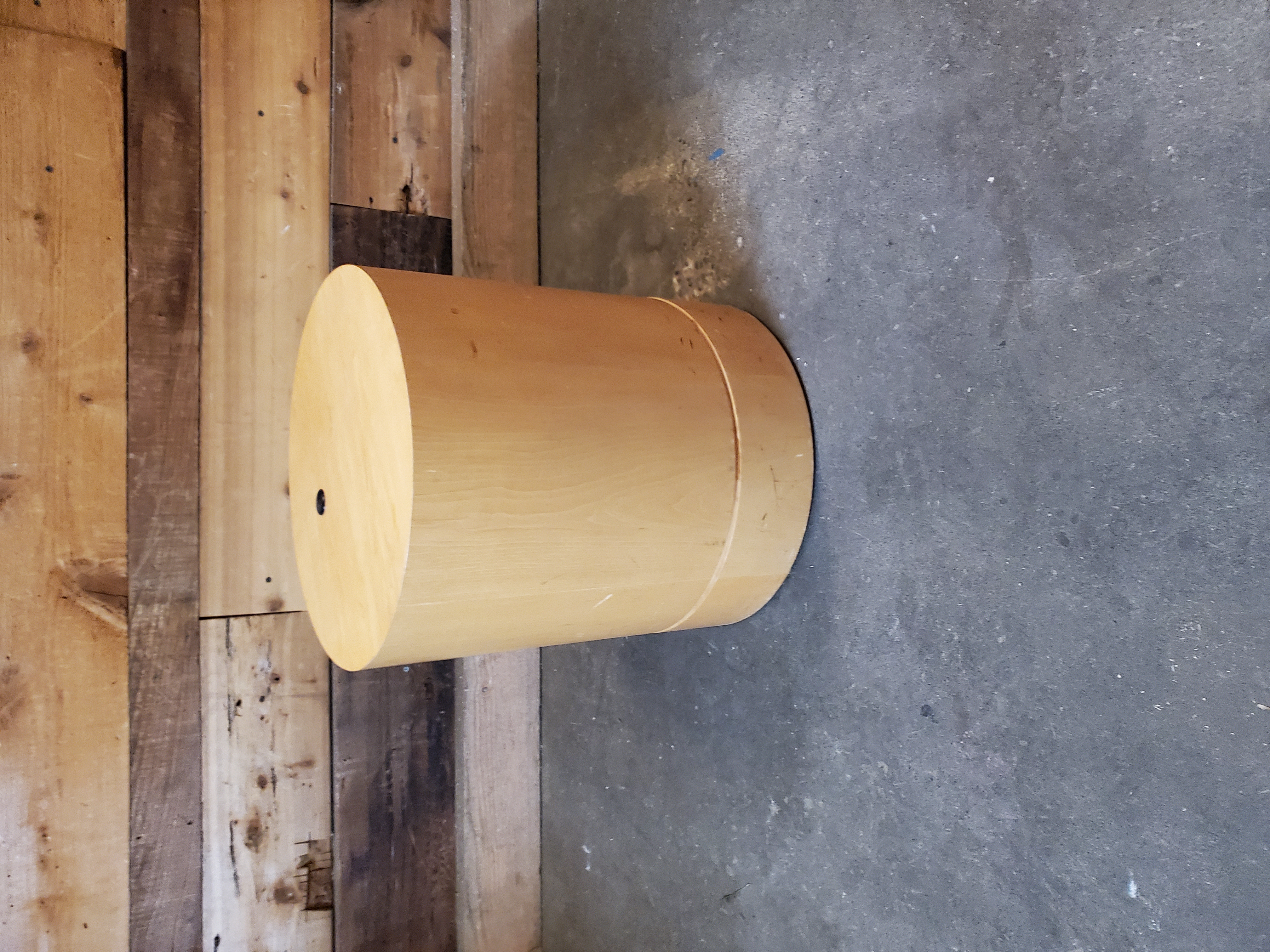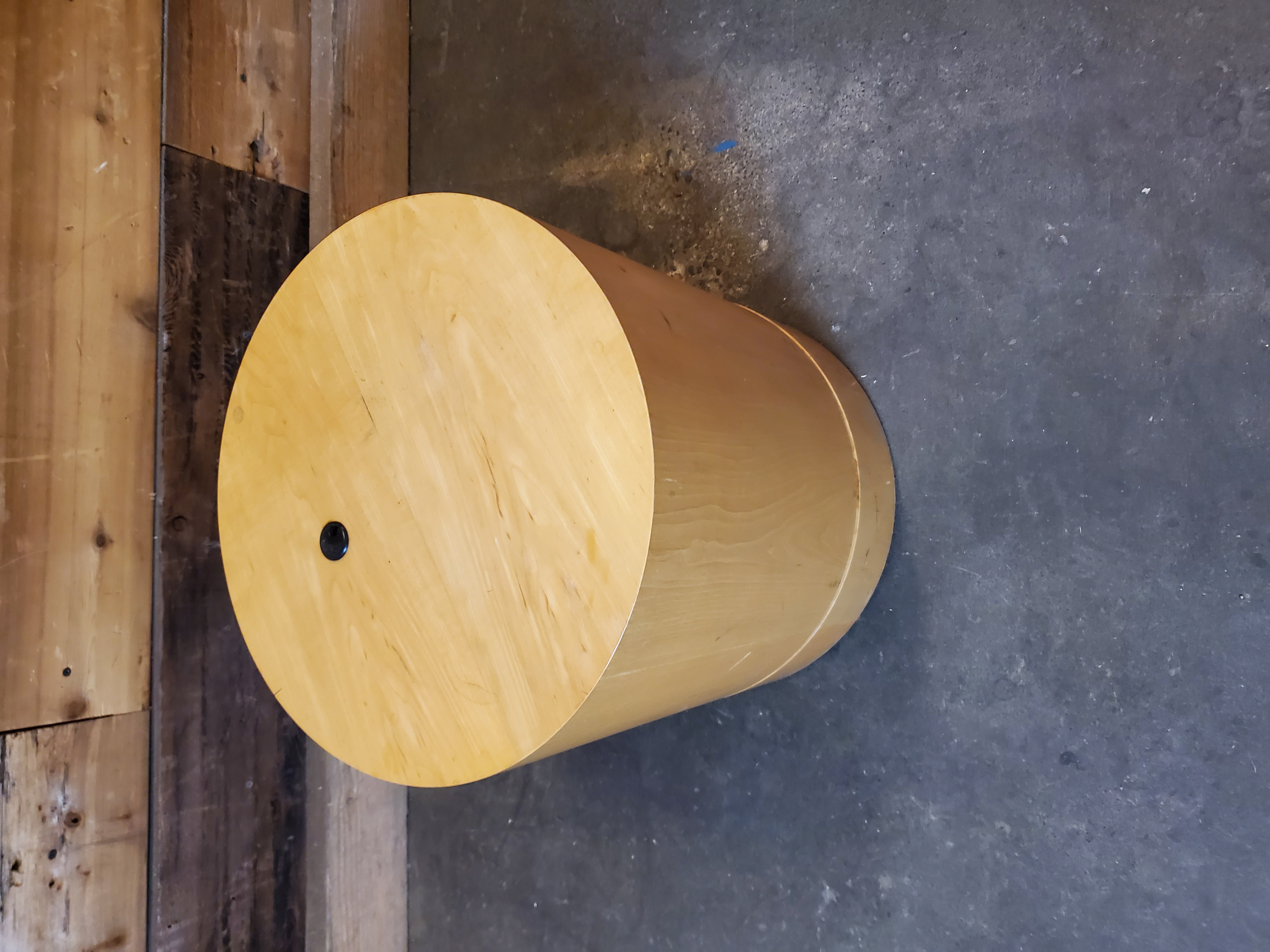 This maple round side table is in great condition. It is hollow and has a spot to feed cords through on the top making it the perfect side table for your friend that hates visible cords.
