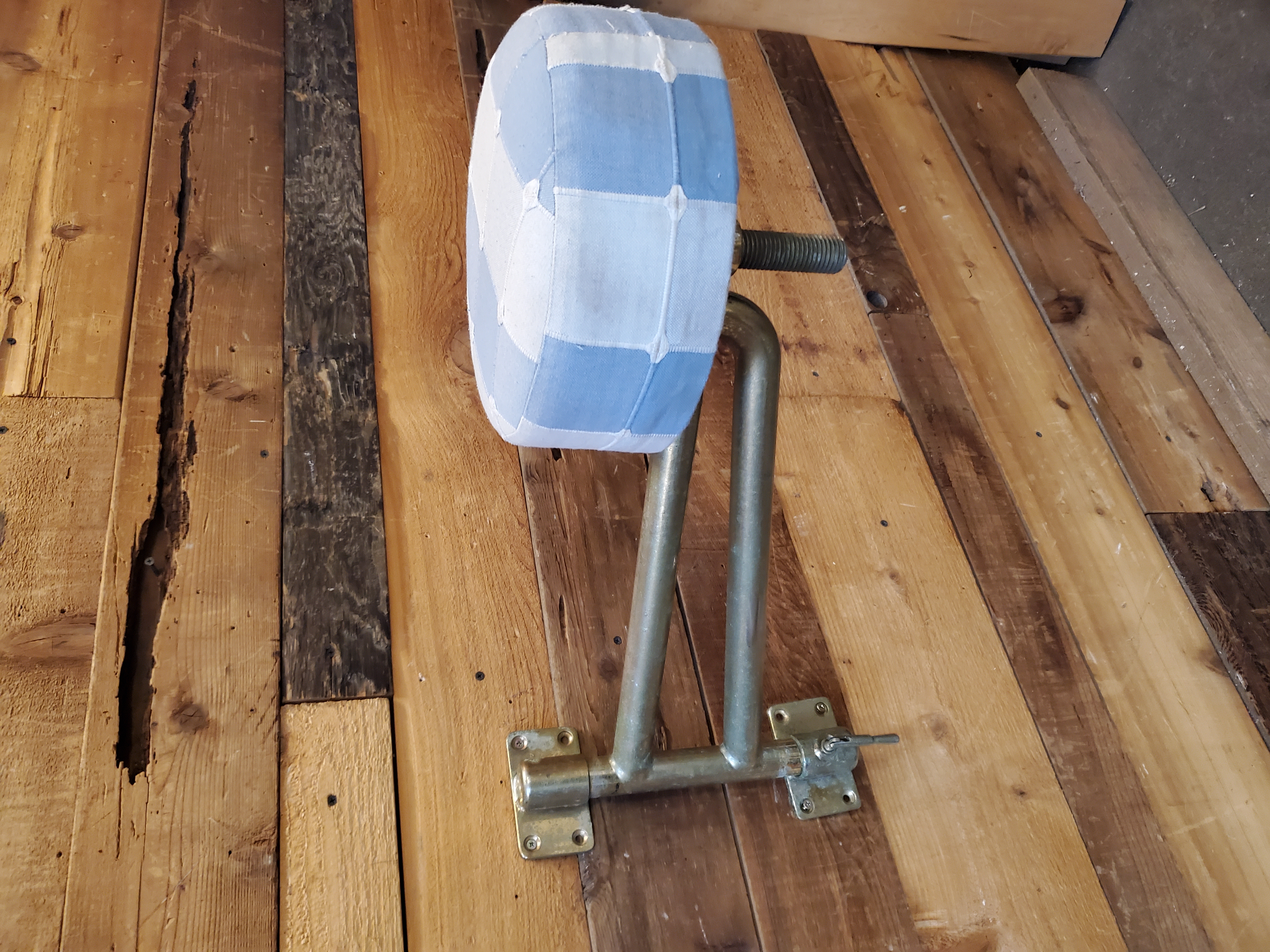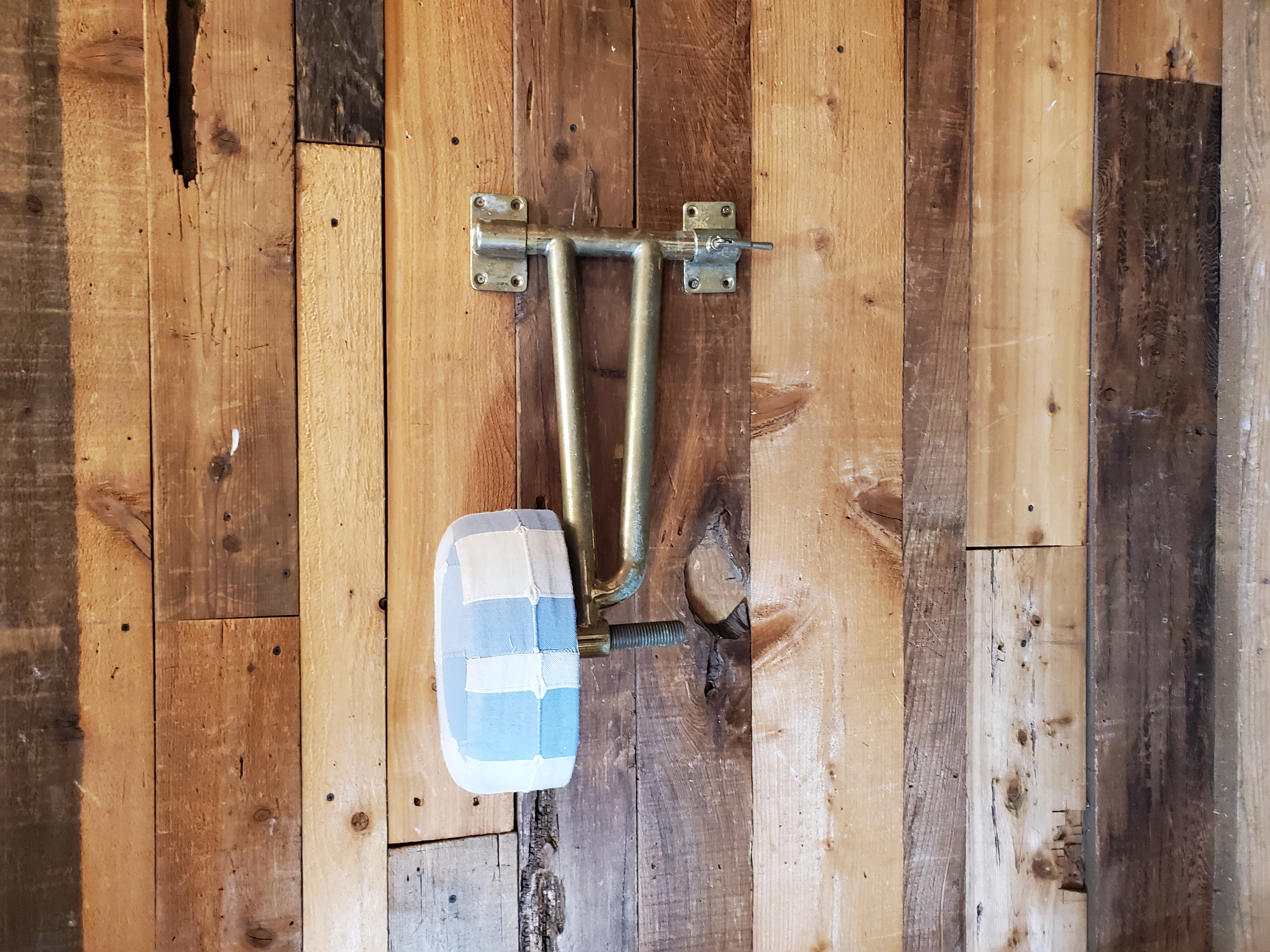 This vintage bar-stool is incredible. It is made out of brass and has a beautiful blue seat cushion. It is in great condition and would make a fantastic addition to any kitchen or work area lacking space.