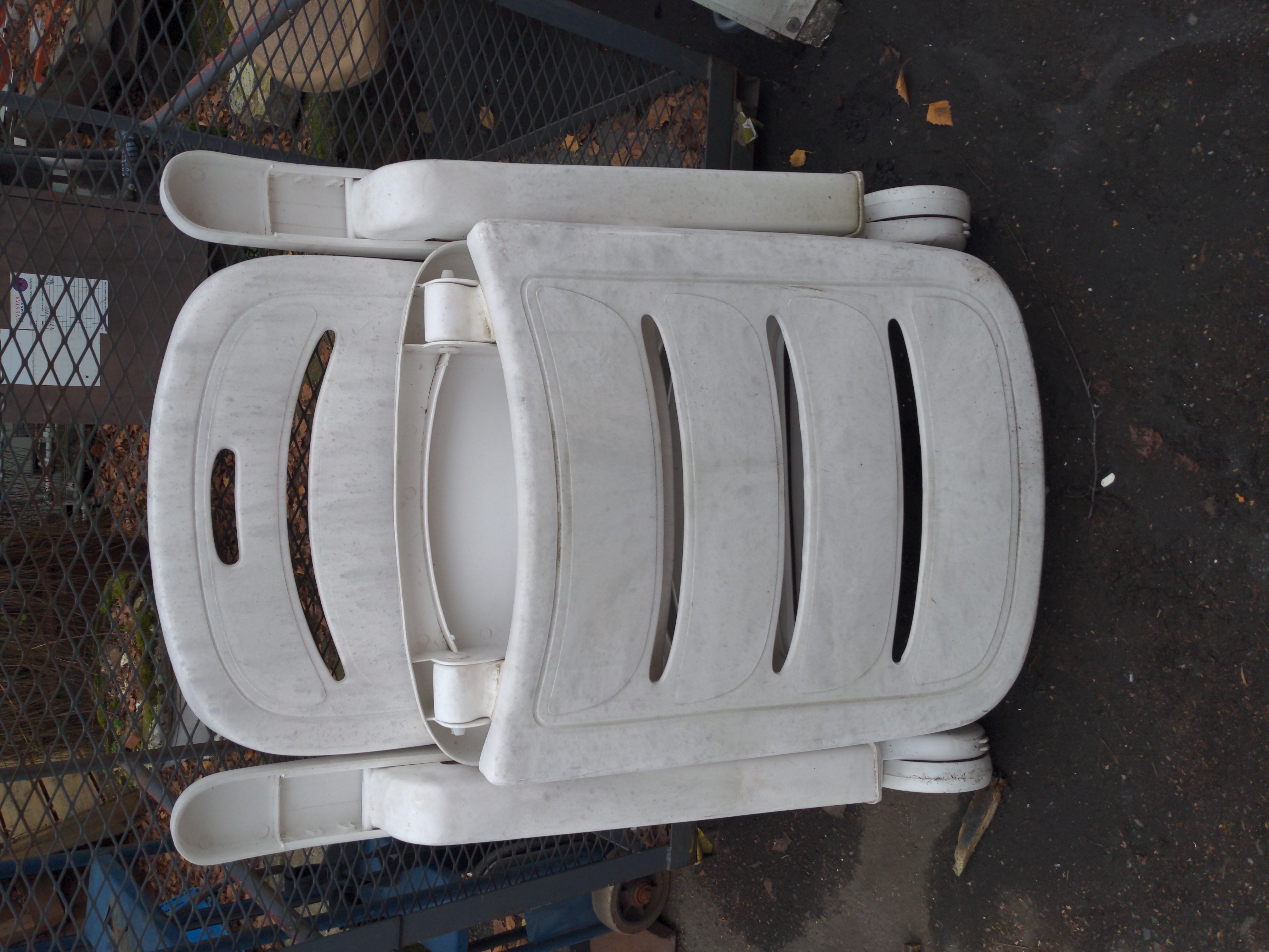 Great fit for the porch or an early grab for spring and summer time. They recline fully for a relaxing experience. In good condition. Could use a deep clean.