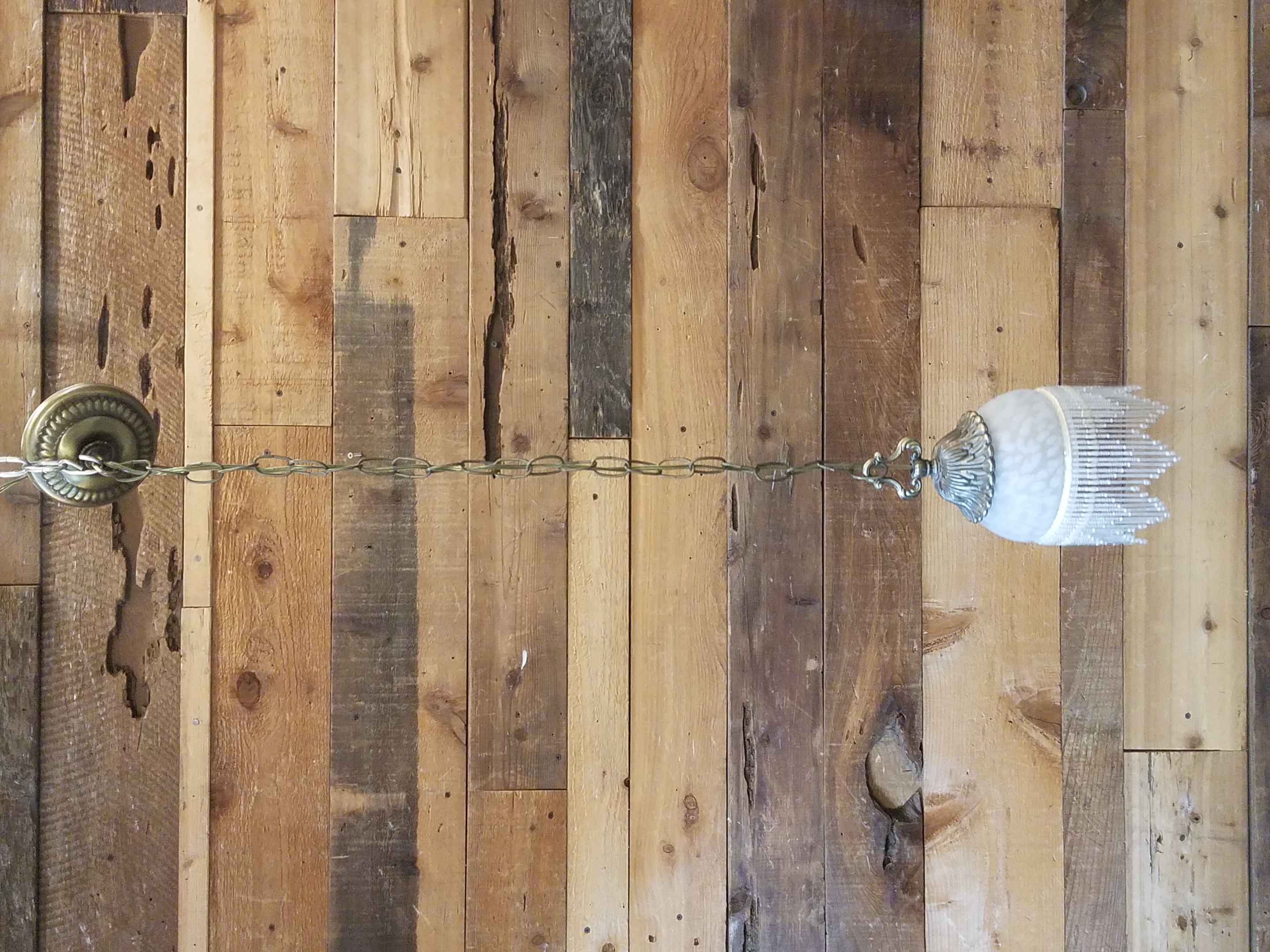 Funky, fun pendant light affixed to a long chain.