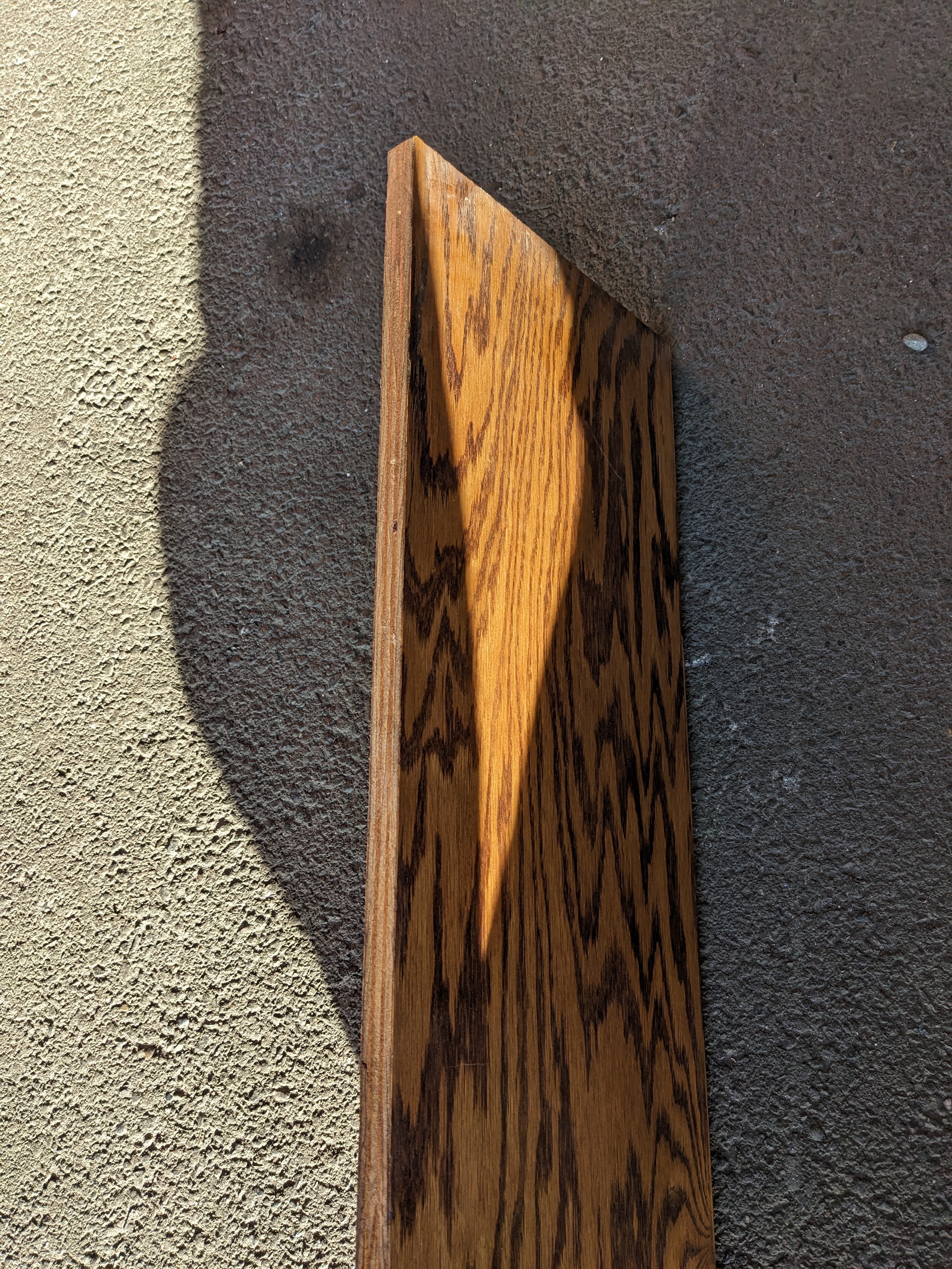Oak veneered plywood shelf slabs. Removed from an adjustable shelving cabinet that was no longer usable.
