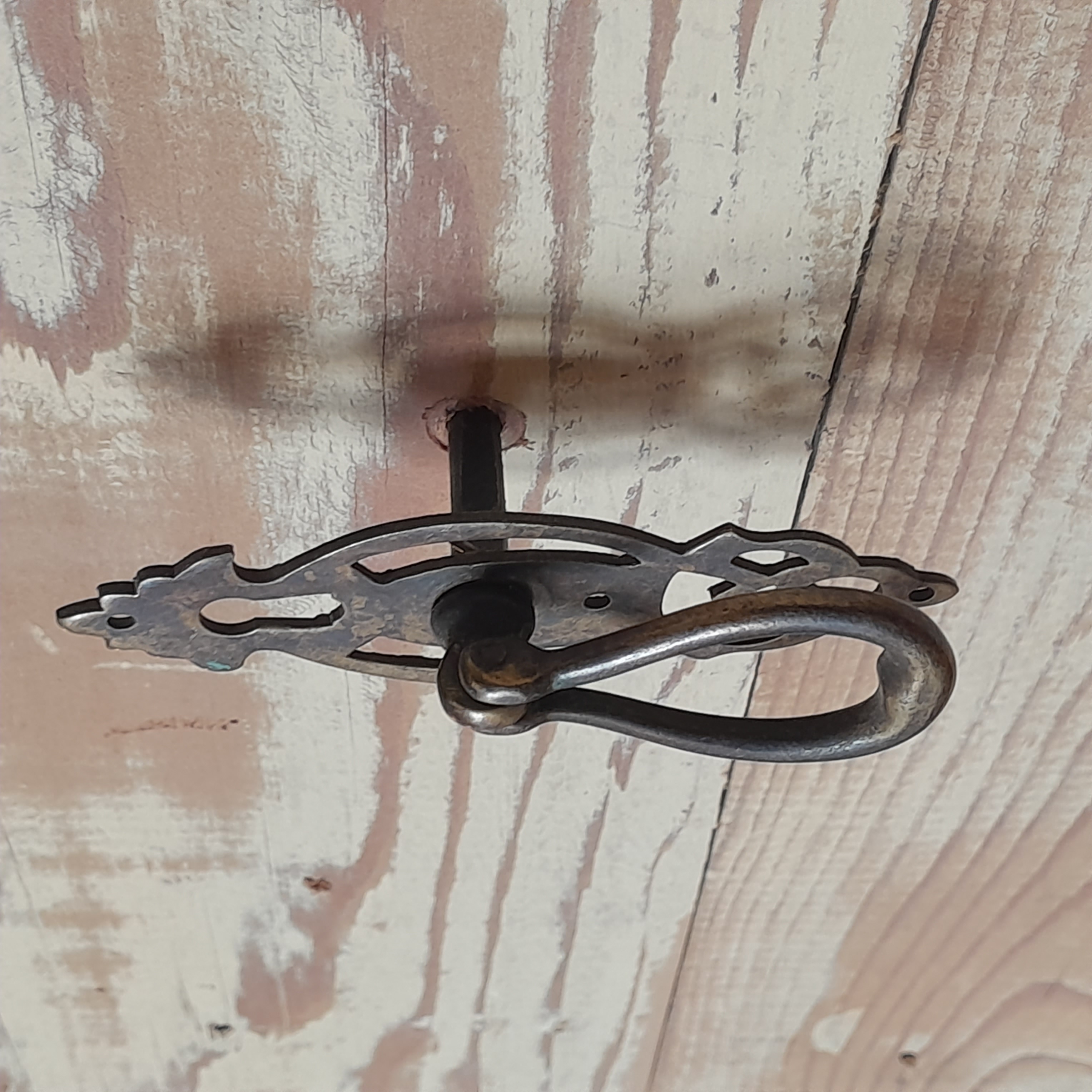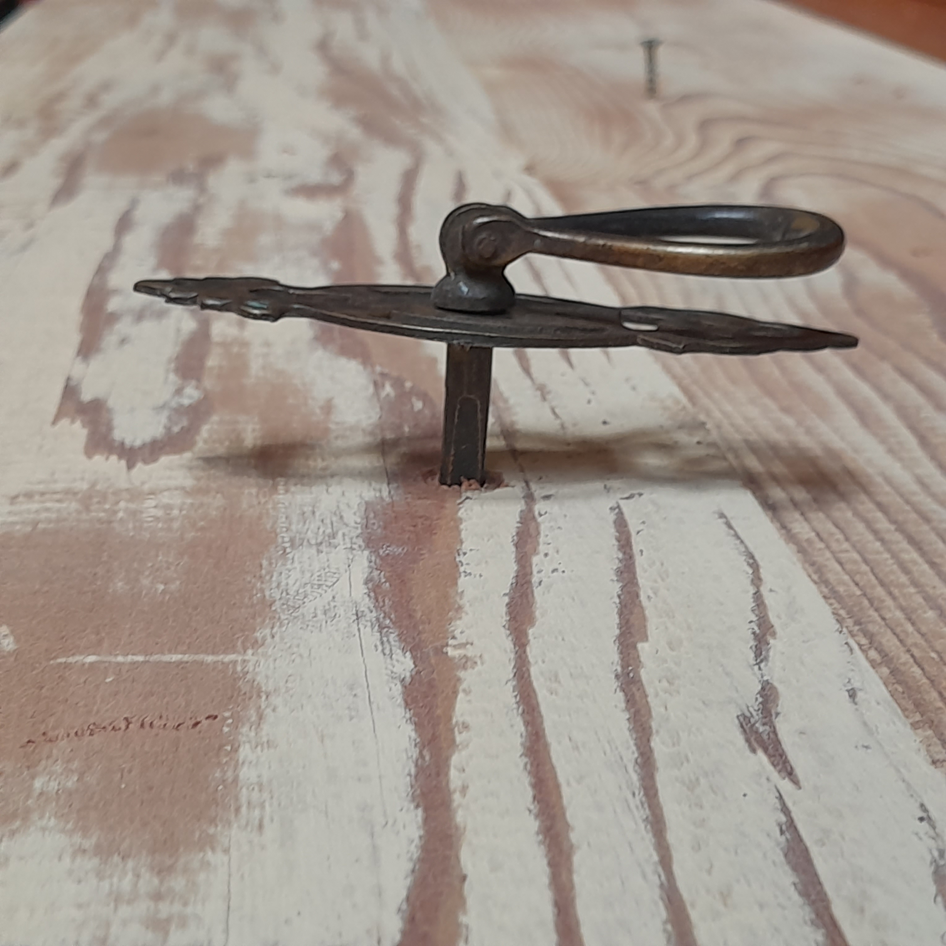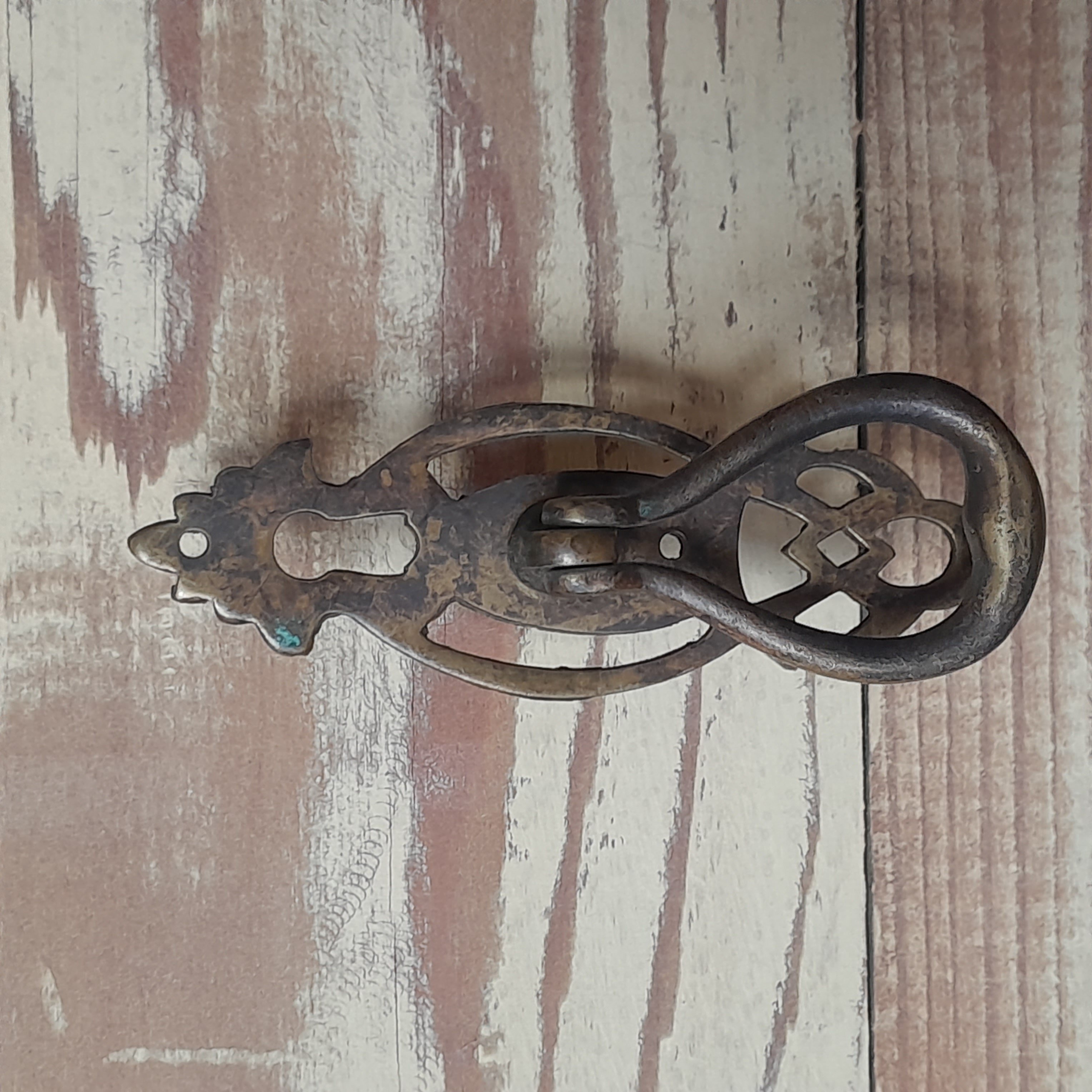 Simple and elegant! This drop pull is made of brass. Has a beautiful patina and key hole.
