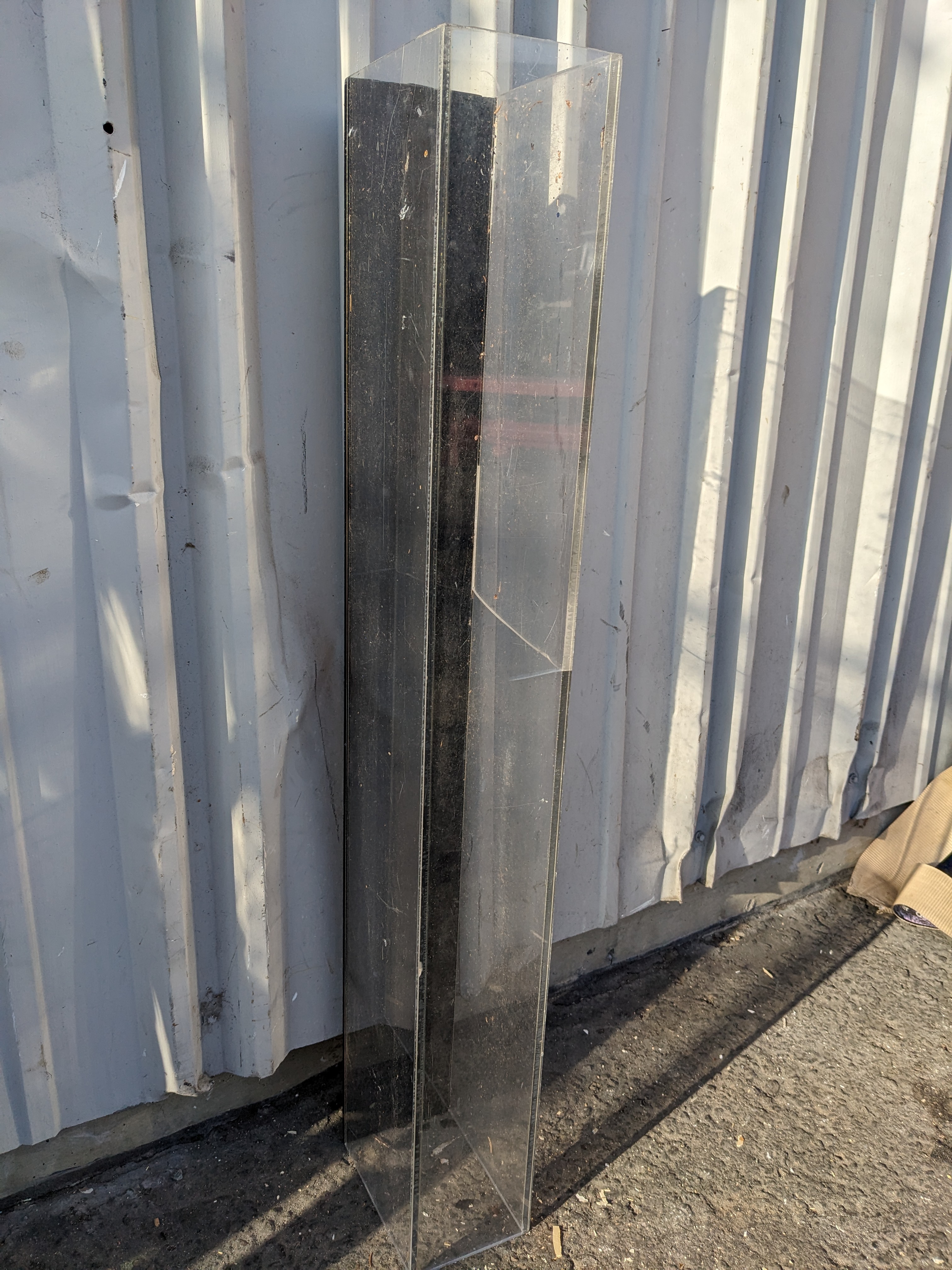 This clear plexiglass box would be great for a crafting project! Think ferret tunnel or perhaps repurpose as a light. The possibilities are endless! Please note that the plexiglass is cracked in a few places. This could be repaired with caulking or glue if necessary.