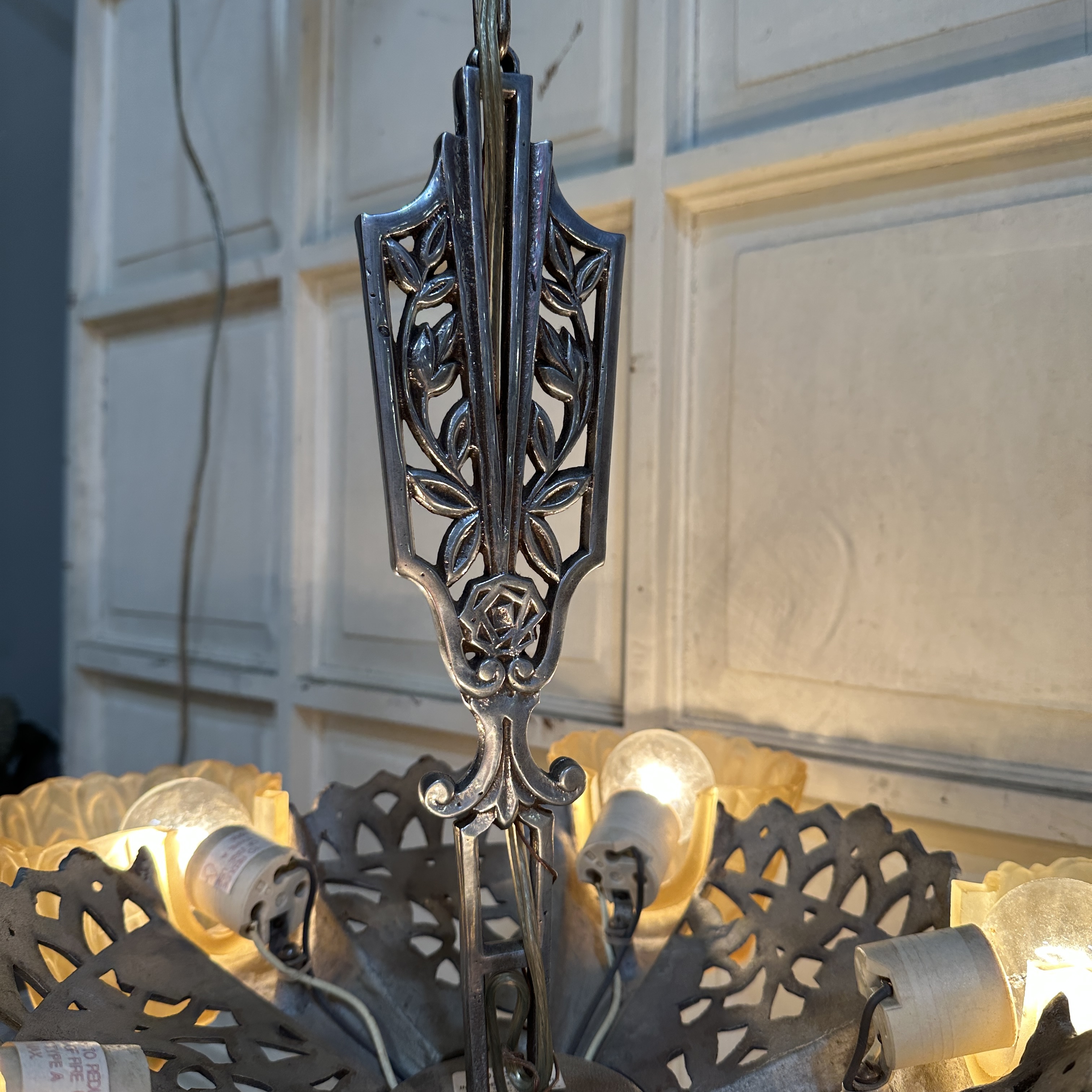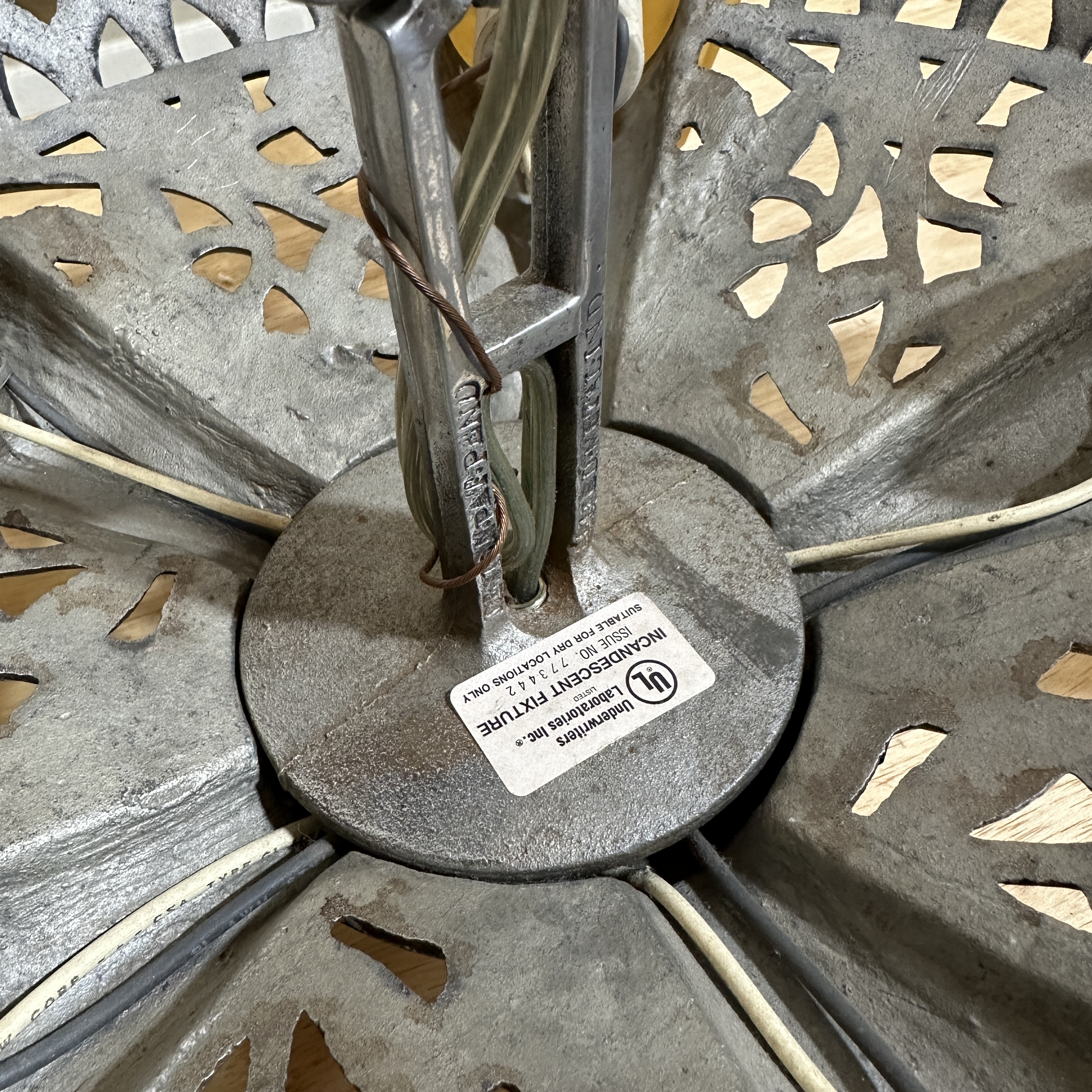 Most of the wiring is older, and while the chandelier functions properly, you may want to have it re-wired. Please note that the finial on the bottom is not original to the piece.
