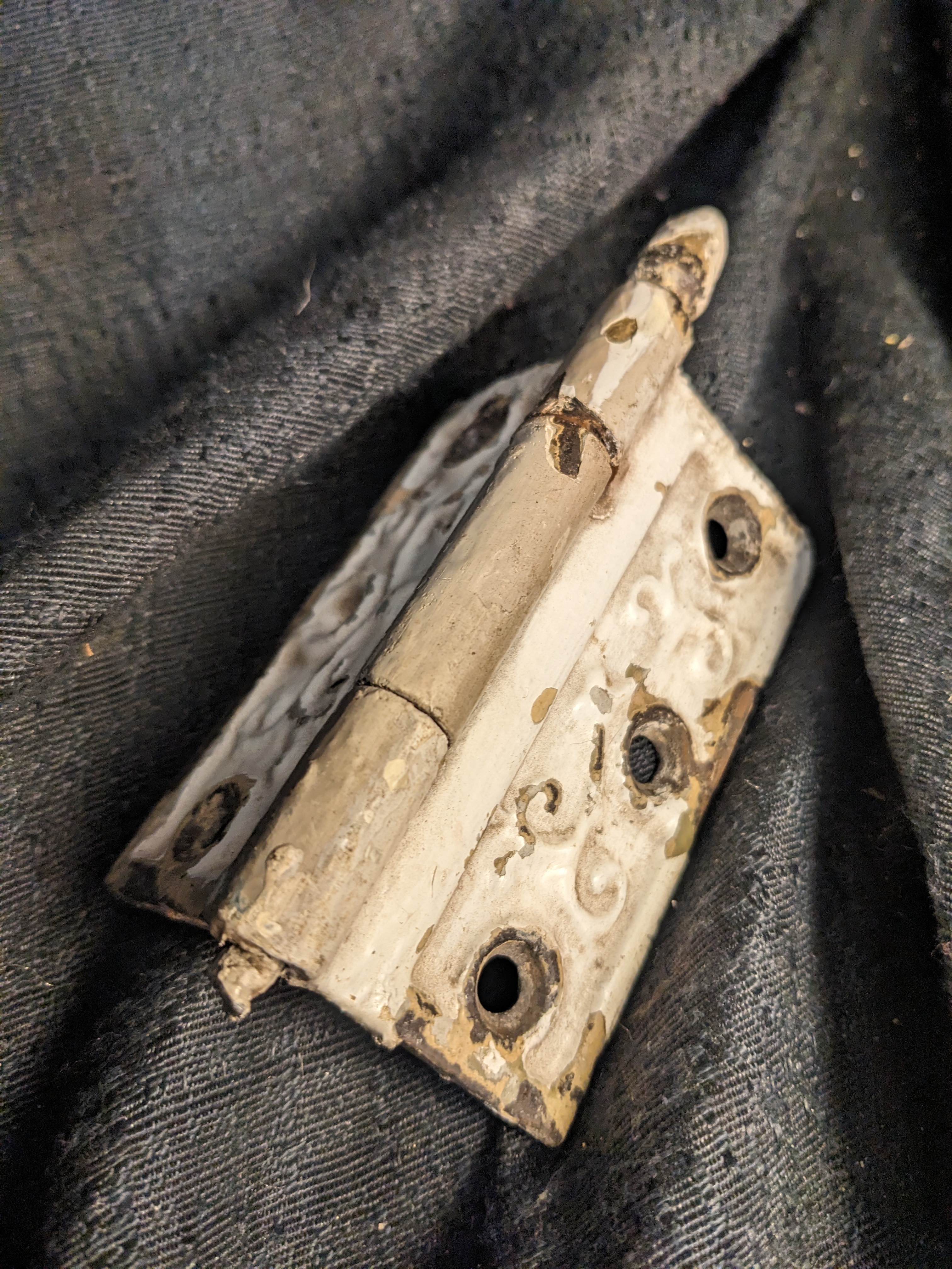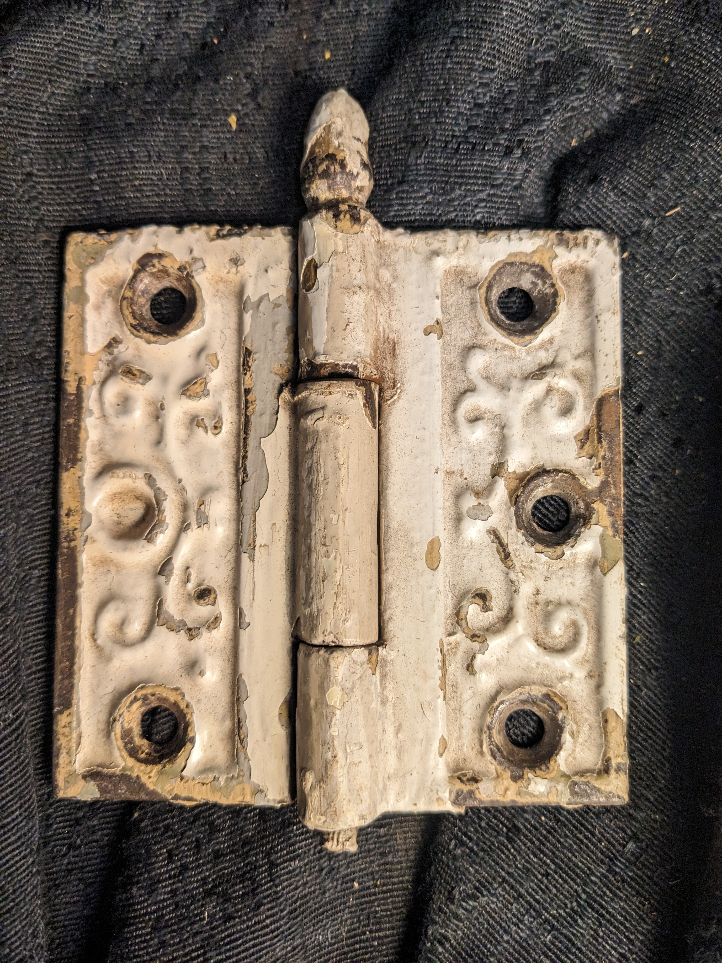 This ornate vintage hinge measures 3.5 x 3.5. AS IS