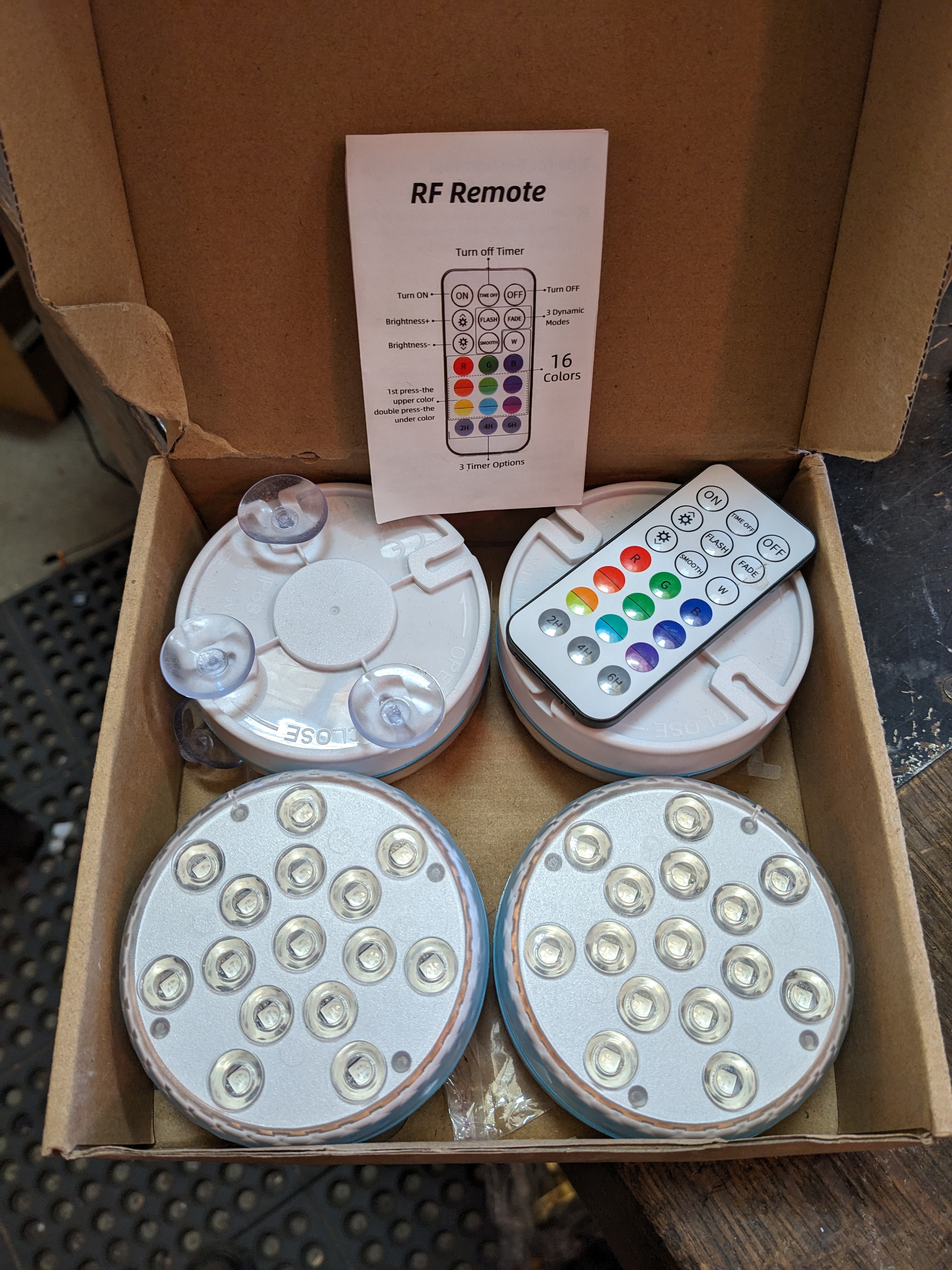 Pack of four submersible remote operated shower lights!! These can be stuck pretty much anywhere. Windows, mirrors, use while camping, opportunities are nearly endless. Party it up!!