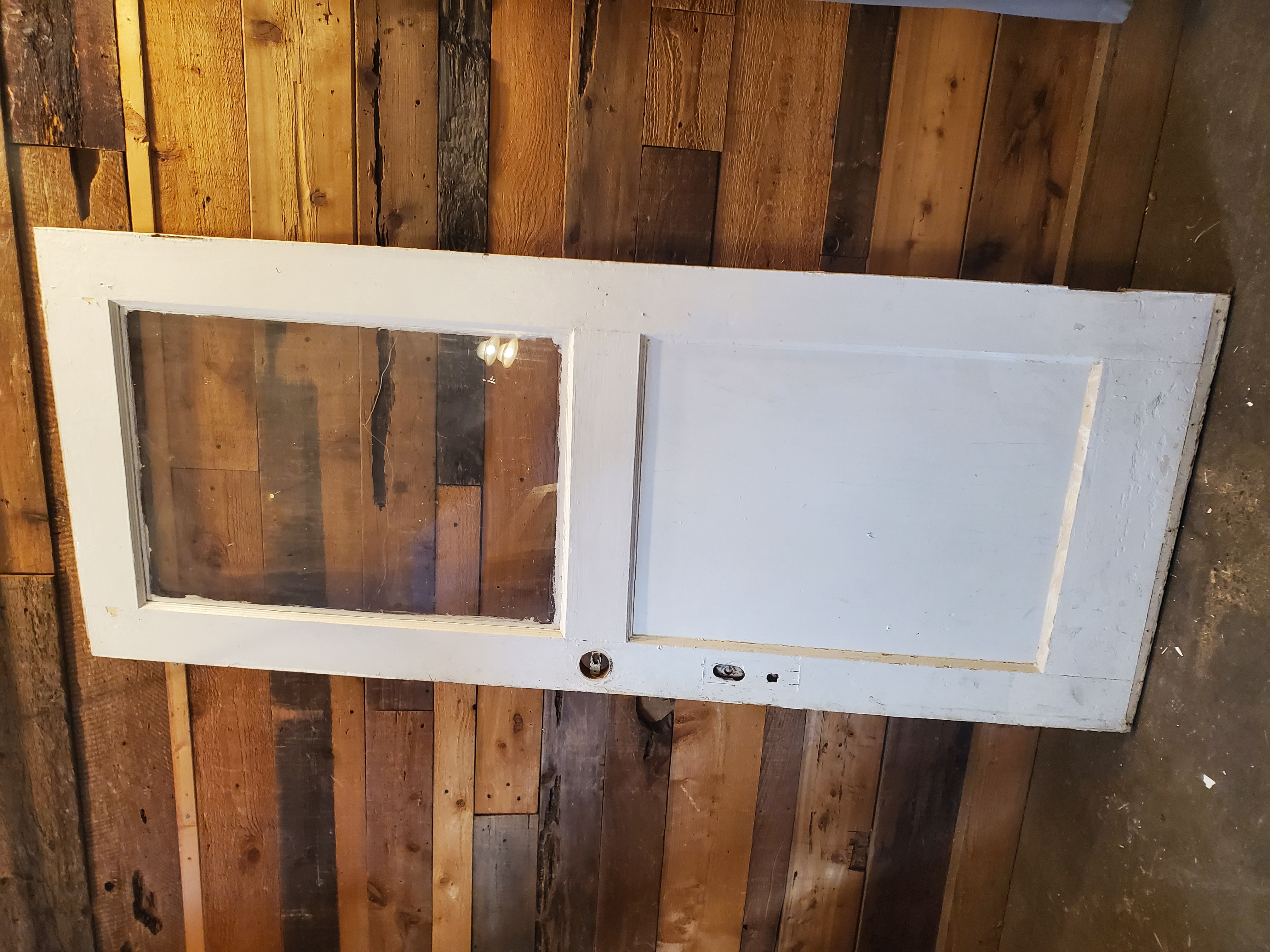 This half lite door is in fair condition. It is heavily painted and the plexiglass is scratched. It would still make a fantastic half light door. Left swing.