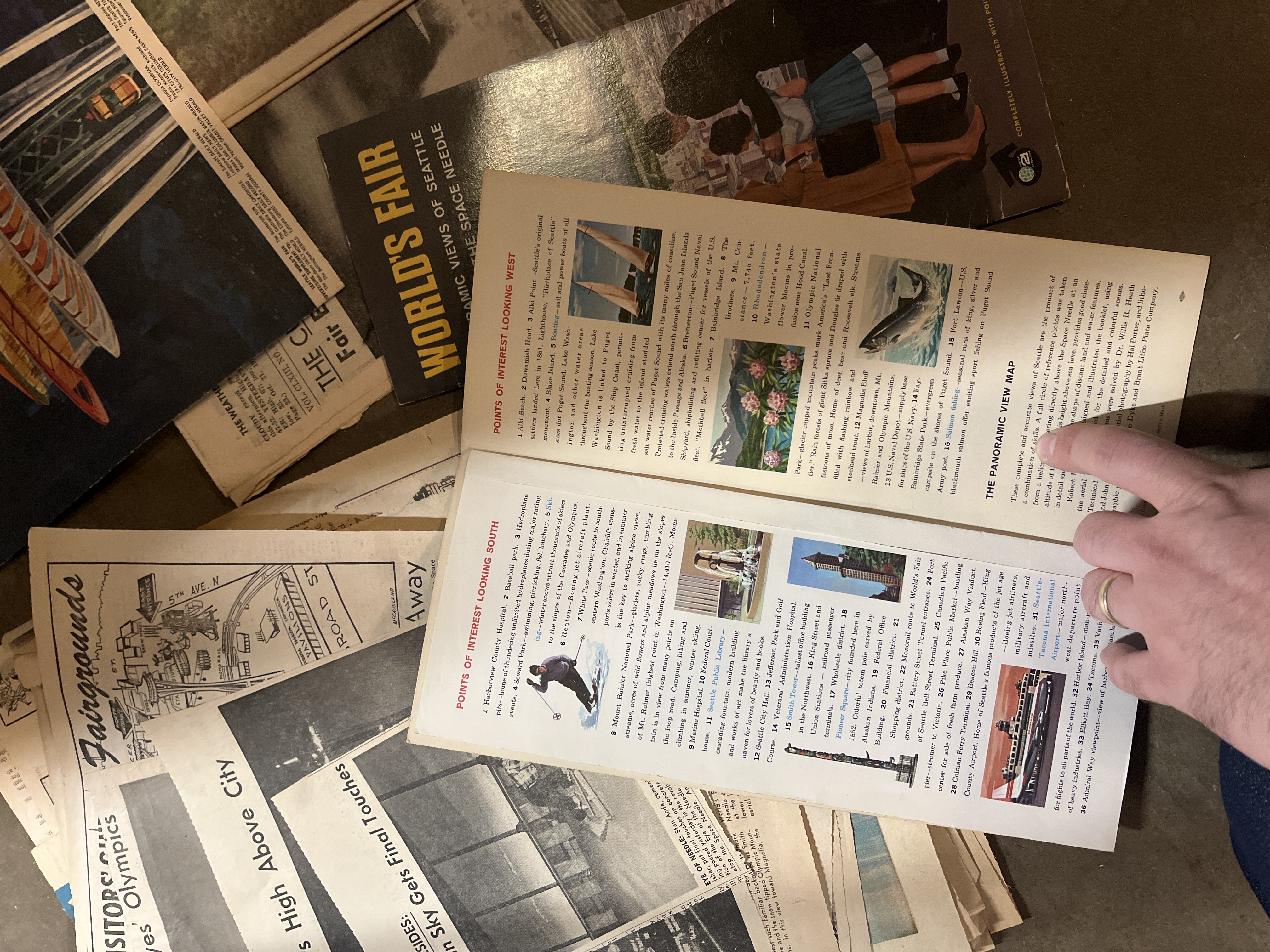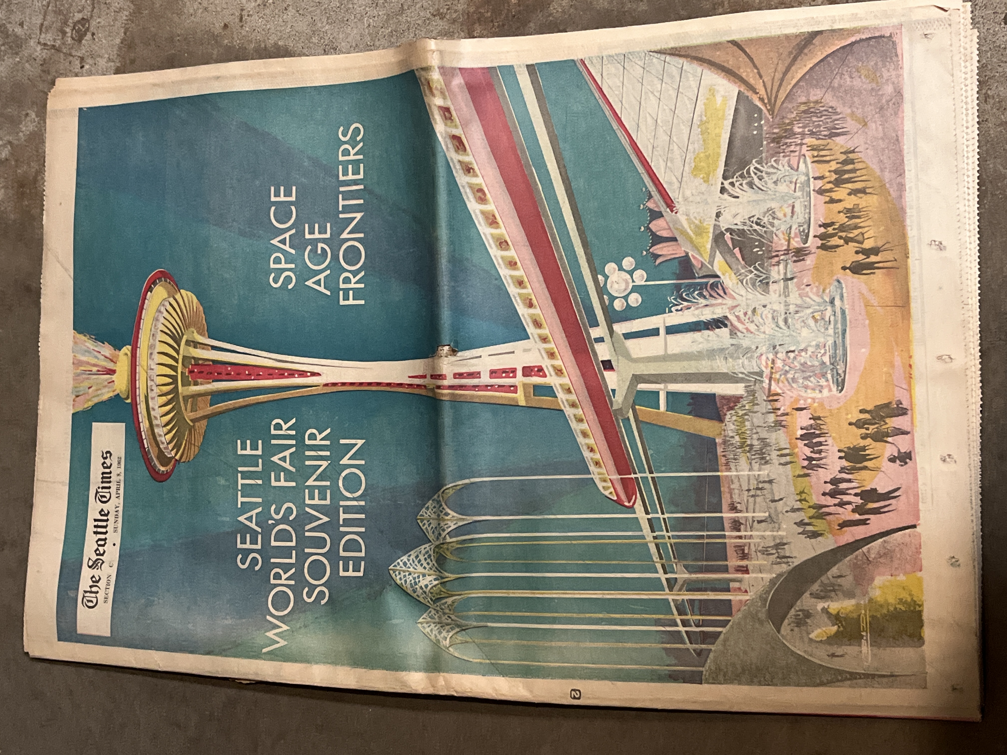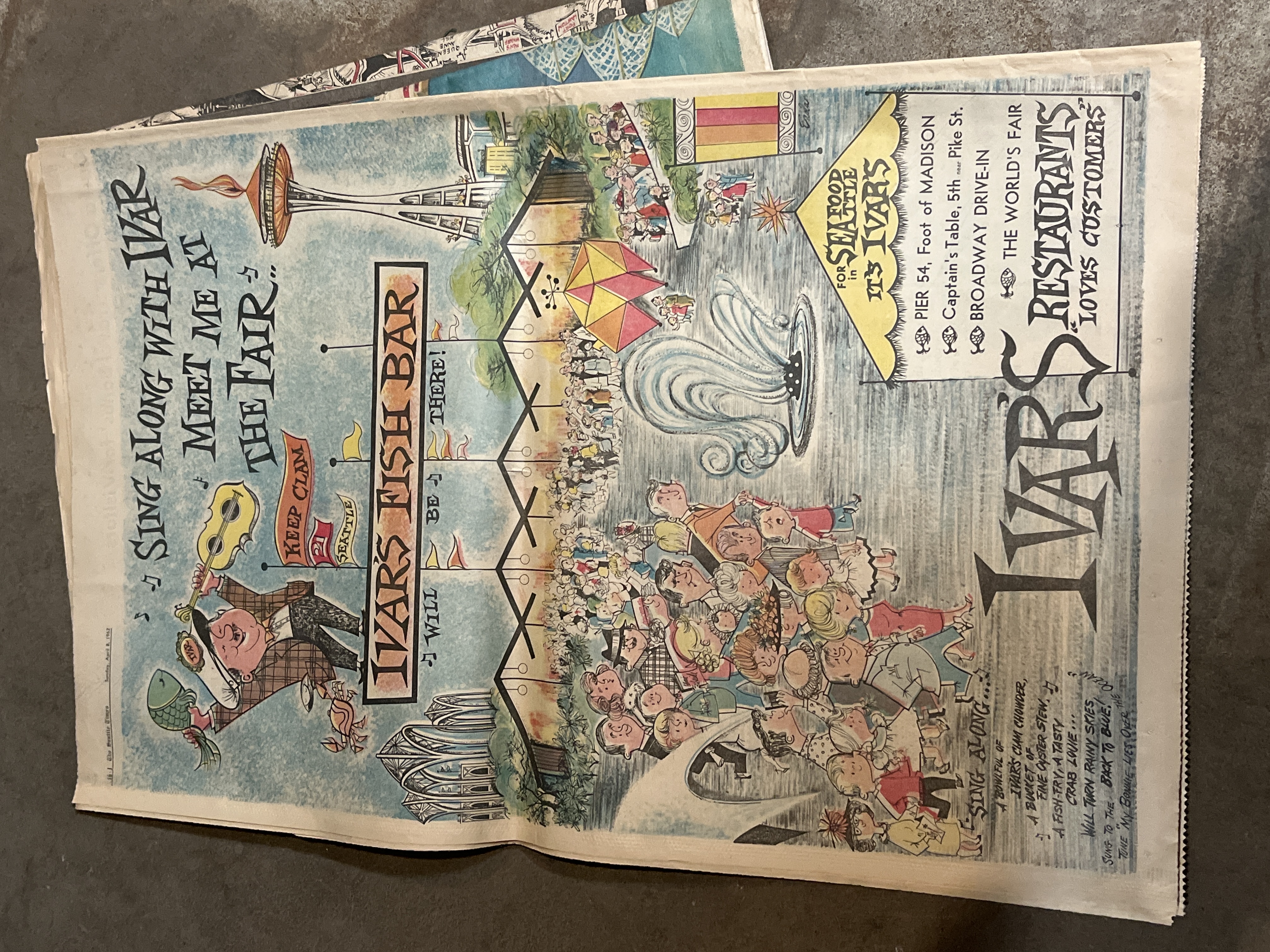 A big lot of Seattle Worlds Fair ephemera including complete newspapers, brochures, maps, and a huge assortment of newspapers pages and clippings. Great for a budding collection of 1962 Worlds Fair stuff or the perfect lot for a collage artist! Just flipping through the newspapers is interesting, seeing cool ads from spots like Chubby and Tubby and other Seattle icons! All of these items were stored well over the years and are in good presentable shape.