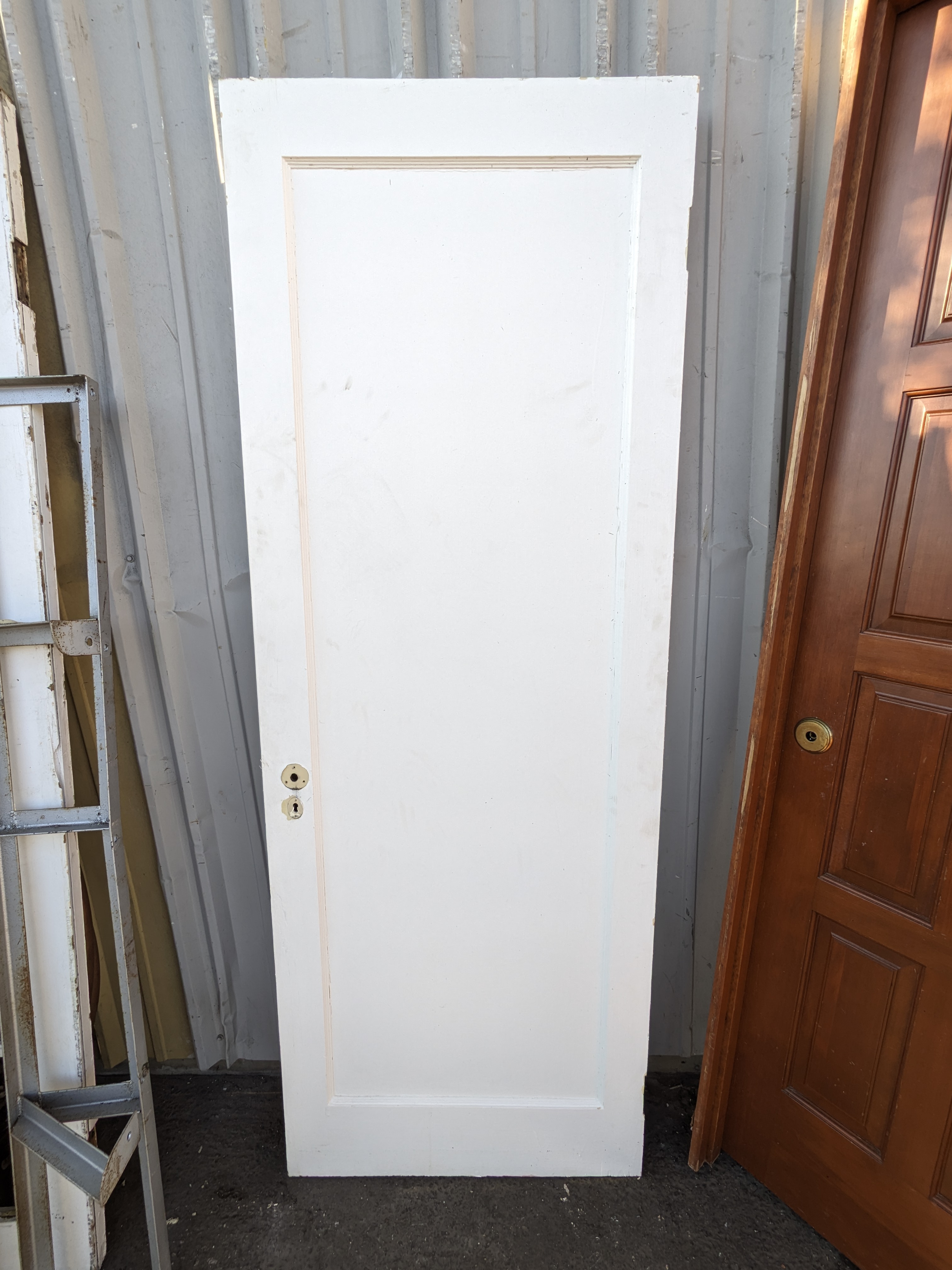 This right swing 1 panel interior door is painted white on both sides. In good condition and ready for install.