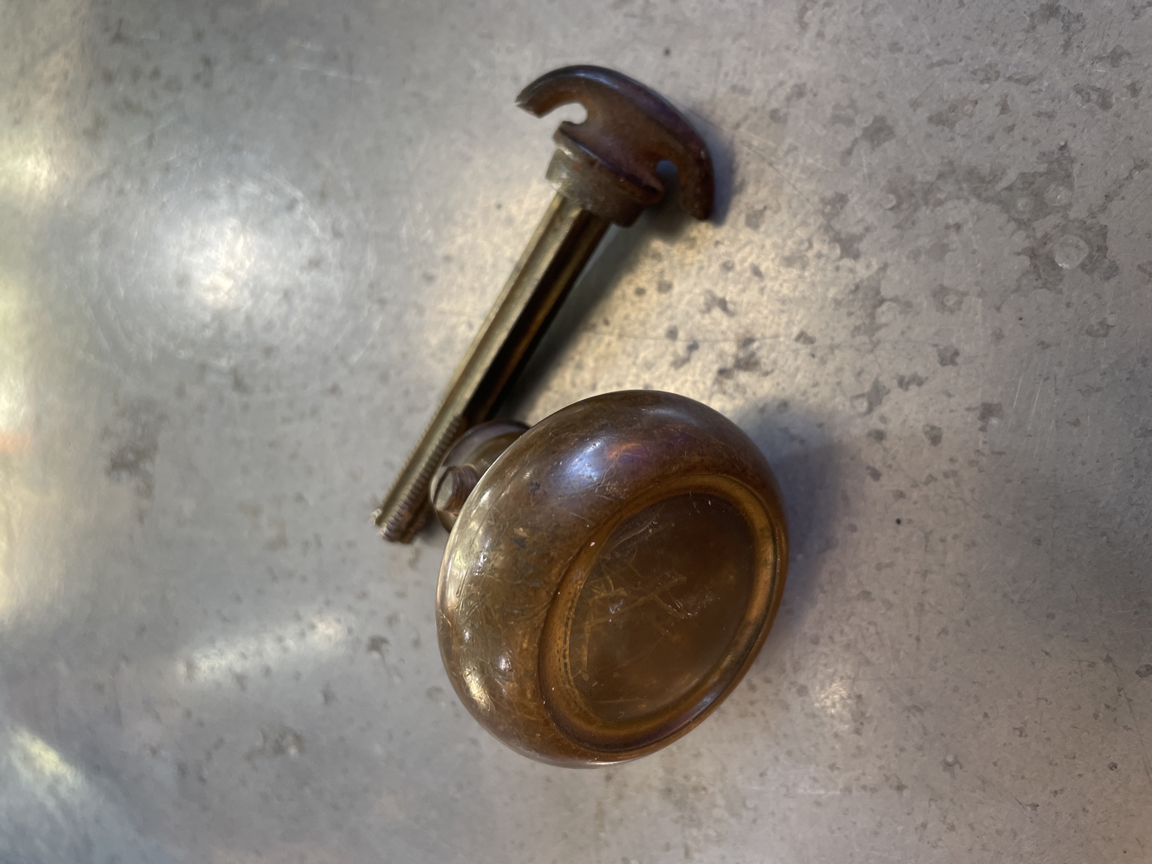 2 inch doorknob with thumb latch. Nice patina.