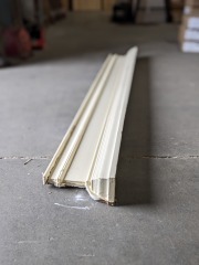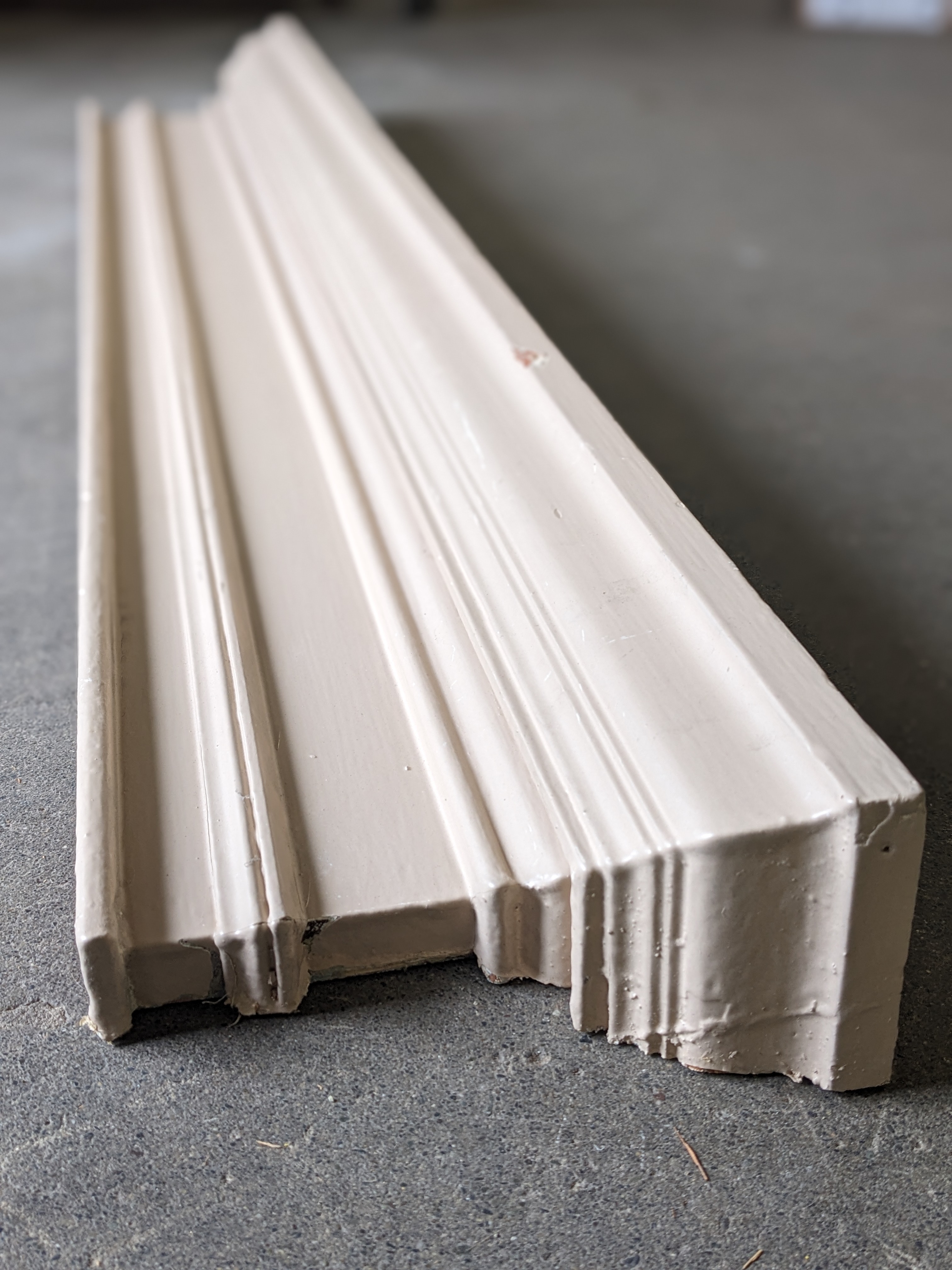 This decorative wooden cornice is painted but in good shape overall with a few nail holes from previous installation and some chips in the paint. Images may be represemtational