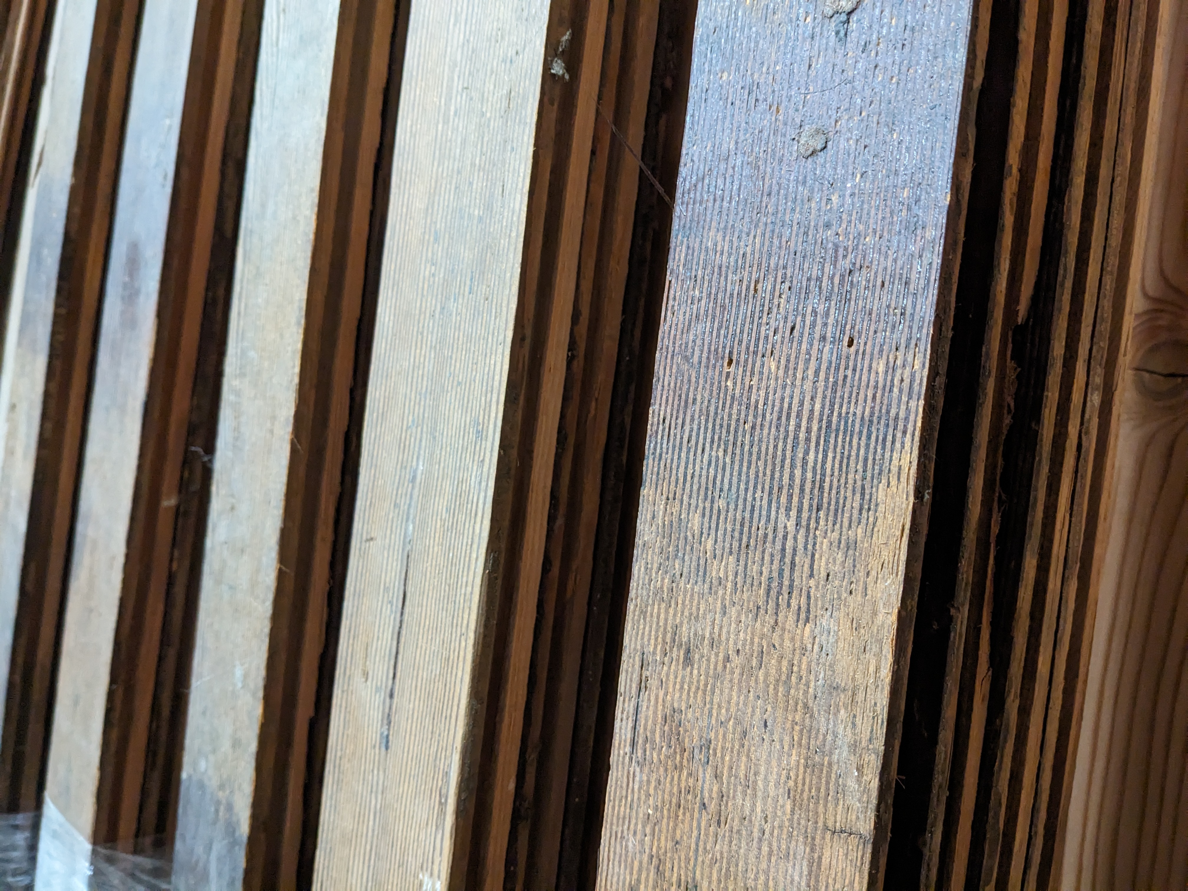 This fir flooring was carefully removed by our own Earthwise Salvage Crew to ensure possible reinstallation. These boards look to have maybe been refinished one time and it's a really nice 0.75 inch thickness.