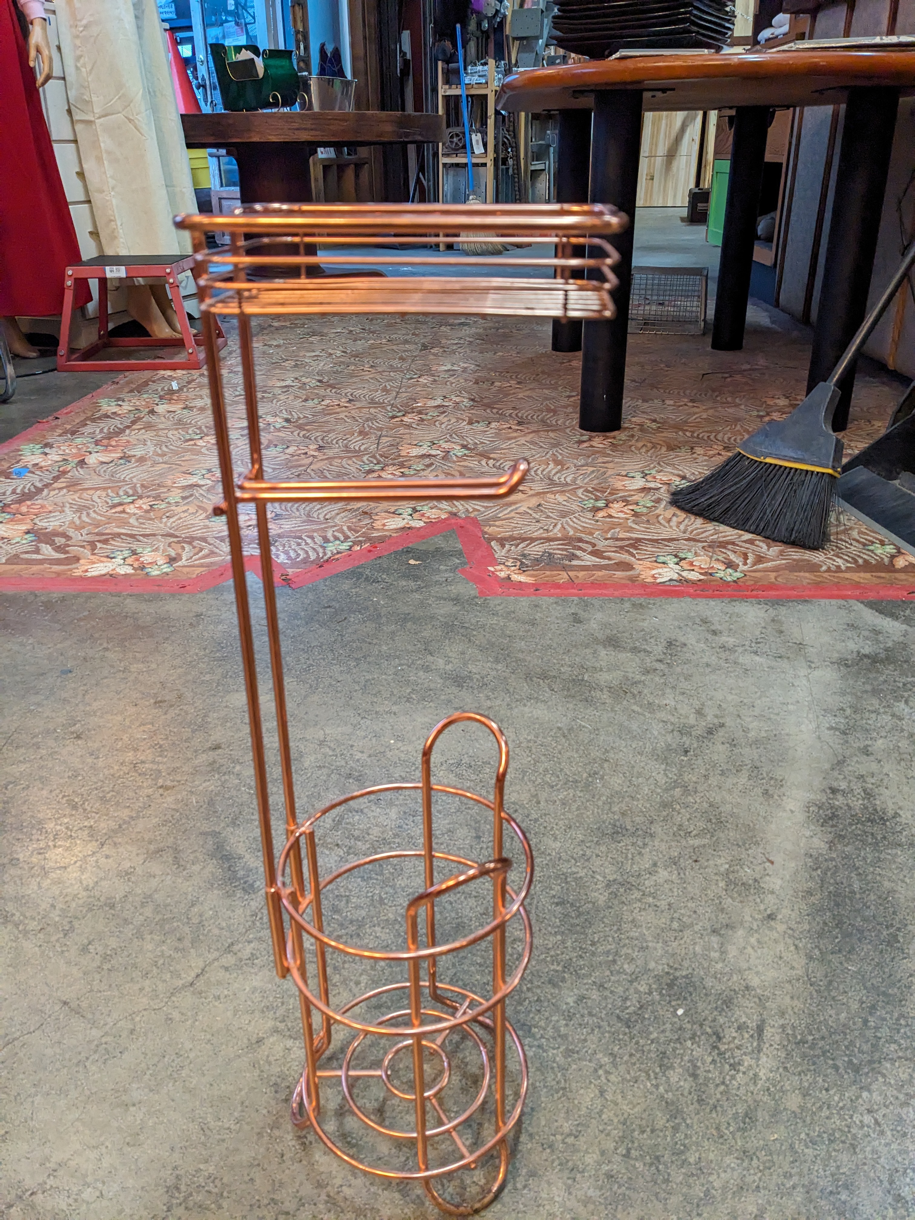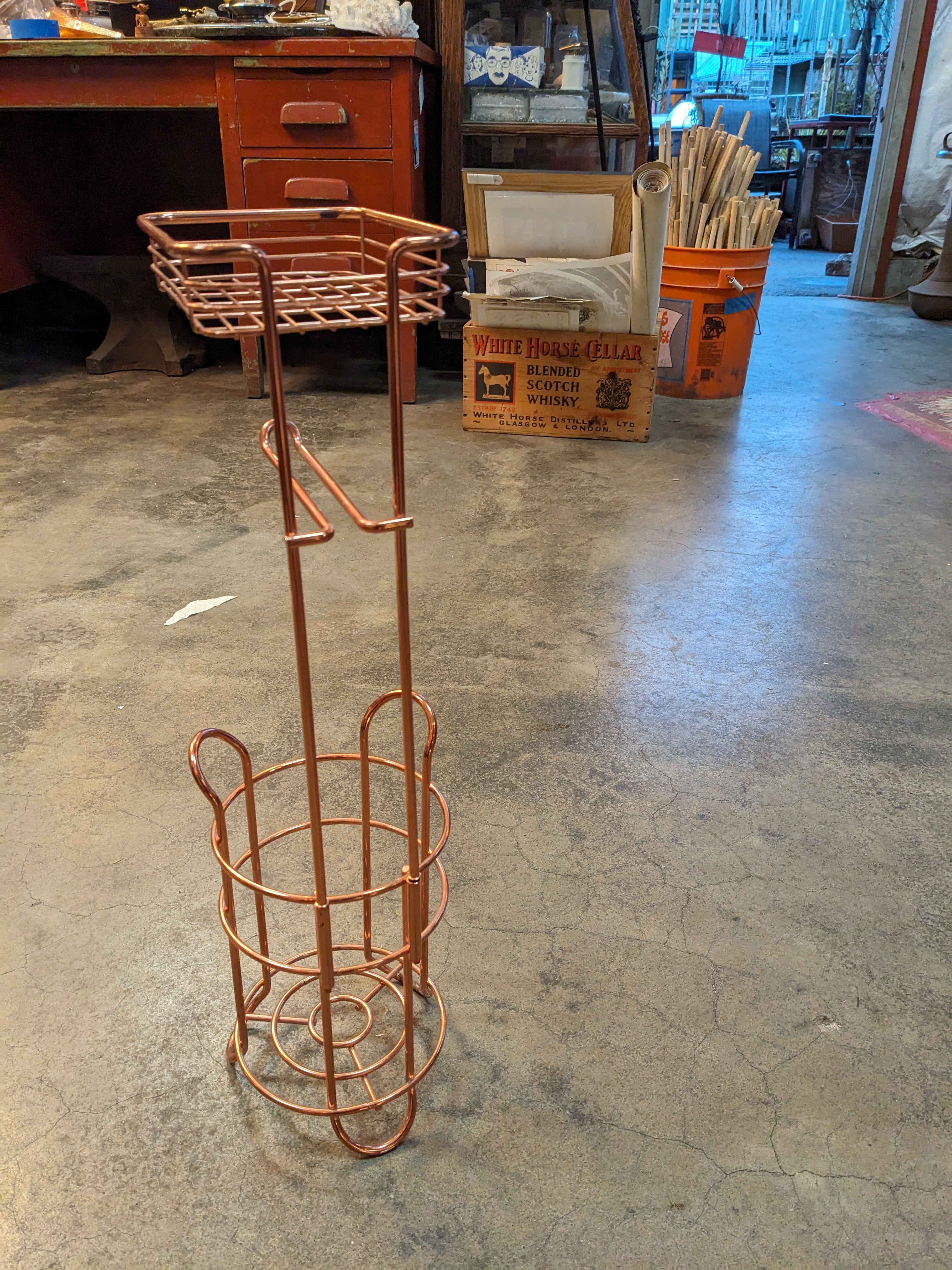 Cute little bathroom caddy, copper Toned for timeless style. In good condition for all your bathroom wares.